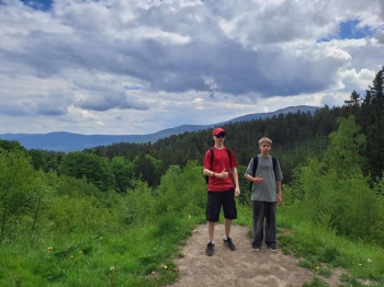 Trasa prowadziła przez las, a po drodze mogliśmy podziwiać piękne widoki na góry i przyrodę Karkonoszy. Po dotarciu do wodospadu zachwyciliśmy się jego siłą i szumem spadającej wody. Miejsce to zrobiło na nas duże wrażenie – wielu z nas zrobiło tam pamiątkowe zdjęcia. Następnie przeszliśmy do jednej z największych atrakcji Karpacza – Świątyni Wang. To unikatowy zabytek architektury nordyckiej, który został przeniesiony z Norwegii w XIX wieku. Budowla wykonana jest z drewna bez użycia gwoździ, a jej wnętrze zachwyca prostotą i pięknymi rzeźbieniami. Podczas zwiedzania dowiedzieliśmy się, że świątynia służy dziś jako kościół ewangelicki i jest miejscem chętnie odwiedzanym przez turystów z całego świata.