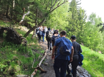 Drugiego dnia wycieczki po śniadaniu zebraliśmy się całą grupą i pod opieką nauczycieli wyruszyliśmy pieszo w kierunku Wodospadu Dziki, który znajduje się w malowniczej części Karpacza, w pobliżu rzeki Łomnicy.