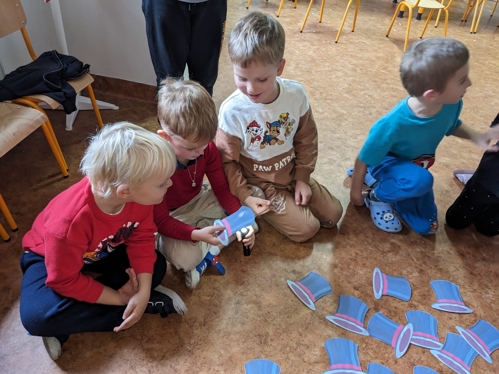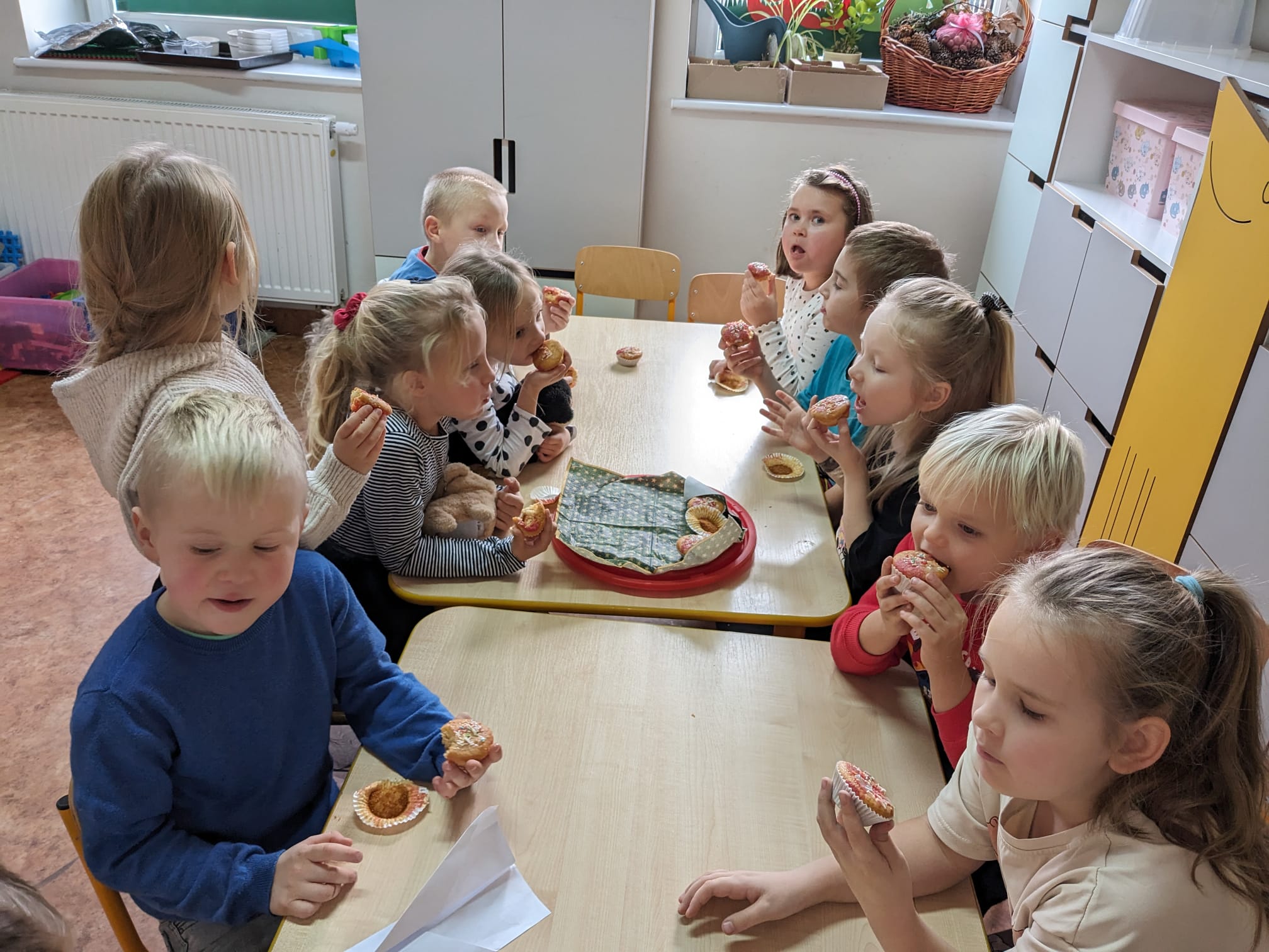 My Å›wiÄ™towaliÅ›my 25 listopada, ale ponieważ grupa skÅ‚ada siÄ™ zarówno z dziewczynek jak i z chÅ‚opców, wróżby i zabawy byÅ‚y andrzejkowo-katarzynkowe. Podczas caÅ‚ego dnia wykorzystaliÅ›my różne aspekty aktywnej zabawy połączonej z naukÄ…. Na poczÄ…tek obejrzeliÅ›my film edukacyjny o tradycji Andrzejek i Katarzynek. NastÄ™pnie rzucaliÅ›my do celu i recytowaliÅ›my „magiczny wierszyk”. Potem przeliczaliÅ›my symbole andrzejkowe, taÅ„czyliÅ›my, wypeÅ‚nialiÅ›my graficzne karty pracy. W przerwie miÄ™dzy zabawami posmakowaliÅ›my przepysznych babeczek, które przygotowaÅ‚a dla nas mama Franka. Bardzo dziÄ™kujemy Pani Gosiu za miłą niespodziankÄ™!