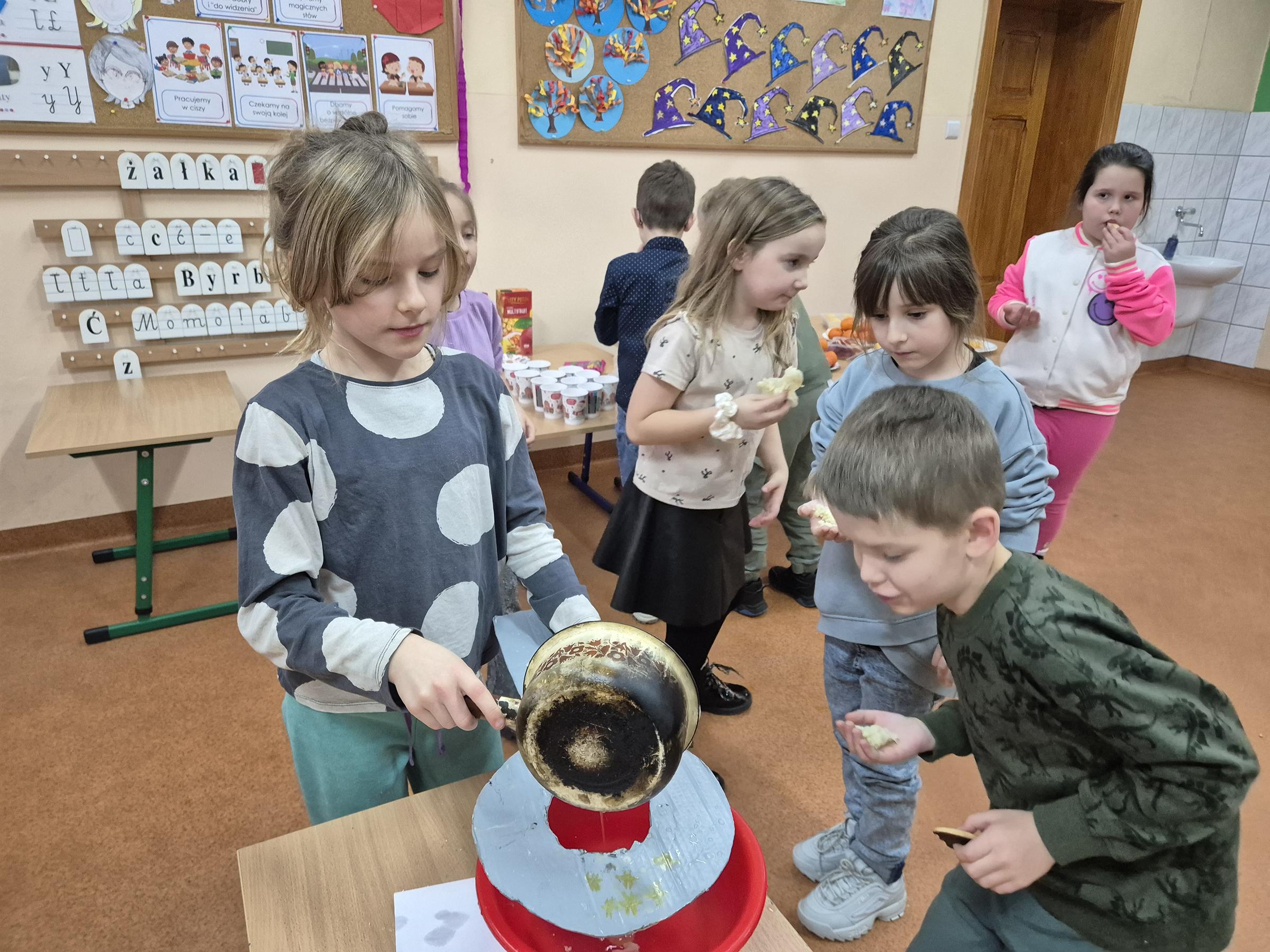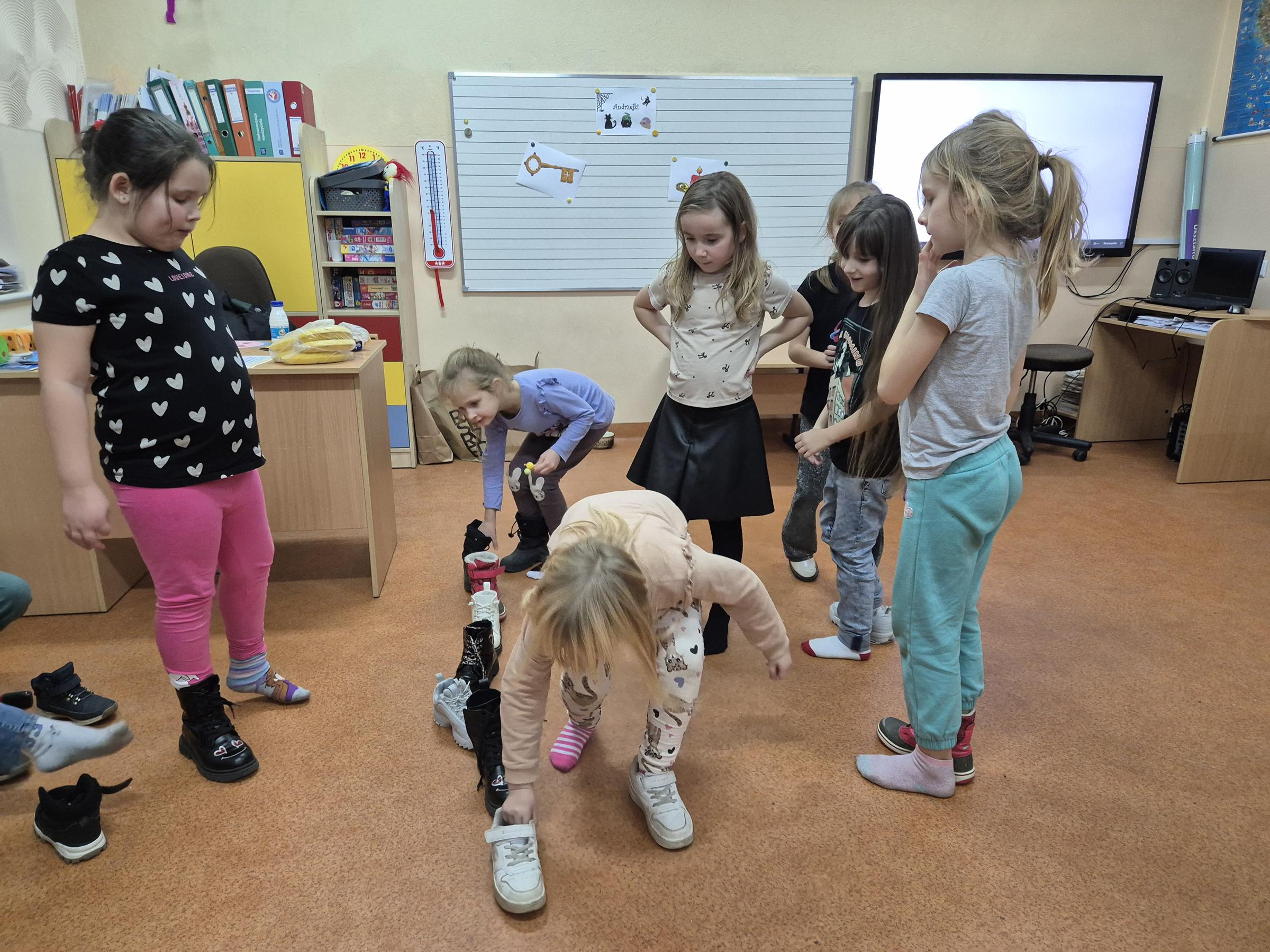 W klasie pierwszej odbyło się magiczne andrzejkowe popołudnie pełne wróżb, czarów i świetnej zabawy. Najwięcej emocji wzbudziło tradycyjne lanie wosku, podczas którego dzieci z ciekawością odgadywały, jakie kształty pojawią się na wodzie i co mogą one oznaczać na przyszłość. Nie zabrakło również zabawy, w której ustawialiśmy buty jeden za drugim – wszyscy z przejęciem czekali, czyj but jako pierwszy przekroczy próg klasy, bo to miało zdradzić, kto pierwszy spełni swoje marzenia.