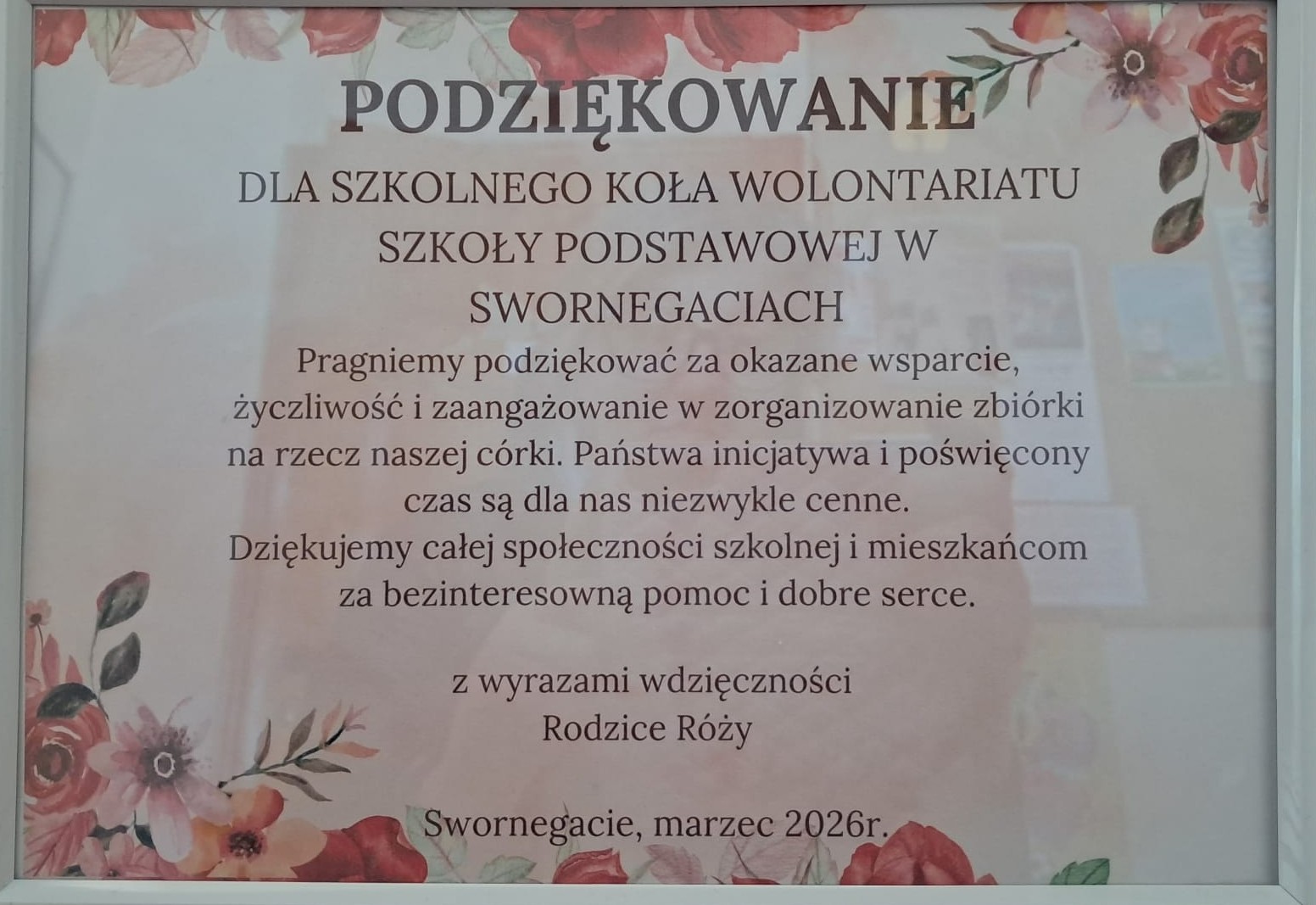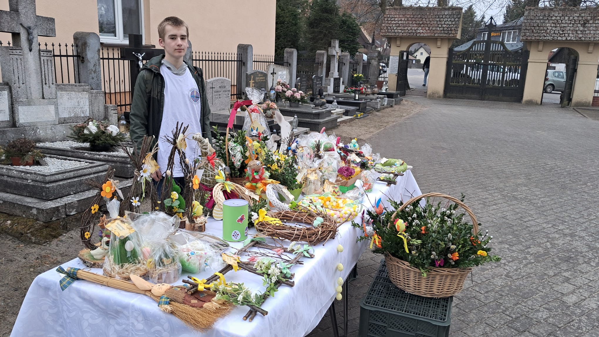 Dnia 05.04.2026 w Niedziele Palmową na placu przed kościołem odbył się charytatywny kiermasz świąteczny zorganizowany przez Szkolne Koło Wolontariatu. Dekoracje wykonane przez nauczycieli, pracowników szkoły, uczniów oraz ich rodziców zachwycały pomysłowścią, orginalnością oraz estetyką wykonania. Dziękujemy wszystkim, którzy przyczynili się do tego, aby ta inicjatywa mogła się odbyć: za wkład pracy, przygotowanie i przekazanie dekoracji. Ogromne podziękowania kierujemy również do osób, które zakupiły ozdoby świateczne. Dzięki Pąństwa dobremu sercu i hojności udało nam się zebrać kwotę 2 200 zł. Cała suma z kiermaszu i przeprowadzonej wcześniej akcji Słodka Przerwa - łącznie 4 450 przekazana będzie na rzecz Róży Szulc, która urodziła się z ciężką wadą rozwojową ośrodkowego układu nerwowego oraz wodogłowiem i potrzebuje stałej opieki medycznej i rehabilitacji.