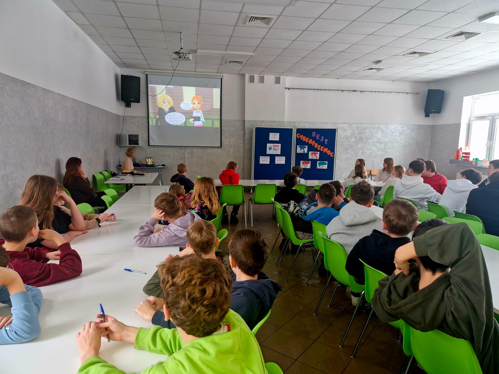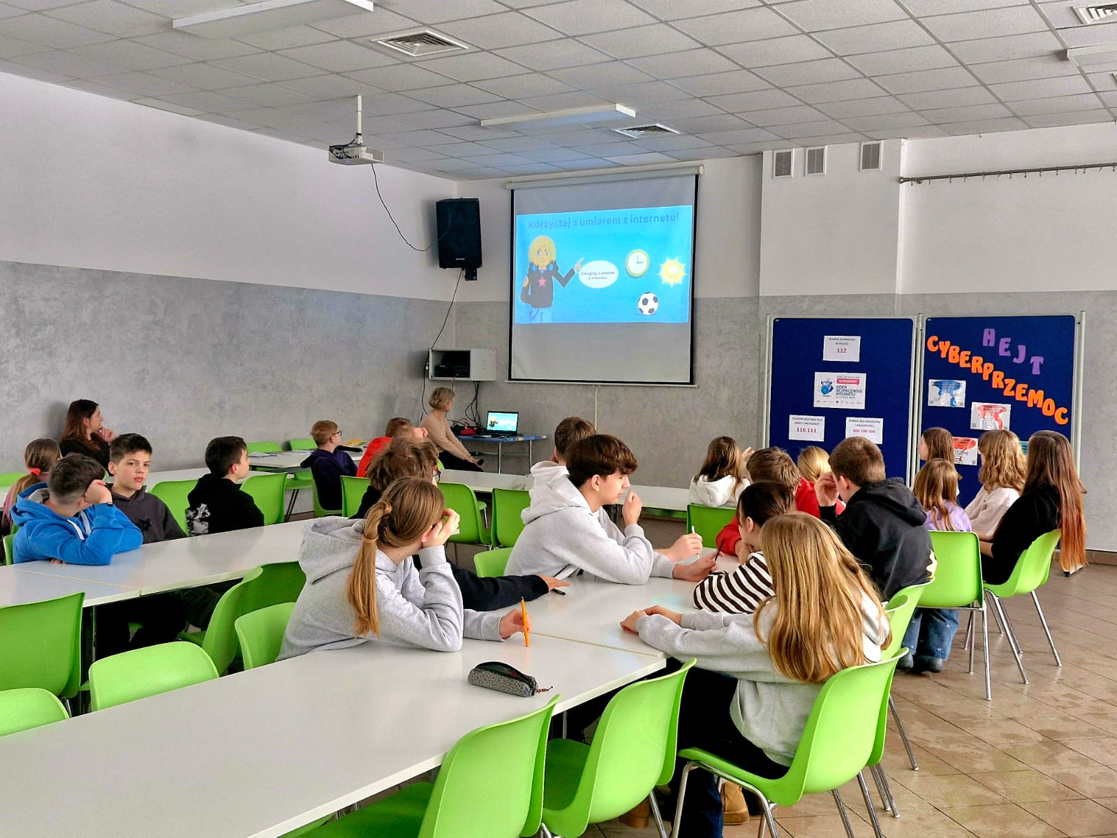 Uczniowie obejrzeli prezentacjÄ™ i wysÅ‚uchali krótkiego wystÄ…pienia pedagoga, który przypomniaÅ‚, że Internet może być Å›wietnym narzÄ™dziem do nauki i zabawy, ale wymaga odpowiedzialnoÅ›ci i ostrożnoÅ›ci.