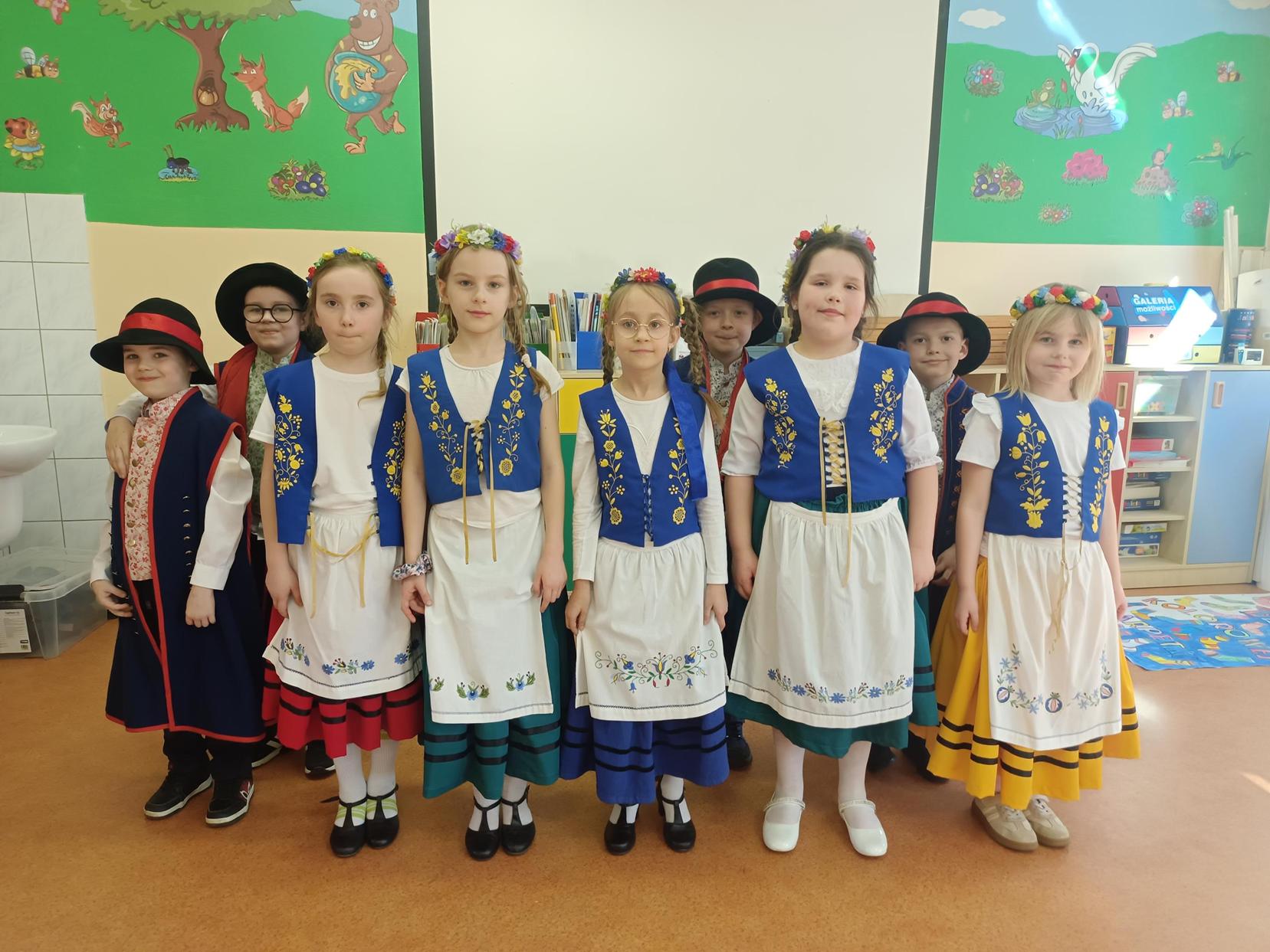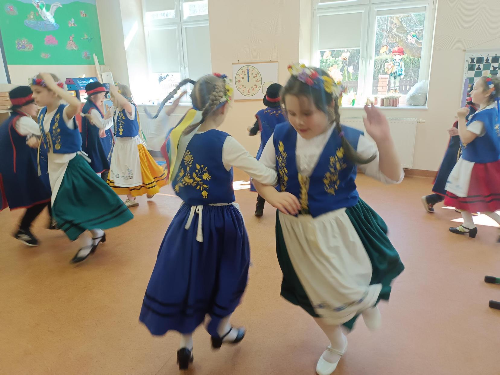 Mogliśmy dzisiaj podziwiać uczniów klasy I, którzy w pięknych kaszubskich strojach zaprezentowali tradycyjne tańce kaszubskie. Ich występ był pełen radości i energii.