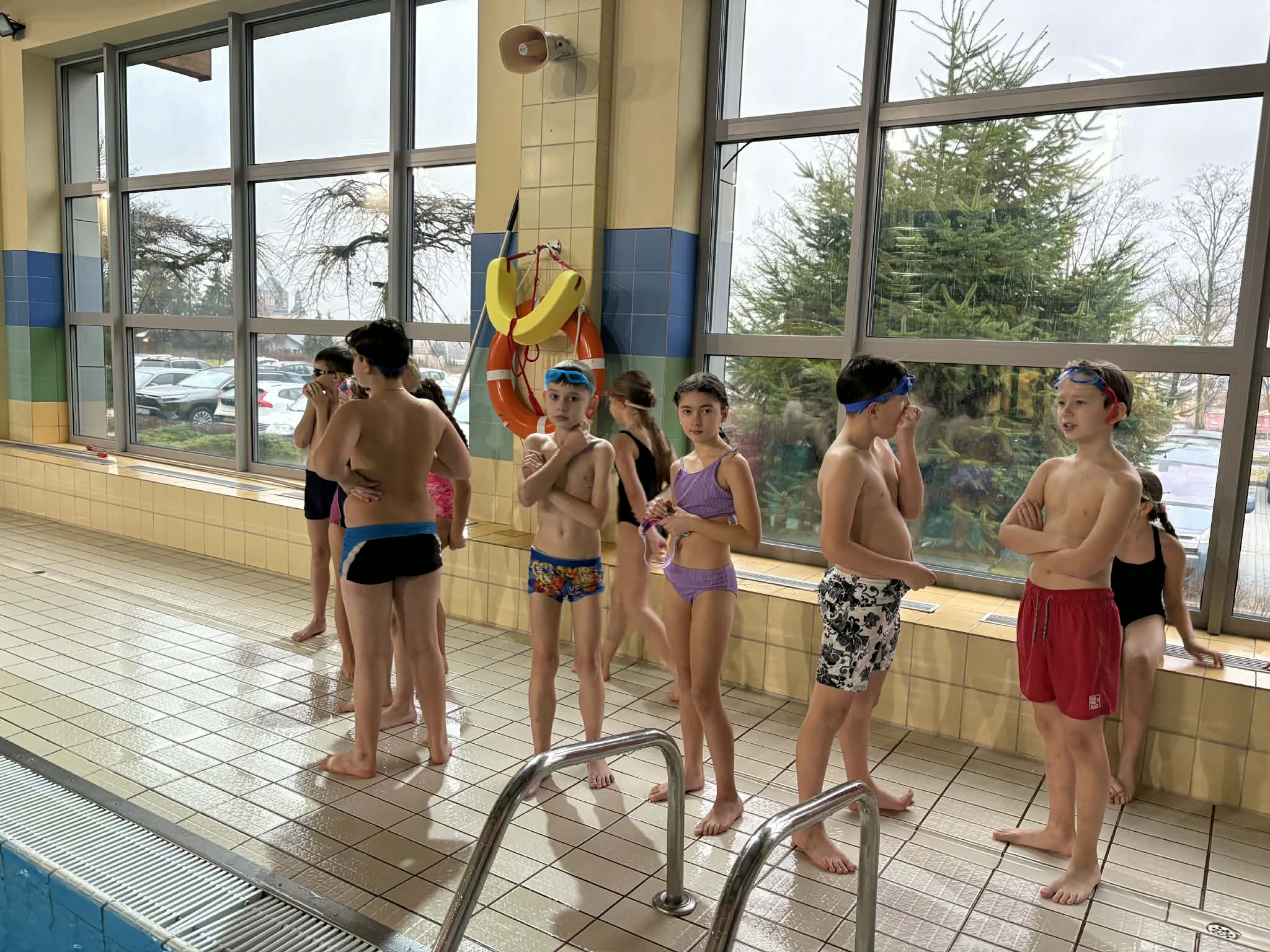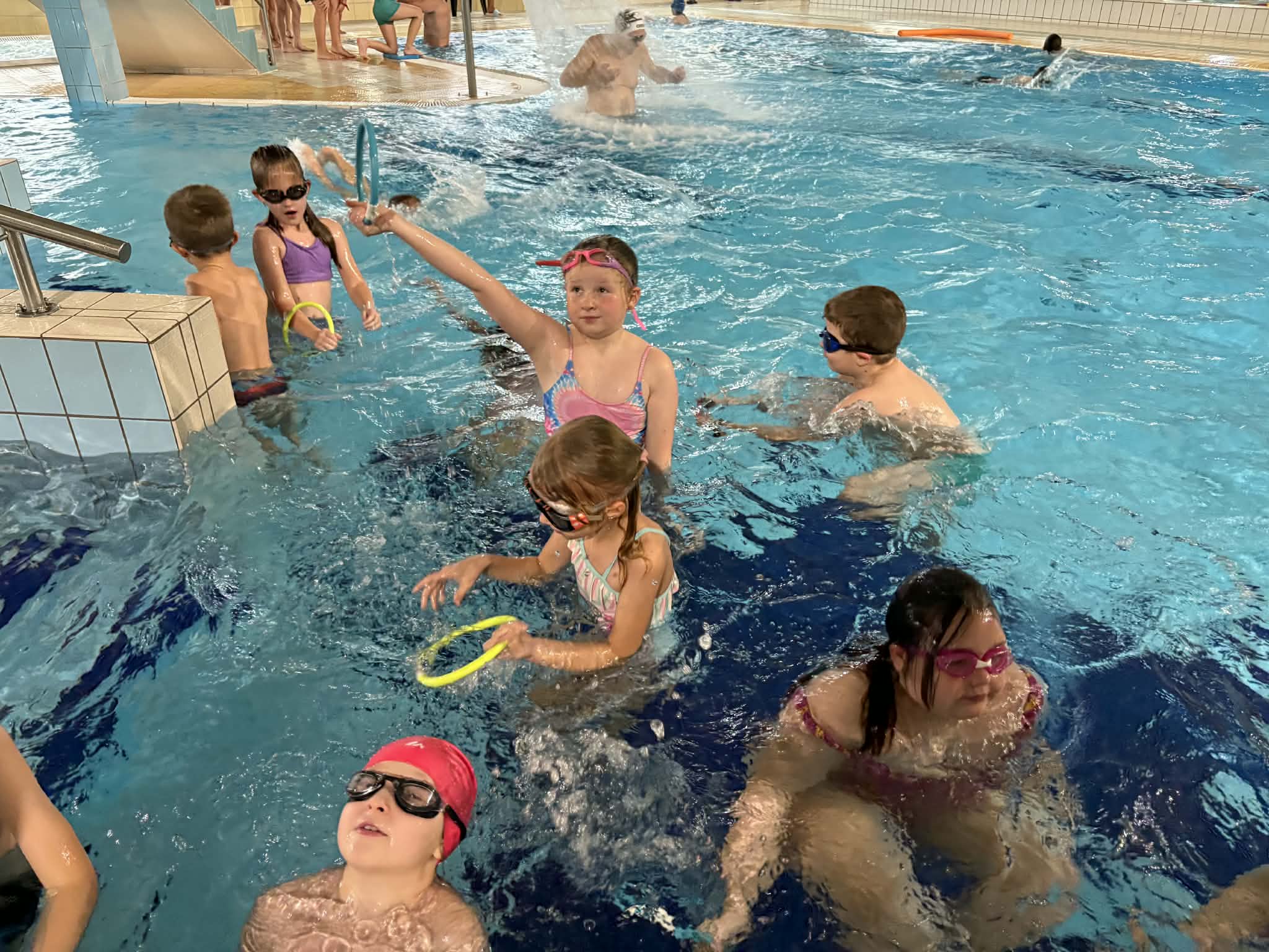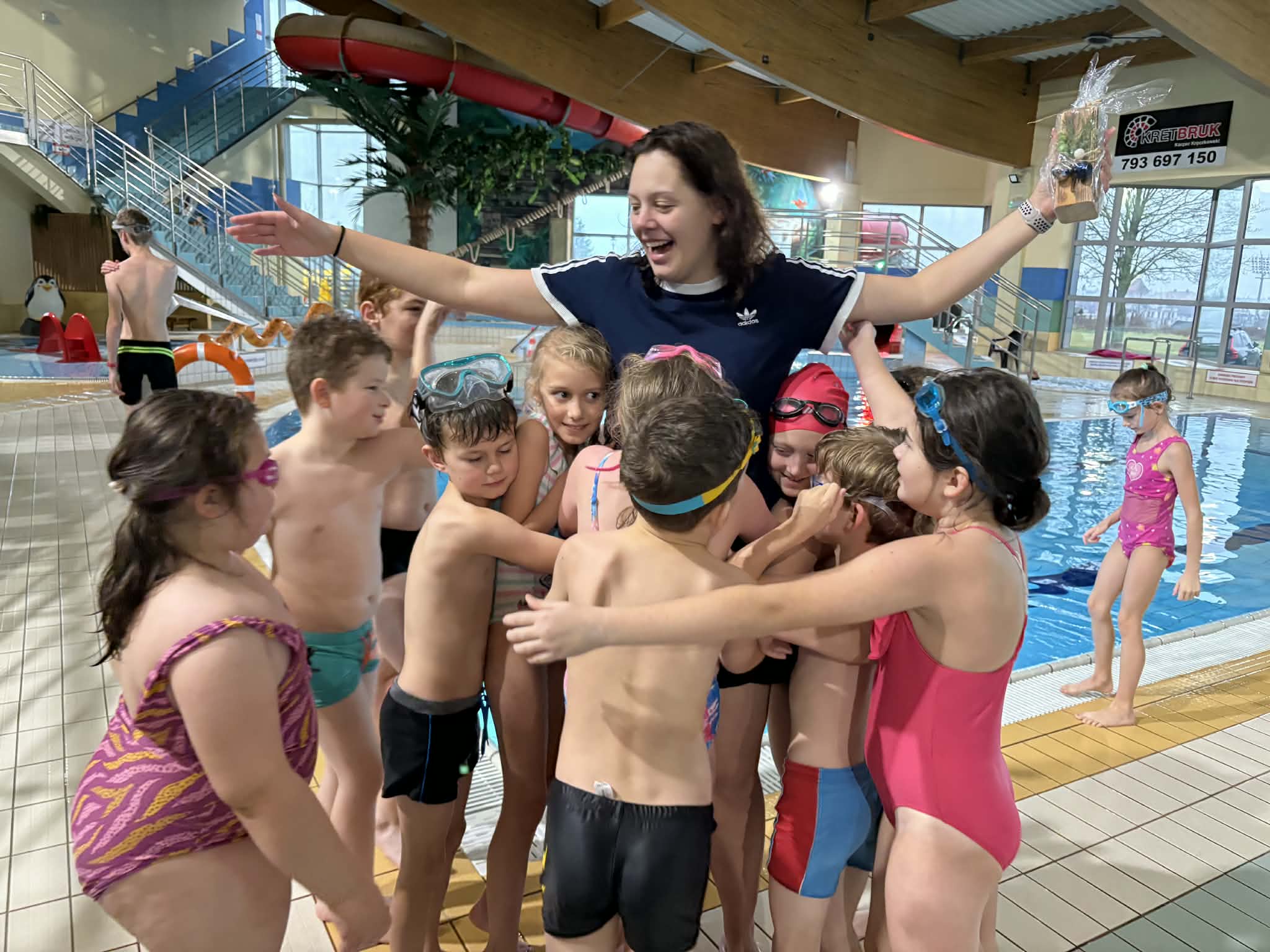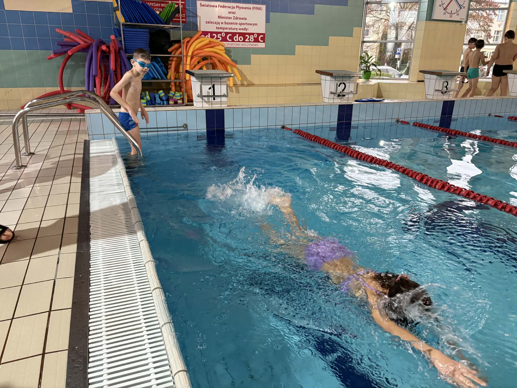 Zakończyliśmy cykl dziesięciu wyjazdów na lekcje nauki pływania i zabaw w wodzie. W trakcie zajęć uczniowie stopniowo oswajali się z wodą, nabierali pewności siebie oraz poznawali podstawowe techniki pływackie. Na ostatnich zajęciach odbył się egzamin podsumowujący zdobyte umiejętności. Najlepszymi pływakami zostali Maksymilian Kołodziejski i Hubert Wojciechowski, uzyskali oni dyplom II stopnia podstawowego. Dyplom I stopnia otrzymali: Wiktoria Szczepanska i Aleksandra Stoltmann z klasy II oraz Pola Świerko, Julia Gostomczyk, Franciszek Borzyszkowski z klasy III. Należy podkreślić, że każde dziecko zrobiło znaczący postęp i z zaangażowaniem uczestniczyło w nauce. Najwięcej radości sprawiły uczniom zabawy w wodzie, a szczególnie wyjątkowa atrakcja przygotowana na zakończenie - pływanie w dmuchanej bańce. Była to dla dzieci ogromna frajda i niezapomniane przeżycie, które wywołało mnóstwo śmiechu i pozytywnych emocji. Wyjazdy okazały się nie tylko okazją do nauki, ale również do świetnej zabawy i integracji. Dzieci wróciły pełne entuzjazmu i nowych doświadczeń.