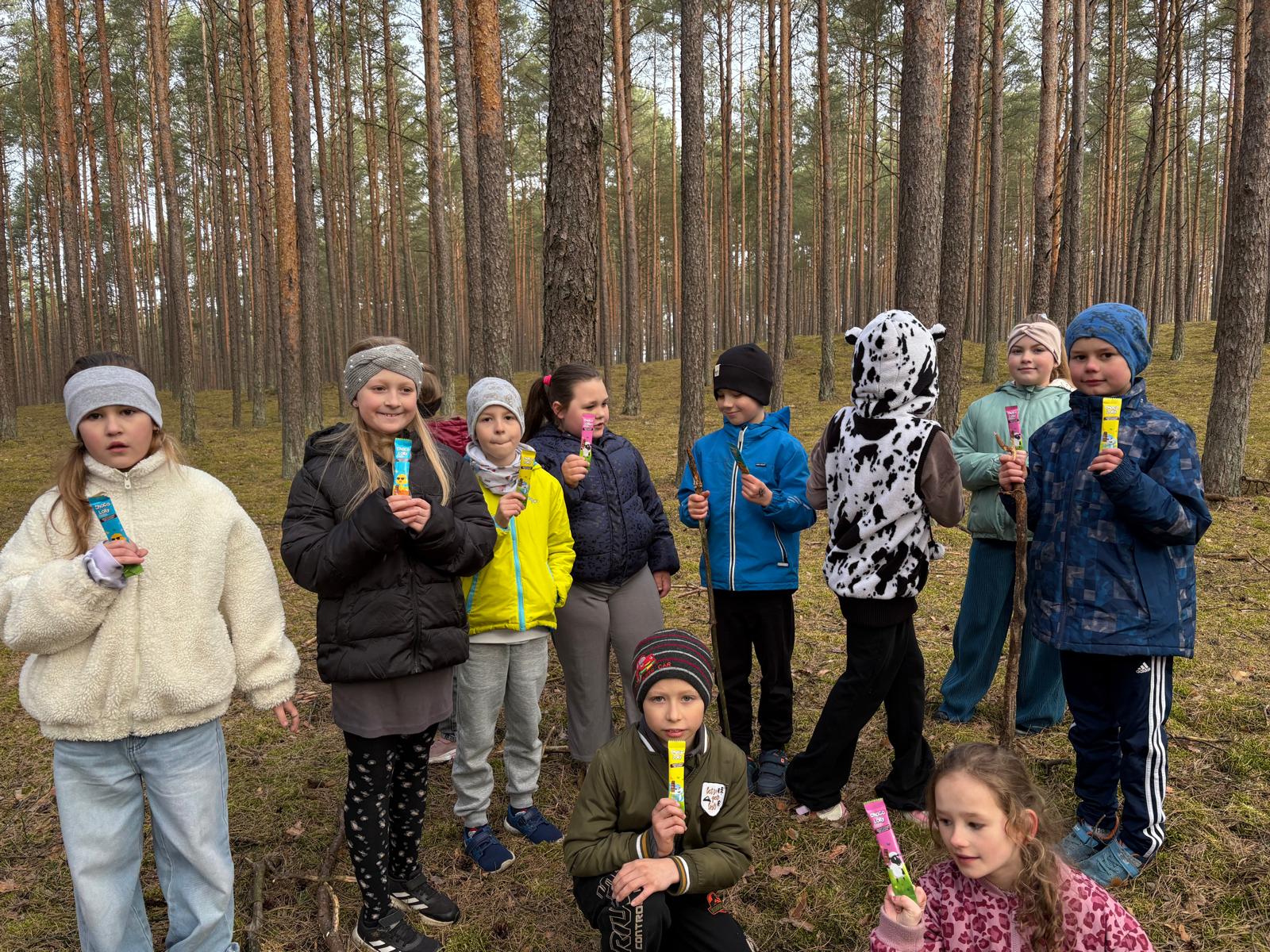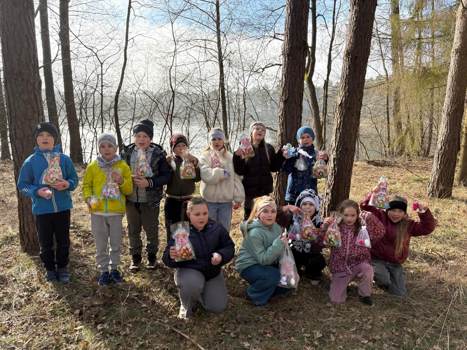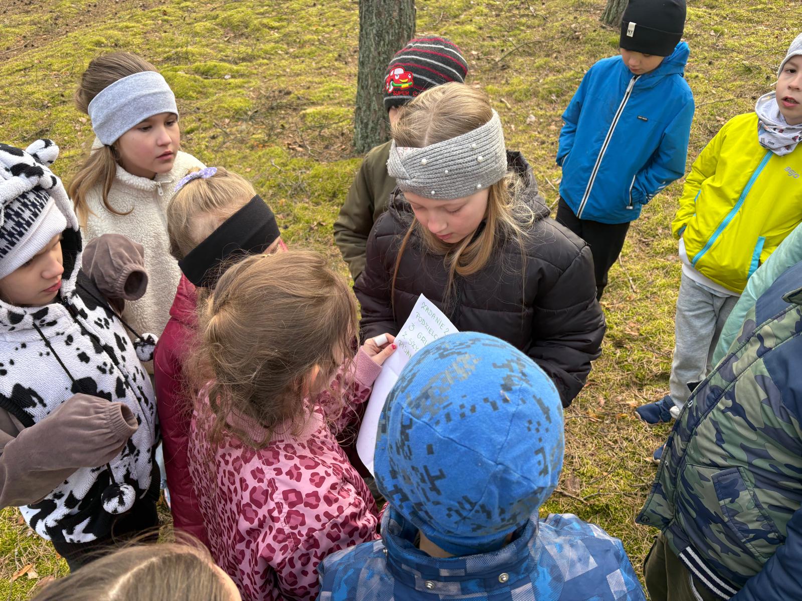 Tuż przed świętami uczniowie klasy II wzięli udział w niezwykłej przygodzie- podchodach w poszukiwaniu Wielkanocnego Zajączka. Uczniowie wyruszyli na poszukiwania kierując się wskazówkami pozostawionymi przez zajączka. Każda odnaleziona karta prowadziła ich do kolejnego miejsca i kryła nowe zadania do wykonania. Dzieci musiały wykazać się spostrzegawczością, sprytem oraz umiejętnością współpracy. Nie brakowało śmiechu, emocji i radości z odkrywania kolejnych tropów. Z każdą wskazówką uczniowie byli coraz bliżej odnalezienia wielkanocnej niespodzianki. Po przejściu całej trasy udało się odnaleźć ukryty "koszyczek" przygotowany przez Wielkanocnego Zajączka. W środku czekały na dzieci słodkie jajeczka i kredki, które były nagrodą za ich zaangażowanie i świetną współpracę. Podchody sprawiły wszystkim wiele radości i były doskonałą okazją do wspólnej zabawy oraz wprowadzenia się w radosny świąteczny nastrój.