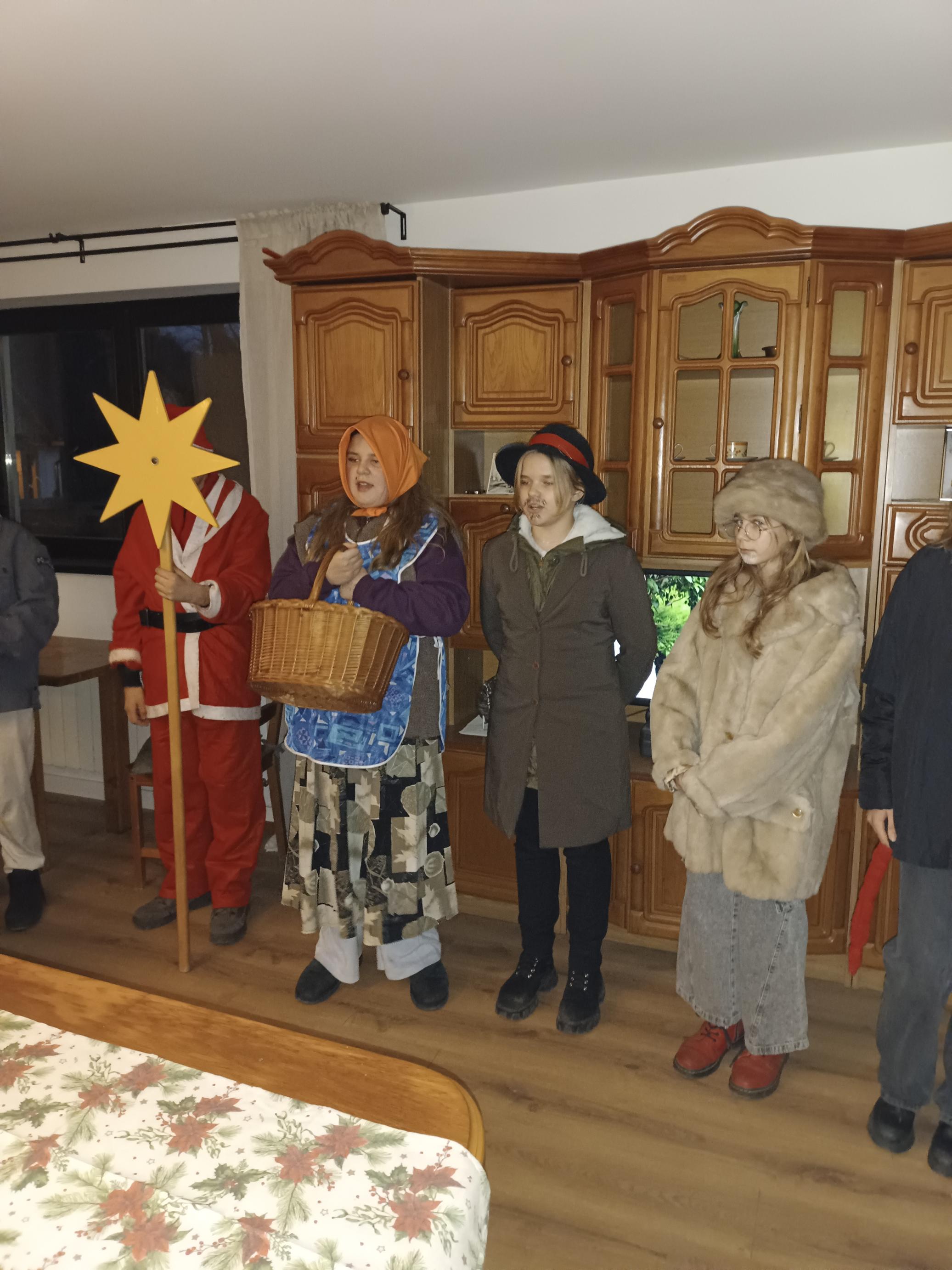 Młodzi ludzie, ubrani w barwne stroje, odwiedzali kolejne domostwa, gdzie śpiewali kolędy i pastorałki w języku regionalnym – kaszubskim. Oprócz śpiewu odgrywali swoje role oraz składali mieszkańcom życzenia zdrowia, radości, wesołych Świąt Bożego Narodzenia i pomyślności w nadchodzącym Nowym Roku. Kolędowanie spotkało się z bardzo serdecznym przyjęciem mieszkańców wsi. W podziękowaniu za występy uczniowie otrzymywali drobne upominki, najczęściej słodycze. Udział w tym wydarzeniu był dla dzieci cenną lekcją pielęgnowania lokalnych tradycji oraz wspólnego, radosnego przeżywania świątecznego czasu.
