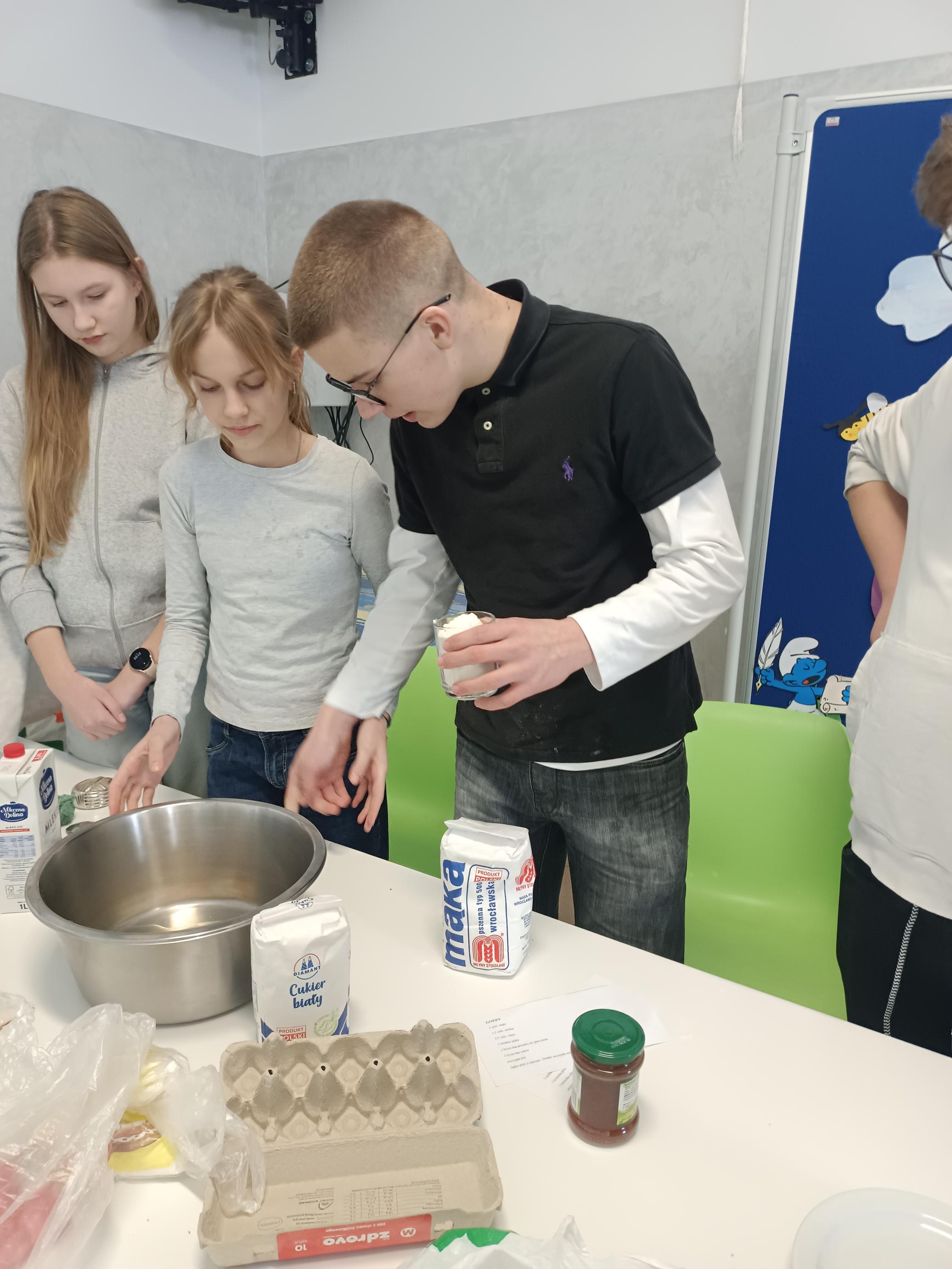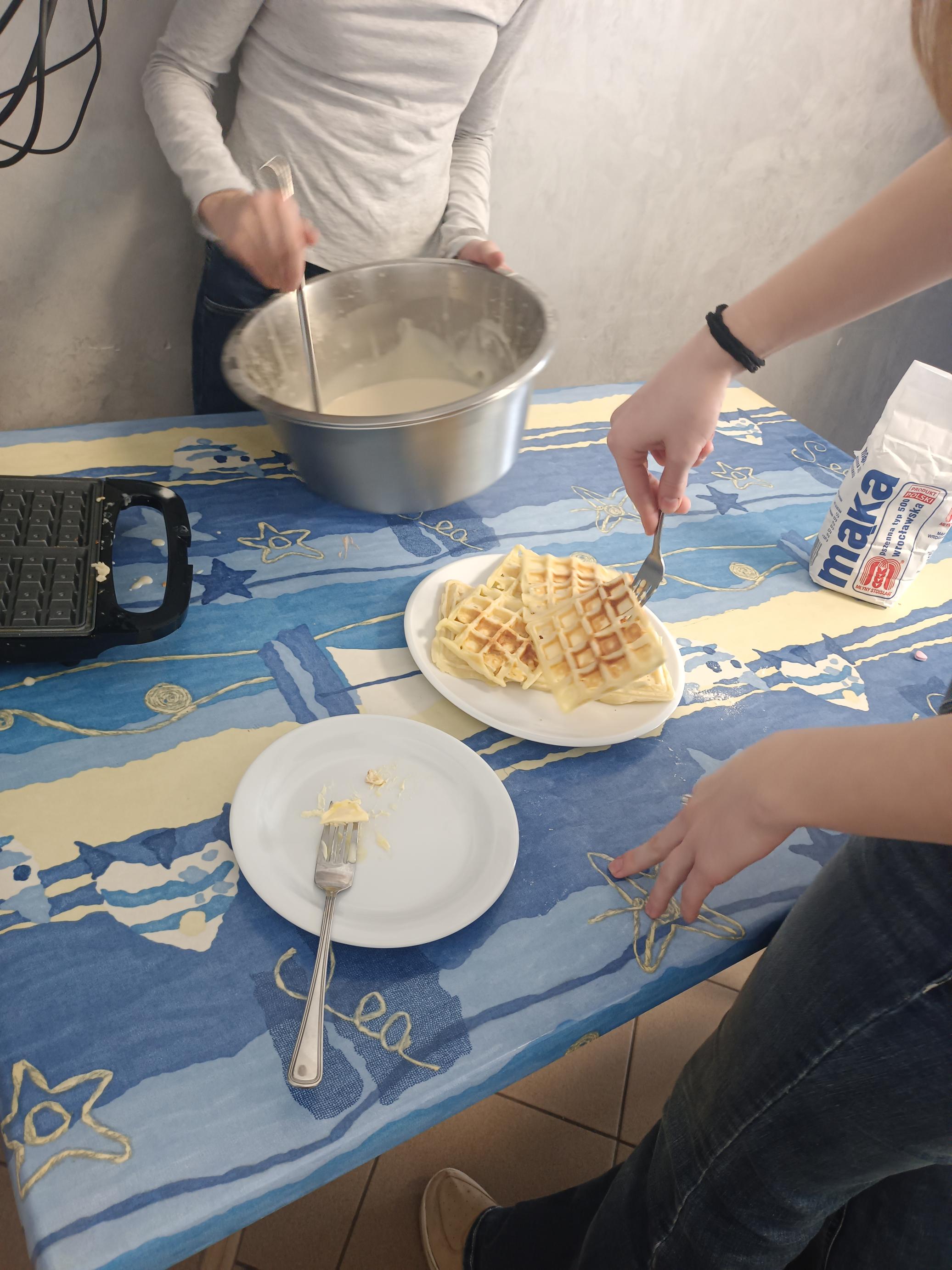 Podczas lekcji języka kaszubskiego uczniowie klasy 8 poznawali kaszubską tradycję w praktyce. Wspólnie przygotowywali pyszne gofry, czyli tradycyjne kaszubskie wafle, które od pokoleń są elementem regionalnej kuchni. Zajęcia były nie tylko ciekawą lekcją języka, ale także okazją do pielęgnowania i poznawania dziedzictwa kulturowego Kaszub.