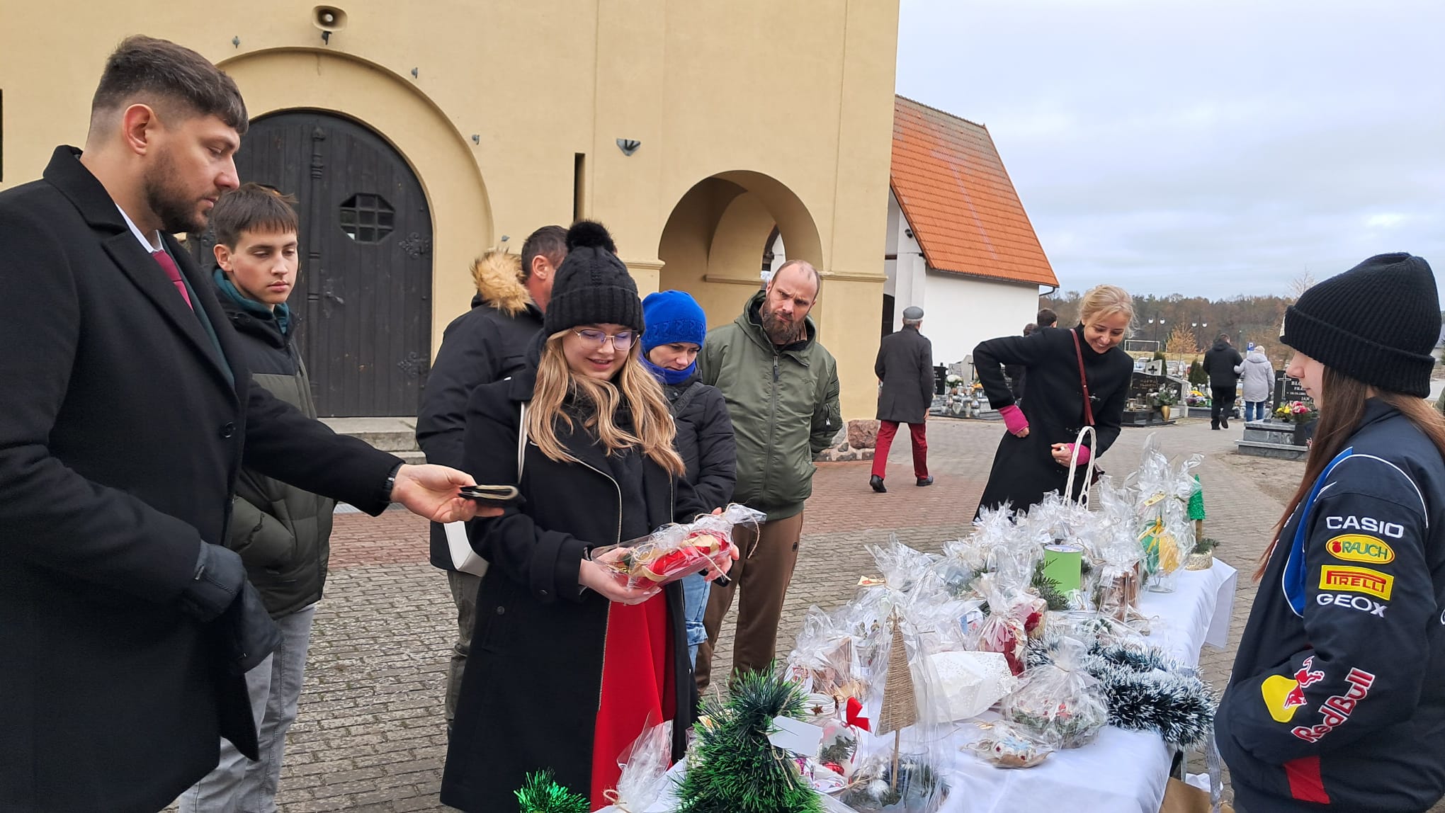 Dnia 14.12.2025 na placu przed koscioÅ‚em odbyÅ‚ siÄ™ charytatywny kiermasz Å›wiÄ…teczny zorganizowany przez szkolny klub wolontariatu. Można byÅ‚o nabyć na nim ozdoby Å›wiÄ…teczne, wieÅ„ce, stroiki, Å›wieczniki, a także piÄ™kne pachnÄ…ce mydeÅ‚ka i Å›wieczki wykonane przez naszych uczniów na jÄ™zyku kaszubskim. ZnalazÅ‚y siÄ™ również na nim ozdoby Å›wiÄ…teczne, które braÅ‚y udziaÅ‚ w szkonym konkursie, a nastÄ™pnie przekazane zostaÅ‚y na Å›wiÄ…tecznÄ… akcjÄ™. DziÄ™kujemy wszystkim, którzy w jakikolwiek sposób przyczynili siÄ™ do tego, aby ten kiermasz mógÅ‚ siÄ™ odbyć: zaangażowanym nauczyucielom, uczniom, rodzicom. Kiermasz cieszyÅ‚ siÄ™ wielkim zainteresowaniem. DziÄ™ki chojnoÅ›ci wszystkich zainteresowanych udaÅ‚o nam siÄ™ zebrać kwotÄ™ 1770zÅ‚, która w caÅ‚oÅ›ci wraz z innymi Å›rodkami z pozostaÅ‚ych akcji zostaÅ‚a przekazana na potrzeby podopiecznych z Domu Dziecka w CzÅ‚uchowie.