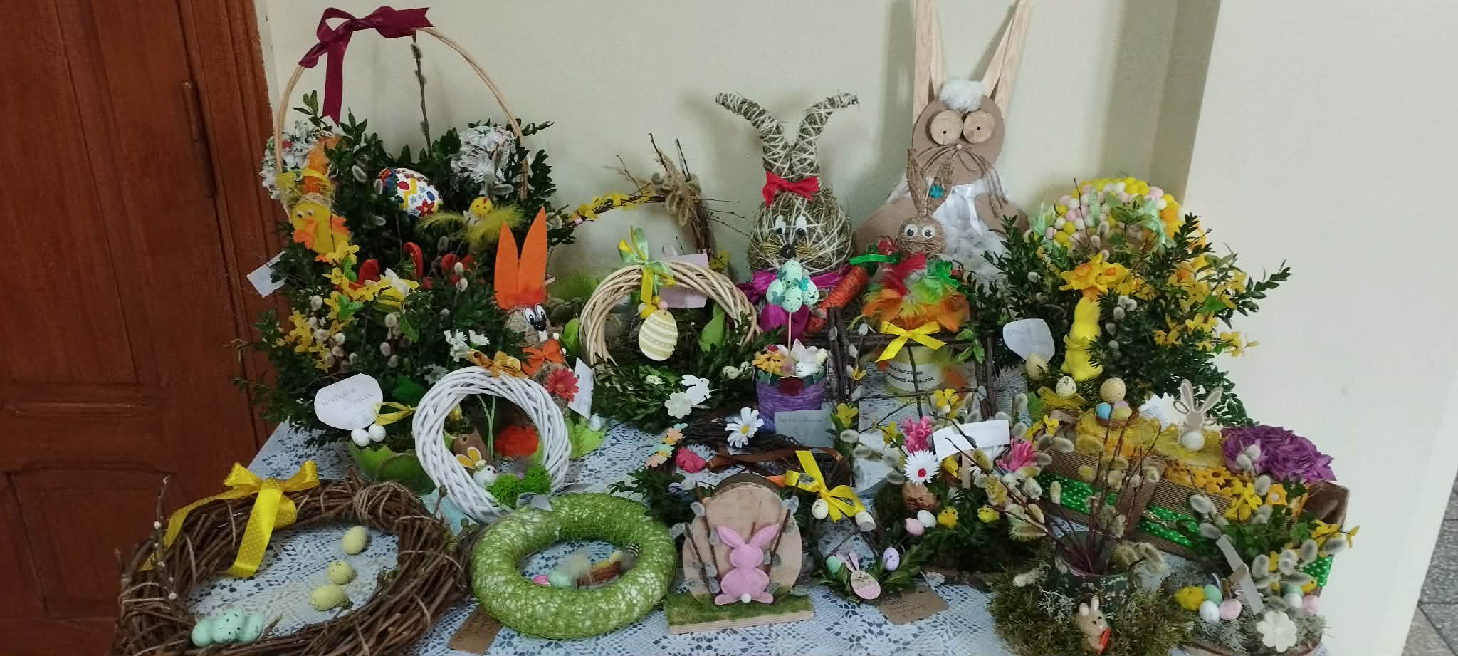 Wszystkie zgłoszone ozdoby można było podziwiać na wystawie szkolnej, które następnie zostały przekazane dla Koła Wolontariatu na kiermasz zorganizowany w niedzielę palmową przy Kościele Parafialnym.