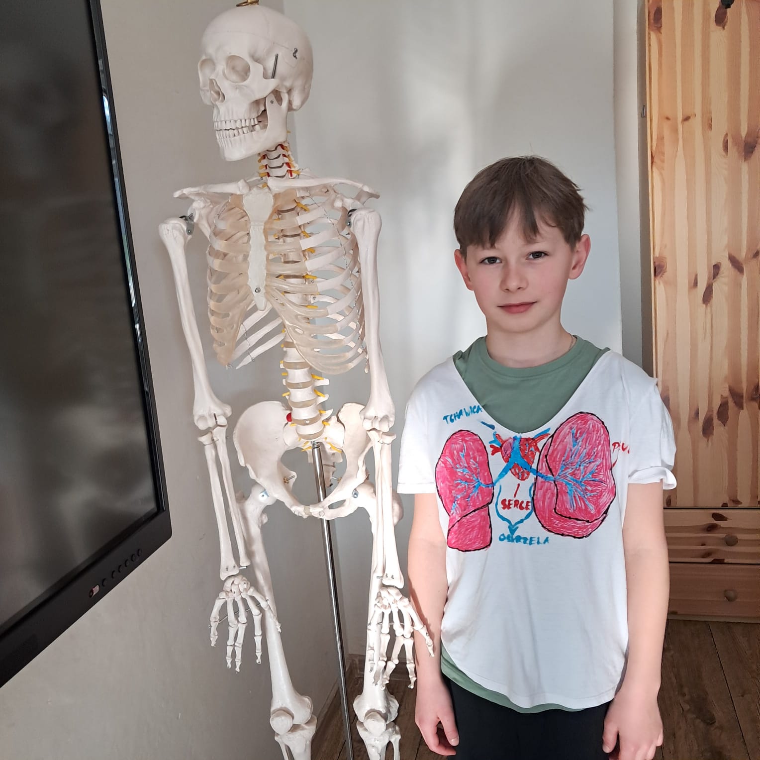 W części praktycznej uczniowie pracowali twórczo – każdy z nich wykonał ilustrację wybranego układu narządów na koszulce. Powstały m.in. prace przedstawiające układ krwionośny, oddechowy, pokarmowy, szkieletowy oraz rozrodczy. Dzięki temu zadaniu uczniowie mogli w ciekawy i angażujący sposób powtórzyć położenie oraz wygląd narządów w ciele człowieka.