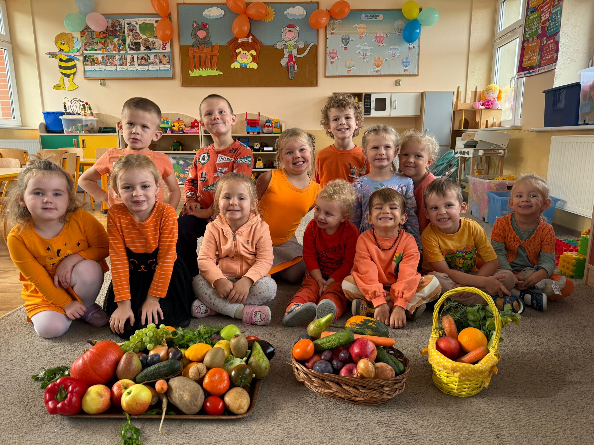 Pierwszy dzień jesieni w naszym przedszkolu upłynął pod znakiem pomarańczowej radości, bo właśnie wtedy dzieci z młodszej grupy przedszkolnej świętowały Urodziny Marchewki! Wszystkie maluchy przyszły ubrane na pomarańczowo, dzięki czemu nasza sala wyglądała jak prawdziwa marchewkowa kraina.