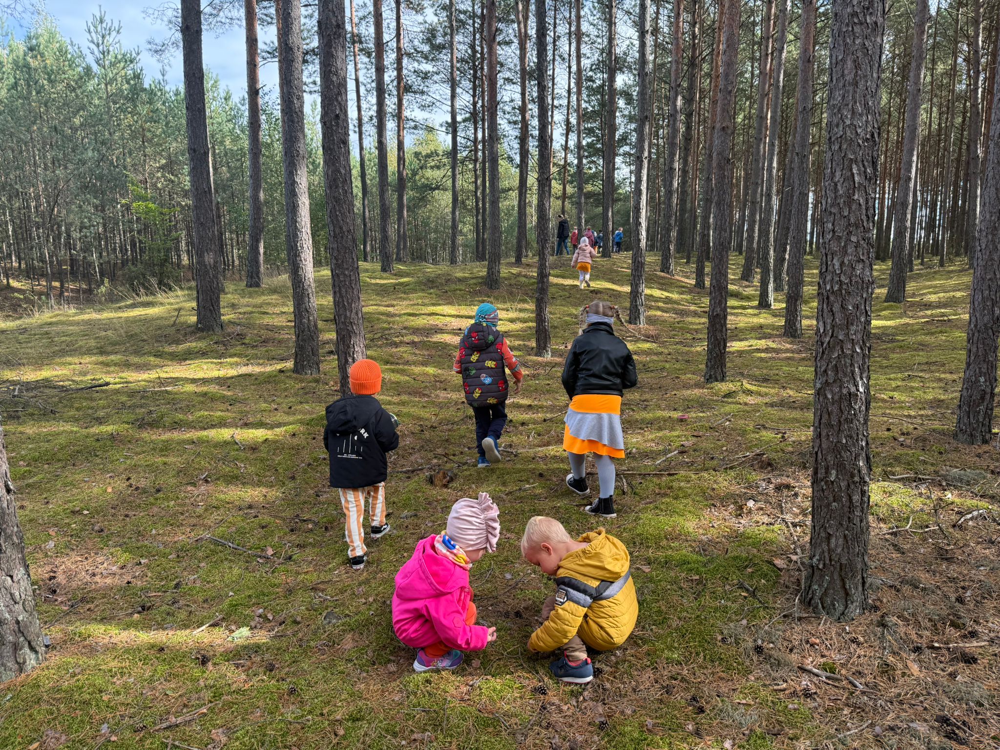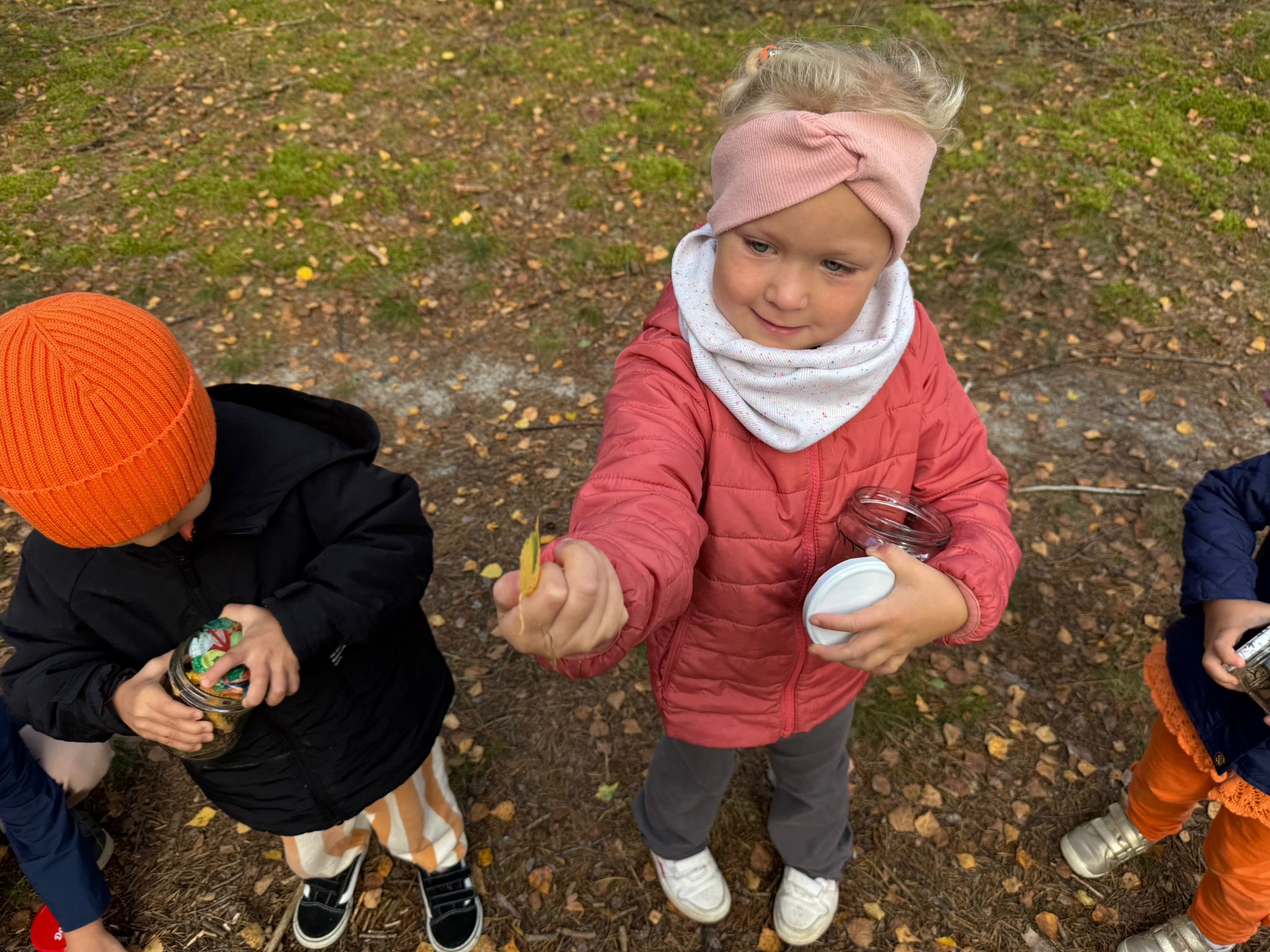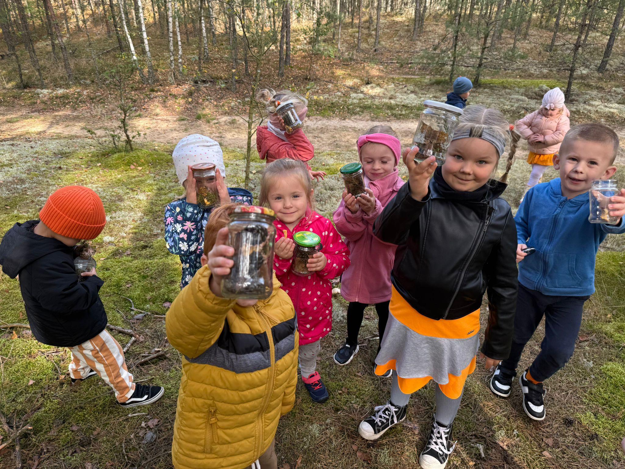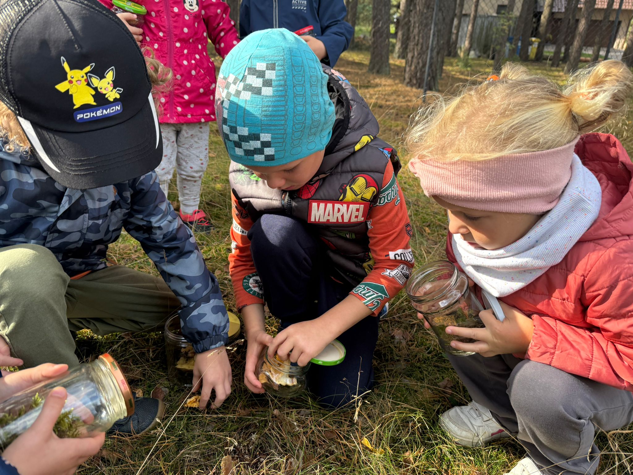Nie zabrakło także zabaw i muzyki – wspólnie śpiewaliśmy i bawiliśmy się przy wesołej piosence „Na marchewki urodziny”, która wprowadziła wszystkich w jeszcze bardziej radosny nastrój. Aby uczcić nadejście jesieni, wybraliśmy się także na spacer do lasu. Dzieci uważnie szukały pierwszych oznak nowej pory roku, które potem „zamknęły w słoiku”, tworząc swoje małe jesienne skarby.