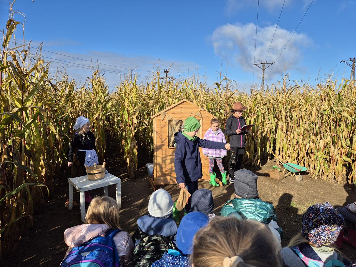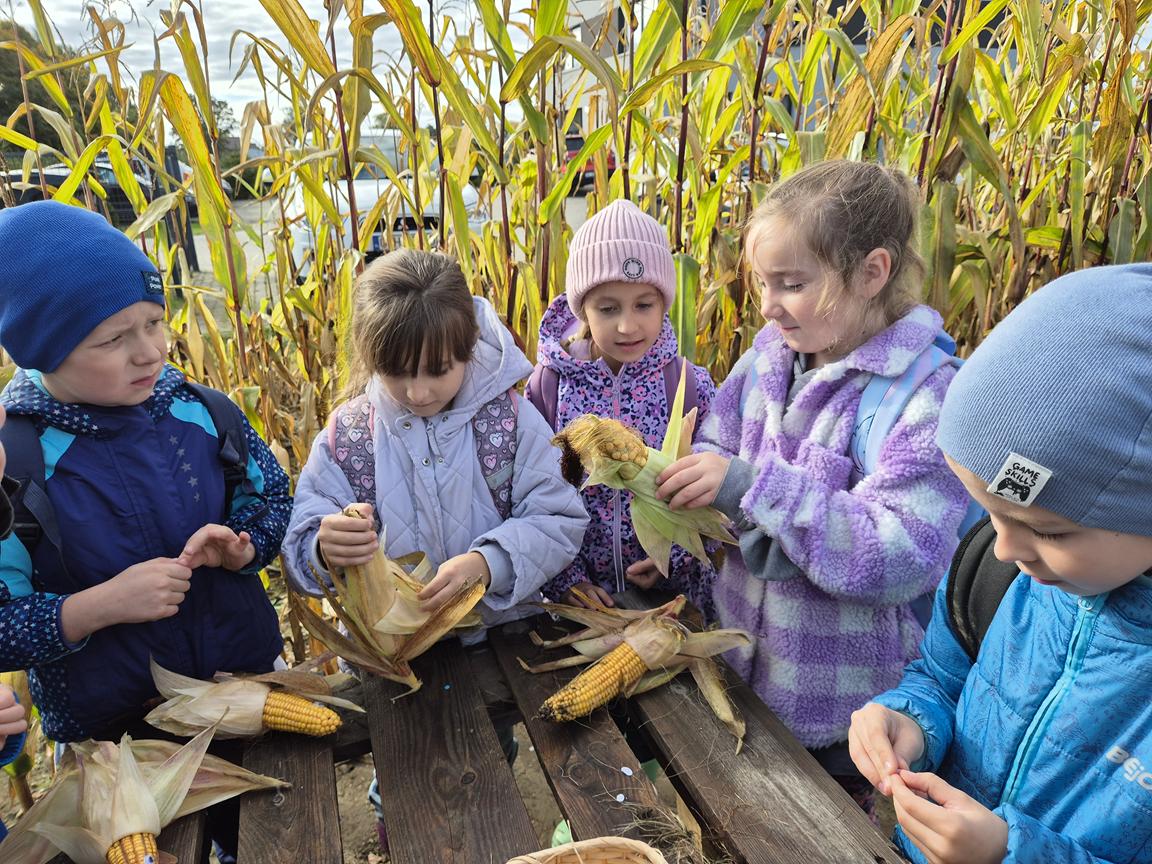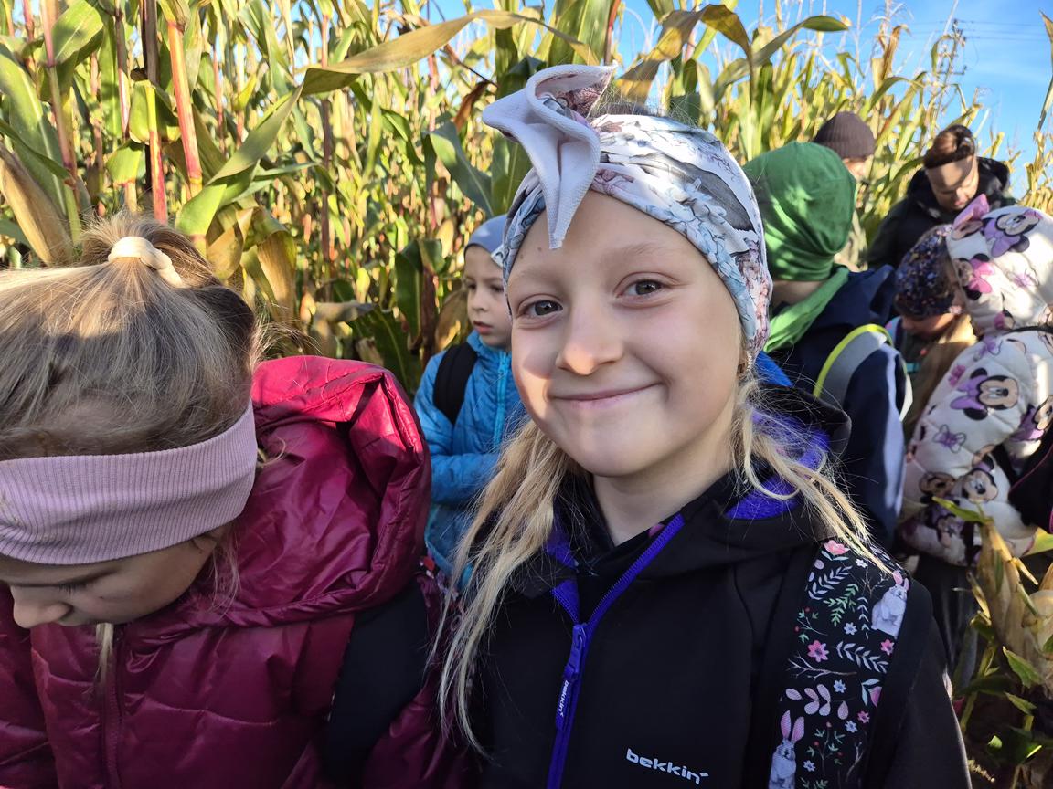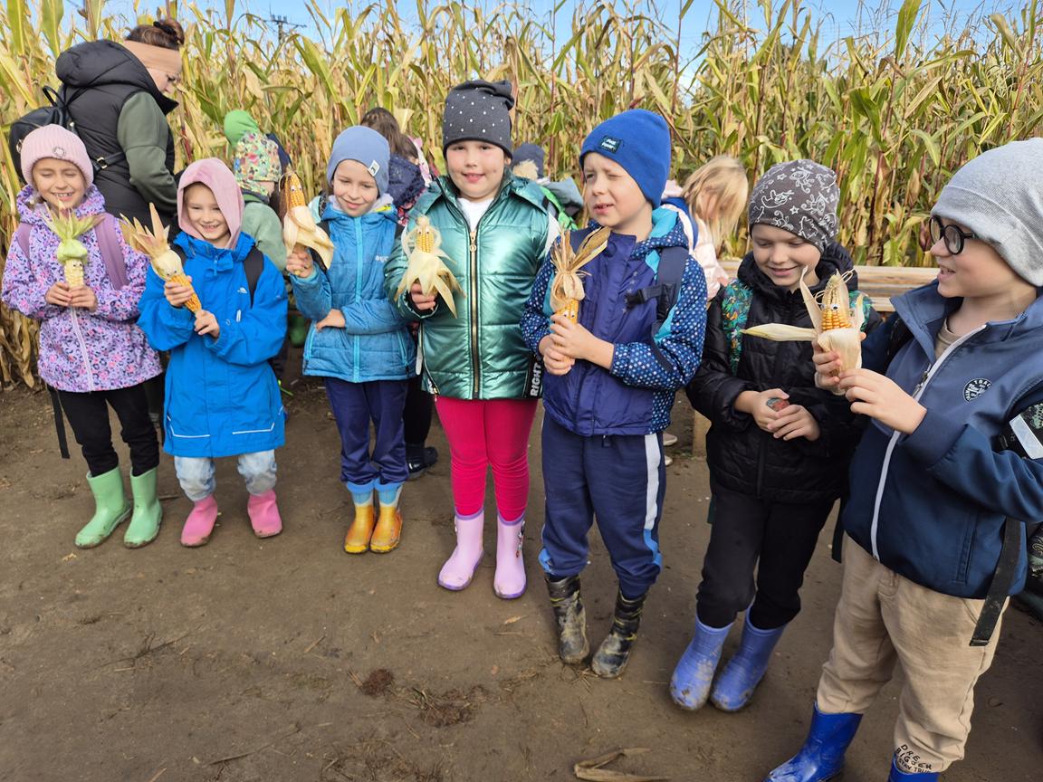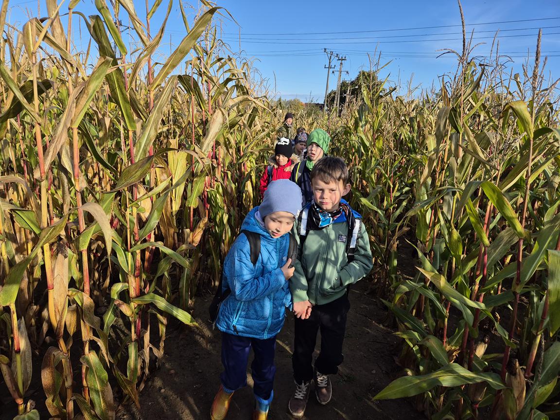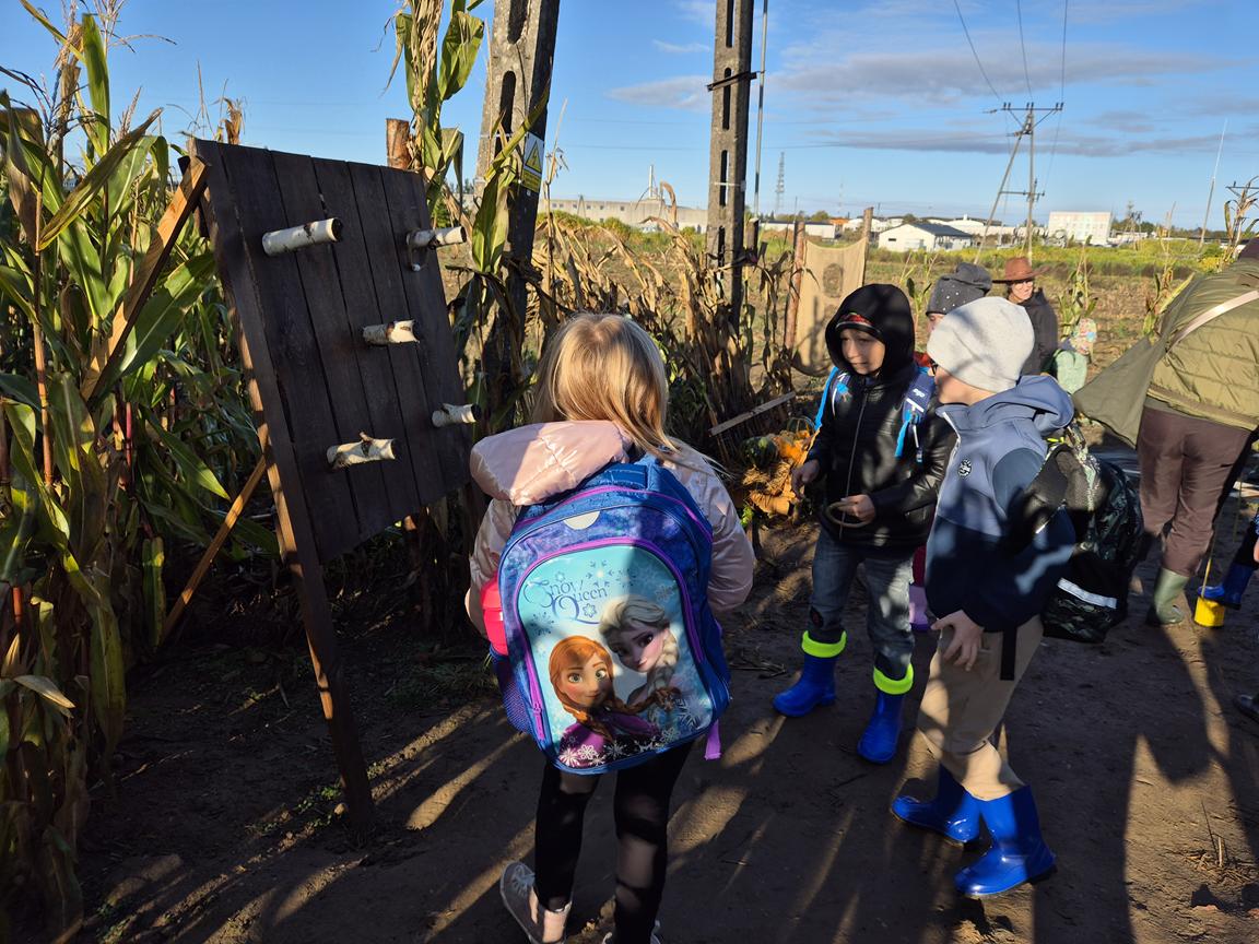 9 października 2025r. uczniowie uczęszczający na lekcje języka kaszubskiego, wzięli udział w pełnej atrakcji i niespodzianek wyprawie do labiryntu kukurydzy. Labirynt inspirowany polską wsią krył liczne stacje sensoryczne, zagadki oraz zadania, dzięki którym uczestnicy mogli poznać tradycyjne zwyczaje i sprawdzić swoje umiejętności w orientacji w terenie. Ciekawym punktem na trasie był teatr legend pod gołym niebem, który przeniósł wszystkich w magiczny świat kaszubskich opowieści. Po przejściu całego labiryntu dzieci skosztowały pysznego popcornu i gorącej herbaty.