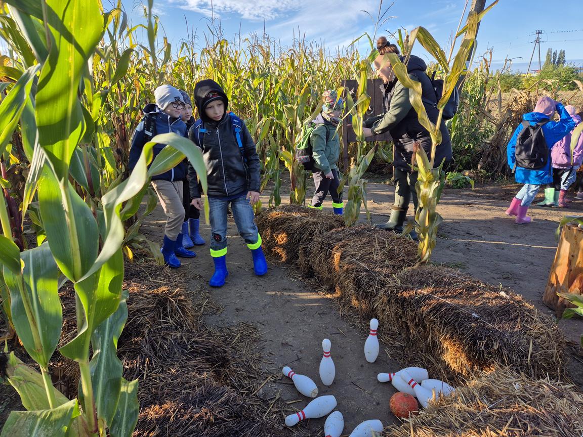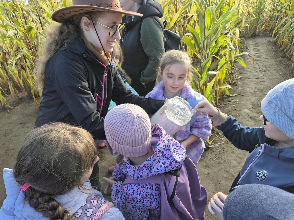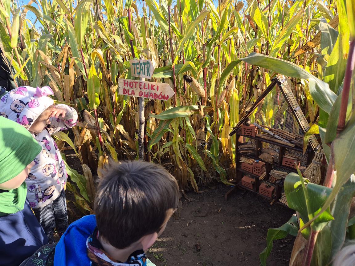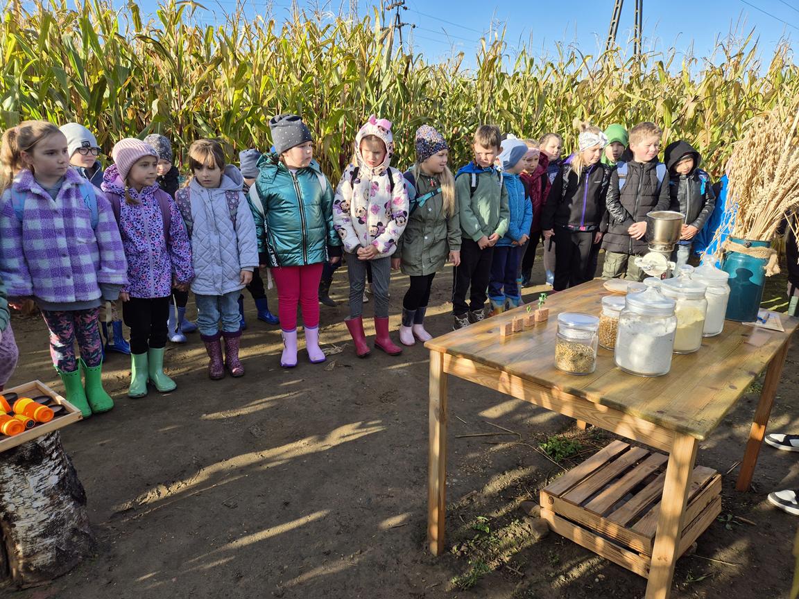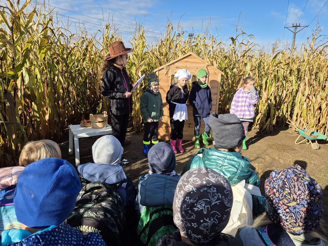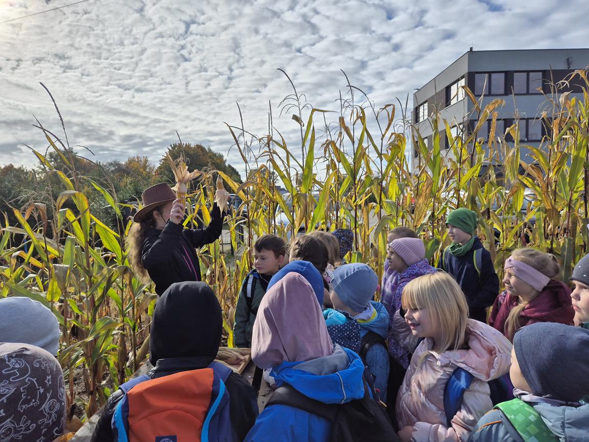 9 października 2025r. uczniowie uczęszczający na lekcje języka kaszubskiego, wzięli udział w pełnej atrakcji i niespodzianek wyprawie do labiryntu kukurydzy. Labirynt inspirowany polską wsią krył liczne stacje sensoryczne, zagadki oraz zadania, dzięki którym uczestnicy mogli poznać tradycyjne zwyczaje i sprawdzić swoje umiejętności w orientacji w terenie. Ciekawym punktem na trasie był teatr legend pod gołym niebem, który przeniósł wszystkich w magiczny świat kaszubskich opowieści. Po przejściu całego labiryntu dzieci skosztowały pysznego popcornu i gorącej herbaty.