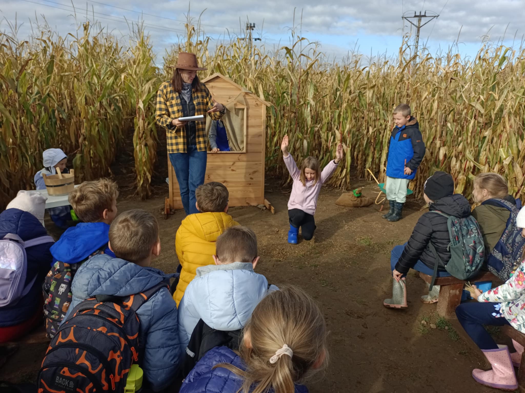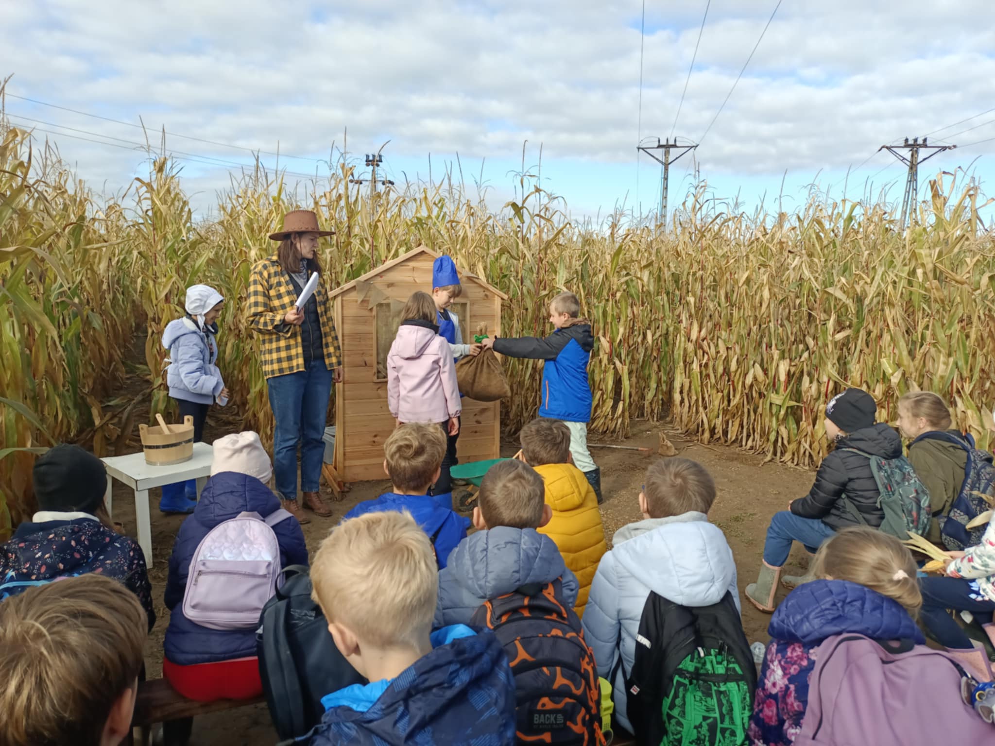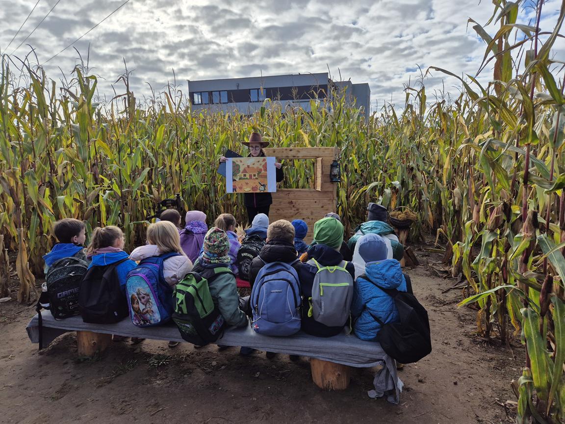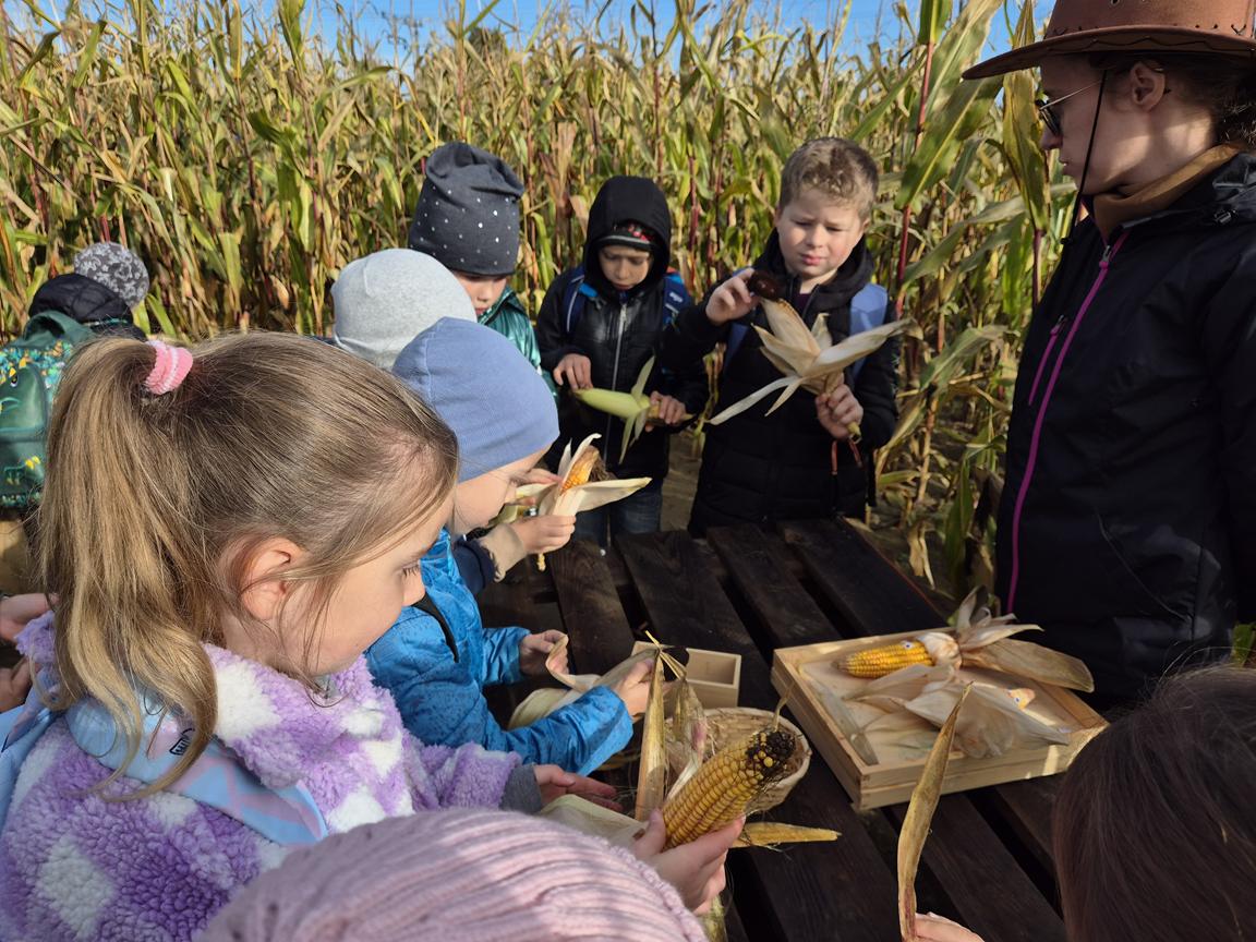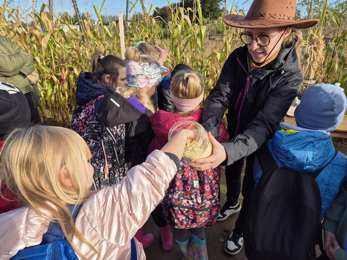 9 października 2025r. uczniowie uczęszczający na lekcje języka kaszubskiego, wzięli udział w pełnej atrakcji i niespodzianek wyprawie do labiryntu kukurydzy. Labirynt inspirowany polską wsią krył liczne stacje sensoryczne, zagadki oraz zadania, dzięki którym uczestnicy mogli poznać tradycyjne zwyczaje i sprawdzić swoje umiejętności w orientacji w terenie. Ciekawym punktem na trasie był teatr legend pod gołym niebem, który przeniósł wszystkich w magiczny świat kaszubskich opowieści. Po przejściu całego labiryntu dzieci skosztowały pysznego popcornu i gorącej herbaty.
