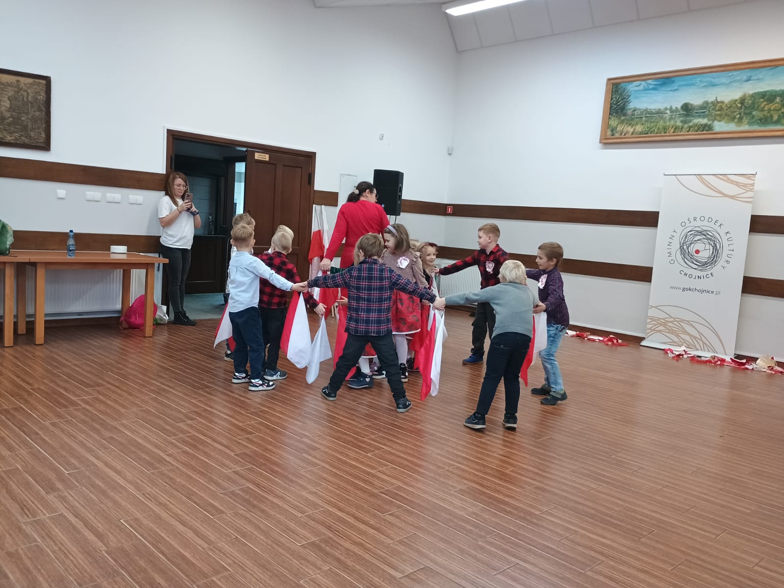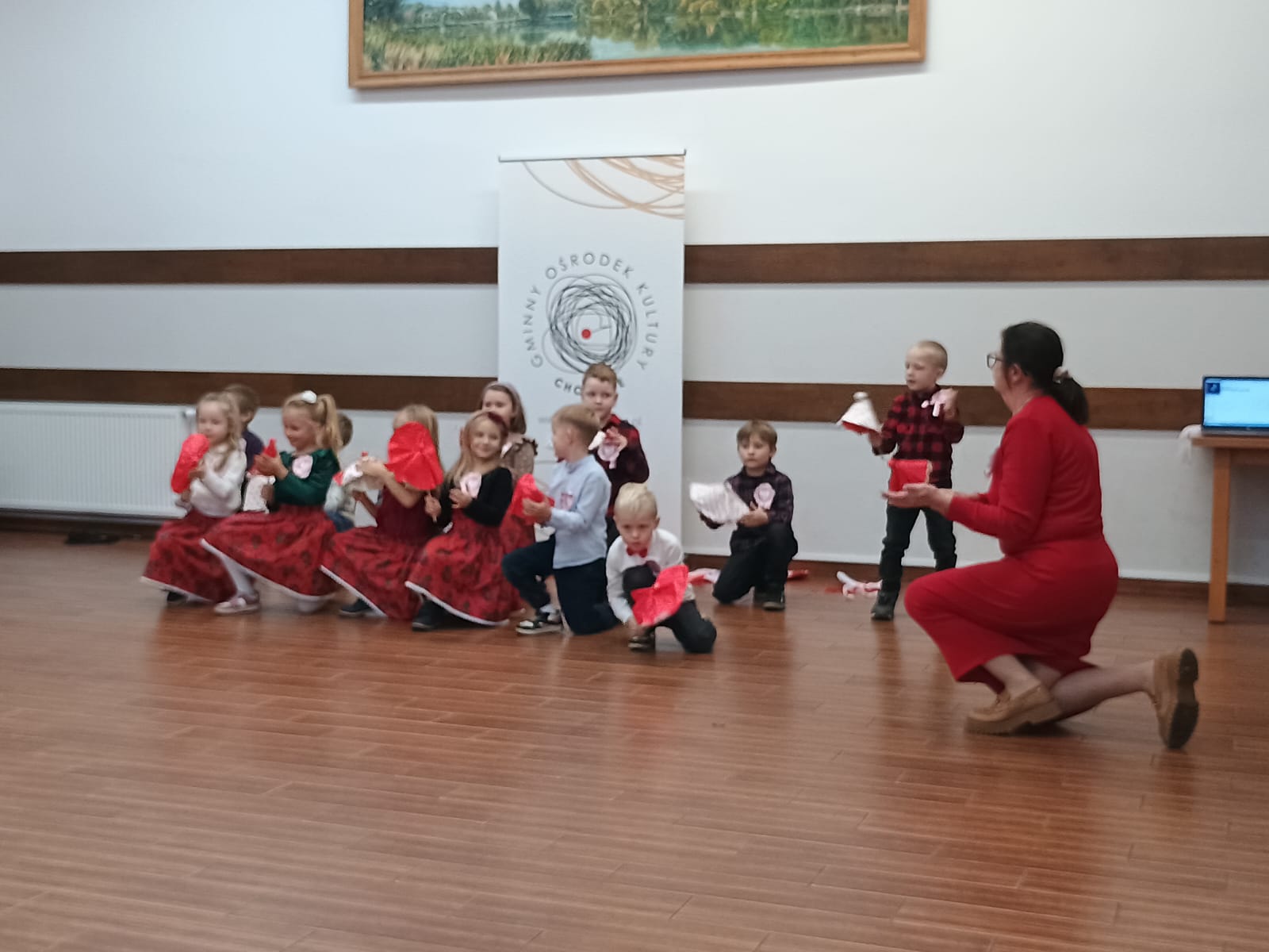 12 listopada świętowaliśmy w przedszkolu, zaś 13 listopada uczestniczyliśmy w warsztatach patriotycznych zorganizowane przez Wiejski Dom Kultury w Swornegaciach. Podczas warsztatów wykonaliśmy gliniane serduszka w barwach narodowych oraz chorągiewki złożone z białych i czerwonych serduszek.
