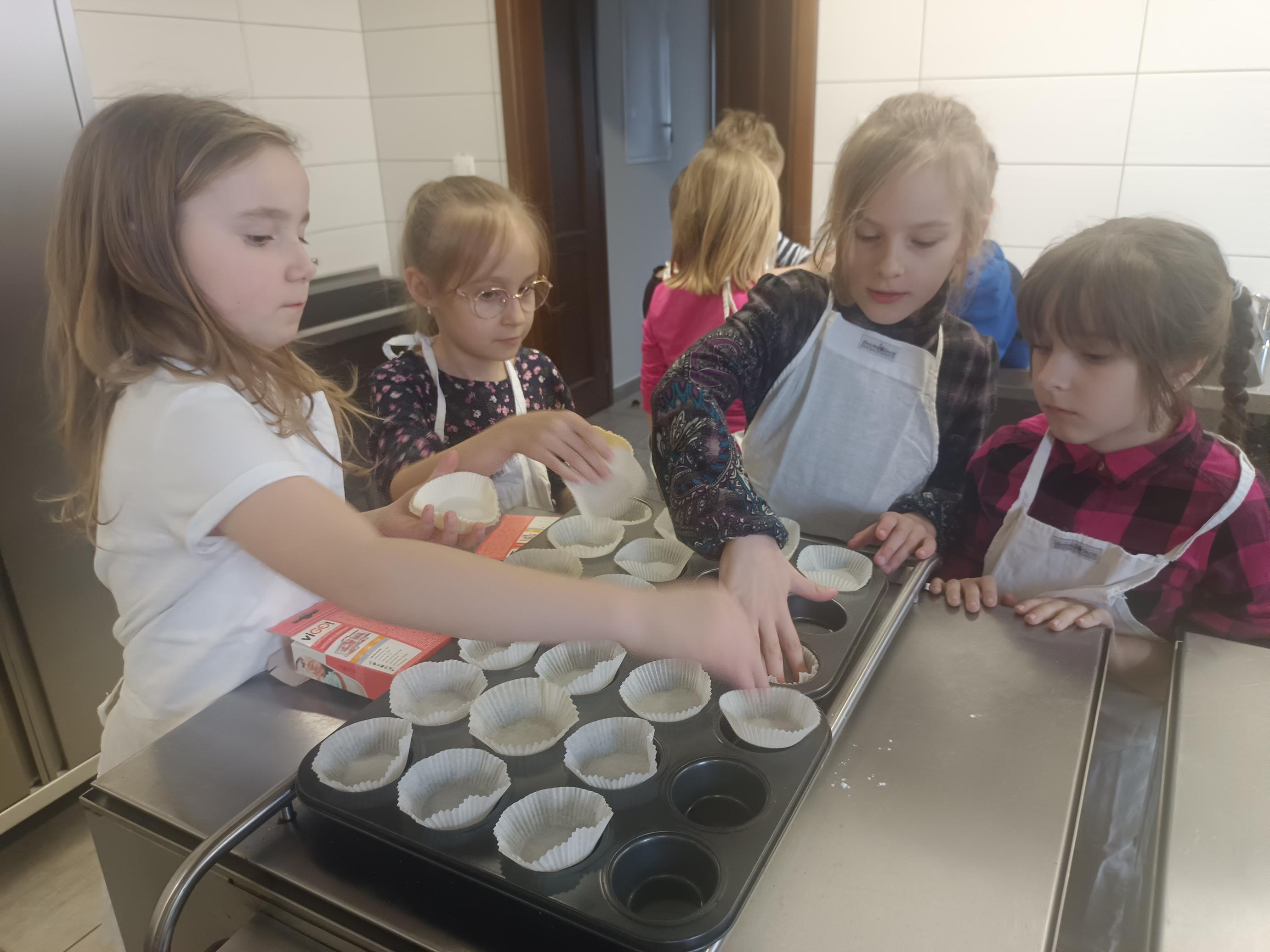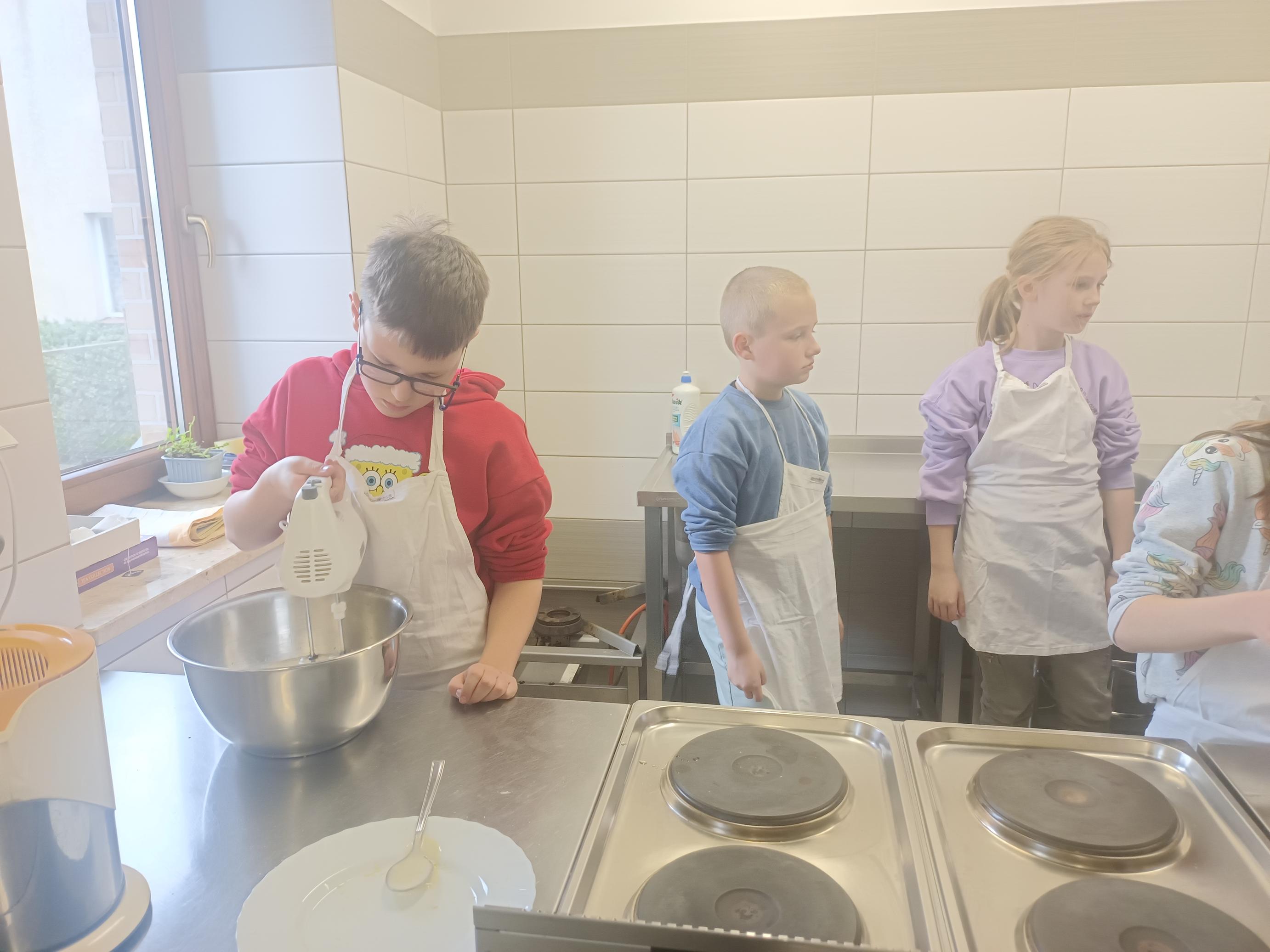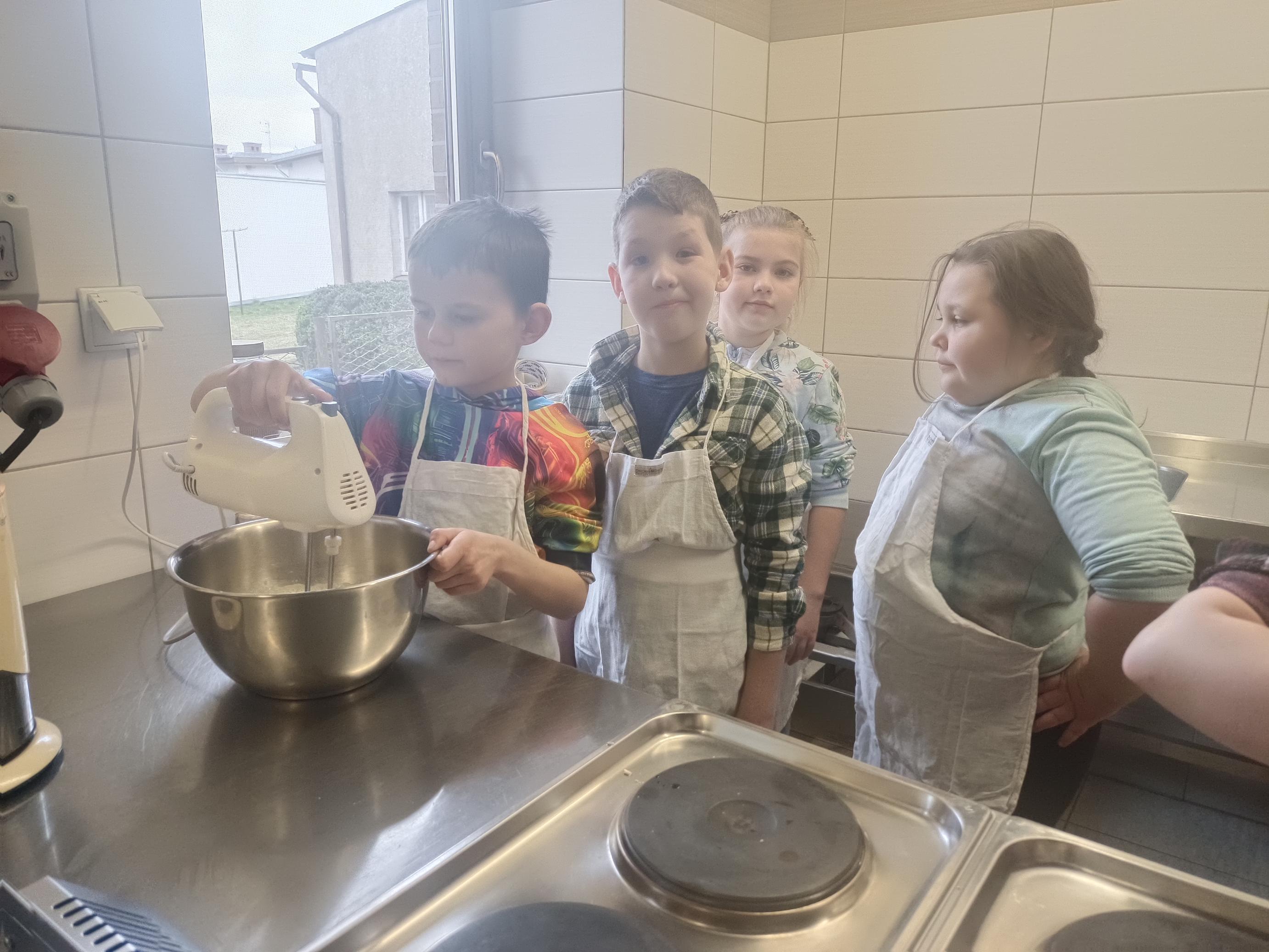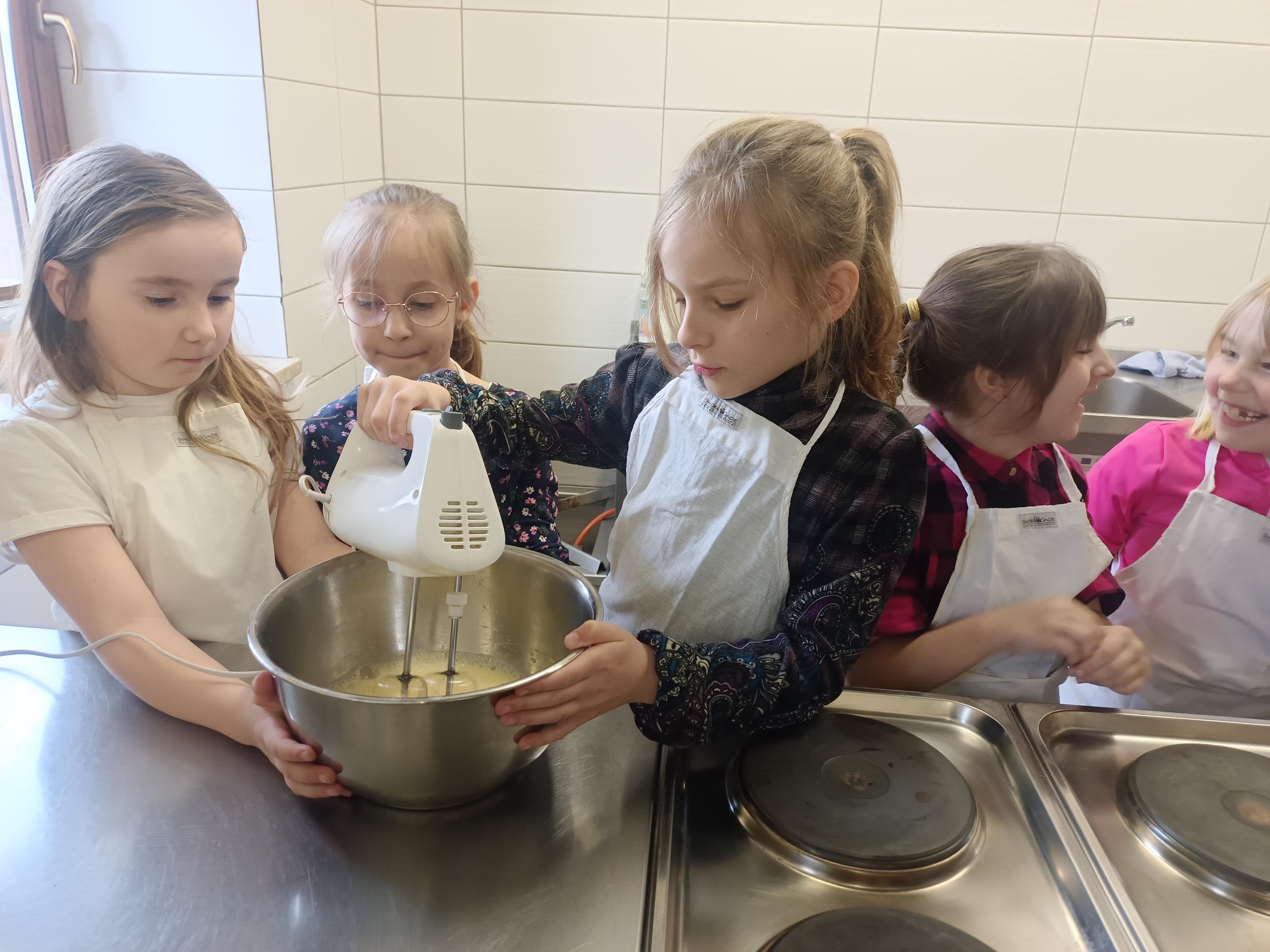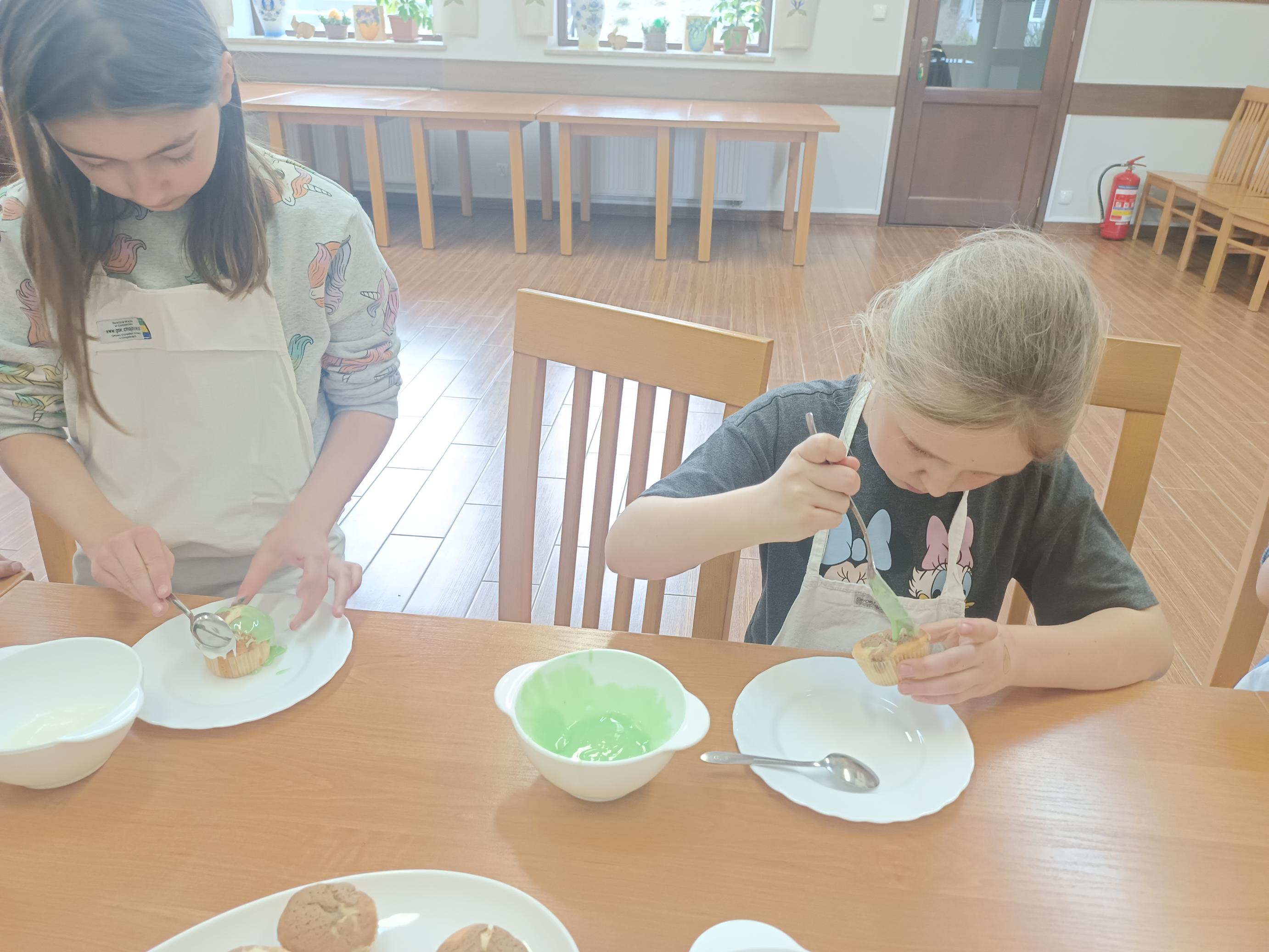 W czwartek, 26 marca, uczniowie klas I–III przenieśli się do wyjątkowej, pachnącej świętami pracowni małych cukierników. W ramach przygotowań do Wielkanocy piekli świąteczne babeczki. Z ogromnym zaangażowaniem odmierzali składniki, mieszali ciasto i z niecierpliwością zaglądali do piekarnika, czekając na swoje wypieki. Gdy babeczki nabrały złocistego koloru, rozpoczęła się najbardziej twórcza część zajęć – dekorowanie. Na stołach pojawiły się kolorowe lukry, posypki i wiosenne motywy. Każda babeczka stała się małym dziełem sztuki – pełnym barw, fantazji i dziecięcej radości. W powietrzu unosił się zapach słodkości, a pracownię wypełnił śmiech, rozmowy i prawdziwie świąteczna atmosfera.