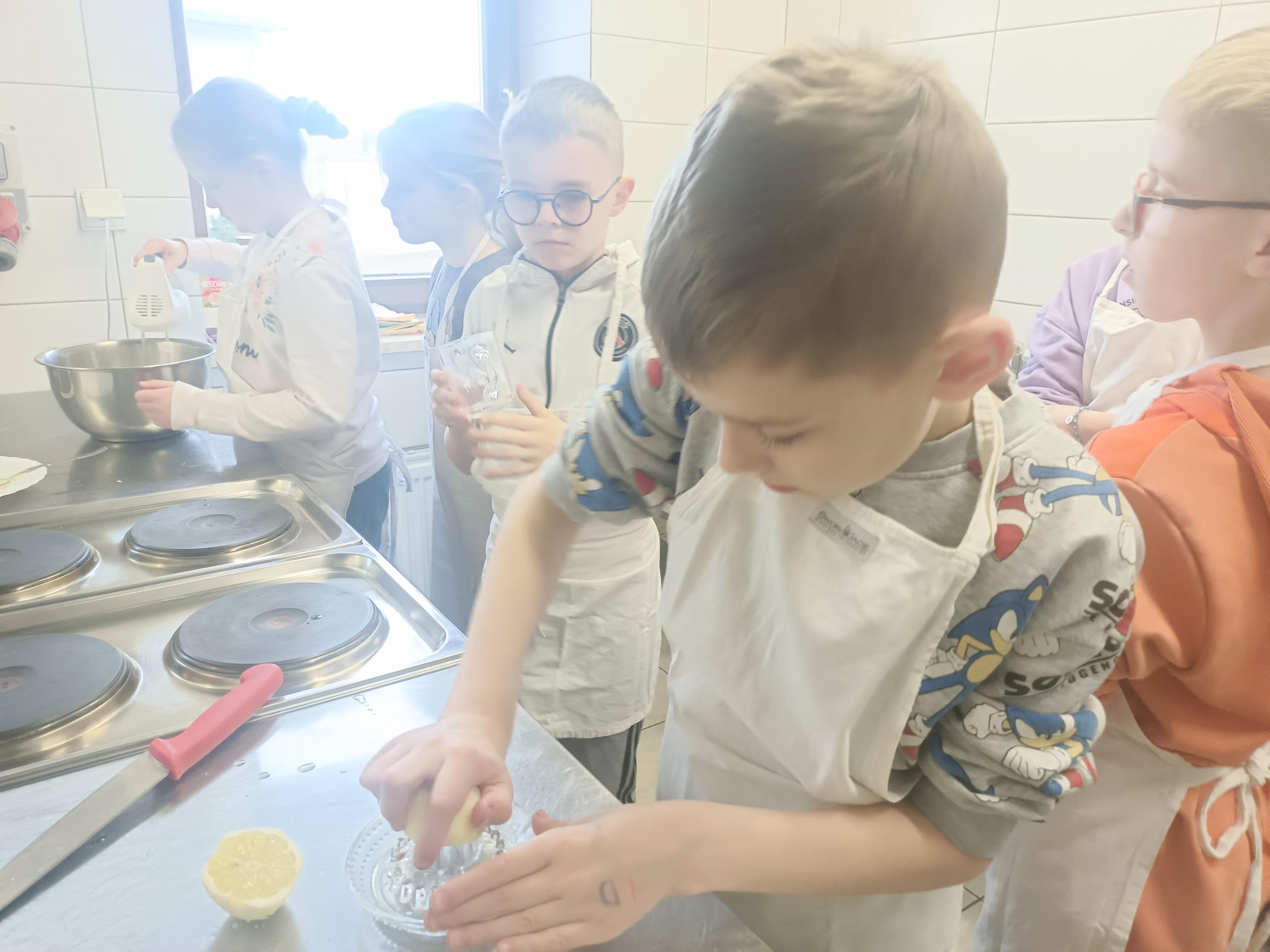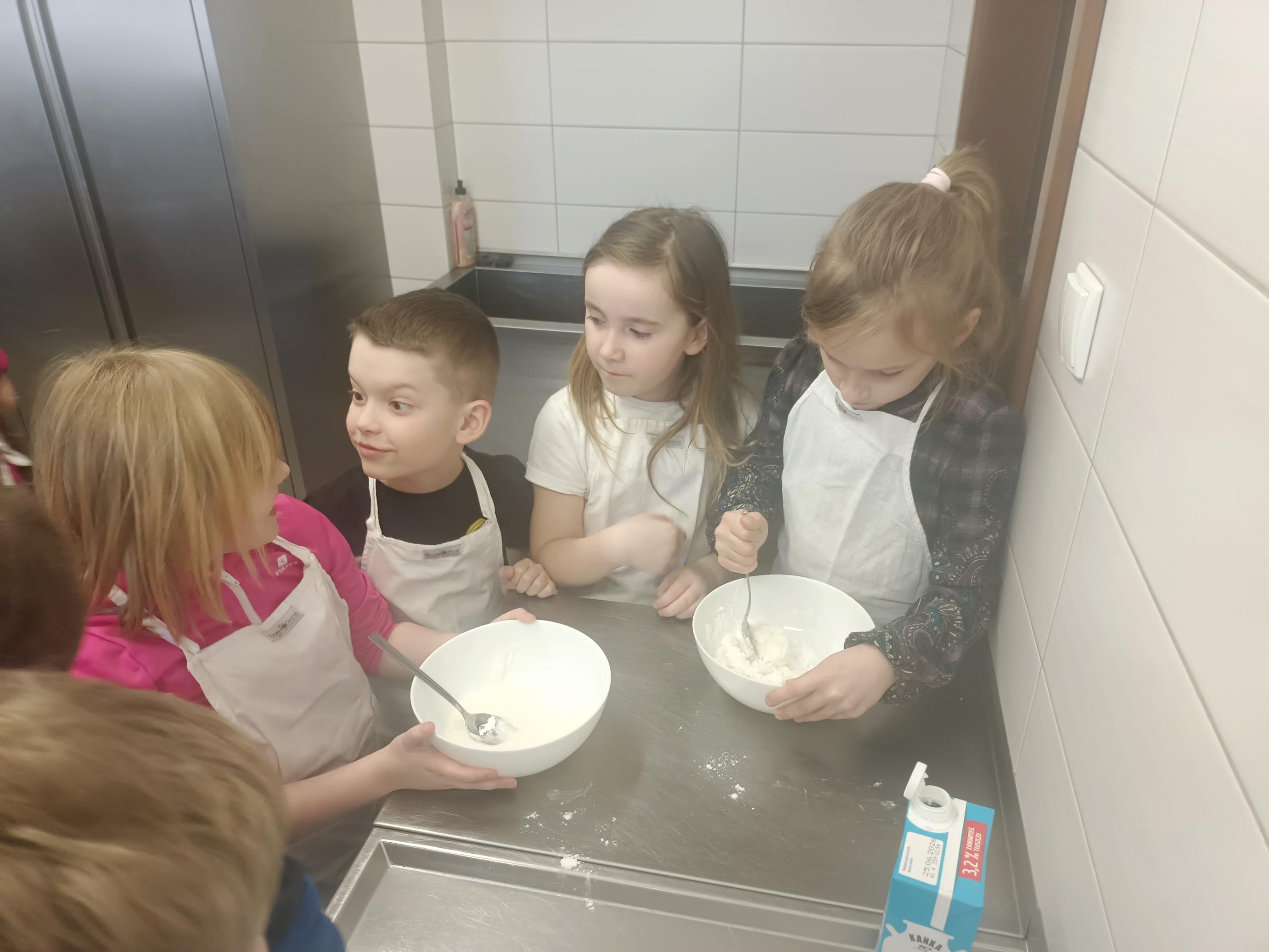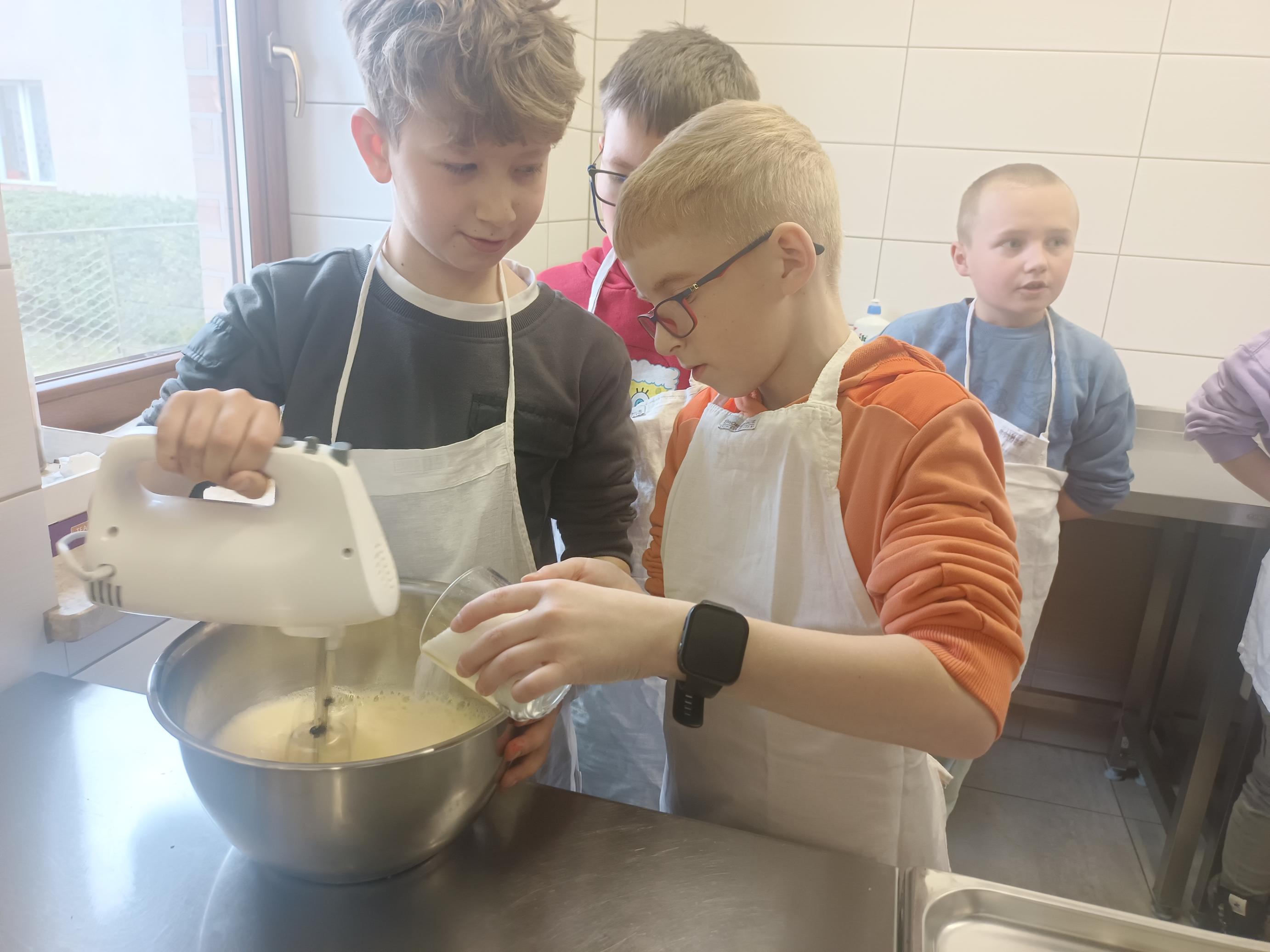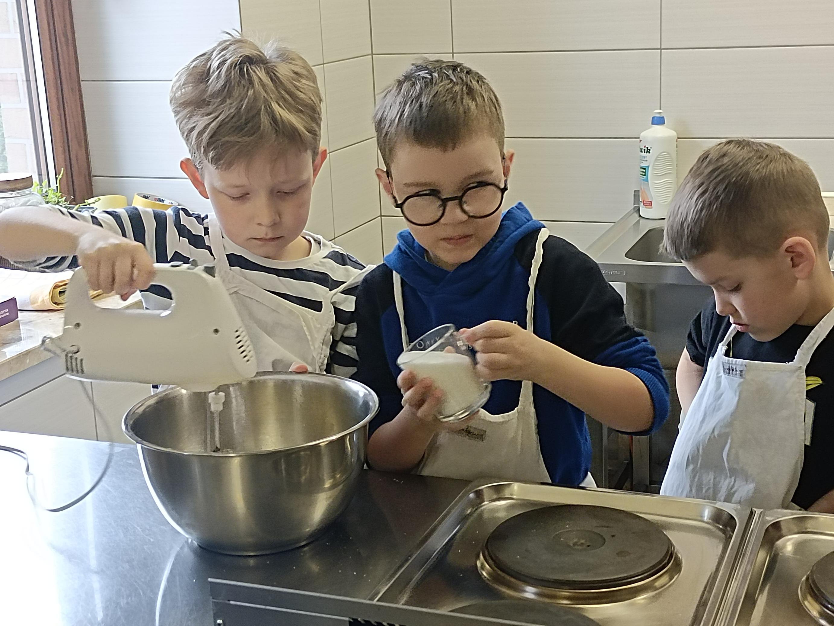 W czwartek, 26 marca, uczniowie klas I–III przenieśli się do wyjątkowej, pachnącej świętami pracowni małych cukierników. W ramach przygotowań do Wielkanocy piekli świąteczne babeczki. Z ogromnym zaangażowaniem odmierzali składniki, mieszali ciasto i z niecierpliwością zaglądali do piekarnika, czekając na swoje wypieki. Gdy babeczki nabrały złocistego koloru, rozpoczęła się najbardziej twórcza część zajęć – dekorowanie. Na stołach pojawiły się kolorowe lukry, posypki i wiosenne motywy. Każda babeczka stała się małym dziełem sztuki – pełnym barw, fantazji i dziecięcej radości. W powietrzu unosił się zapach słodkości, a pracownię wypełnił śmiech, rozmowy i prawdziwie świąteczna atmosfera.