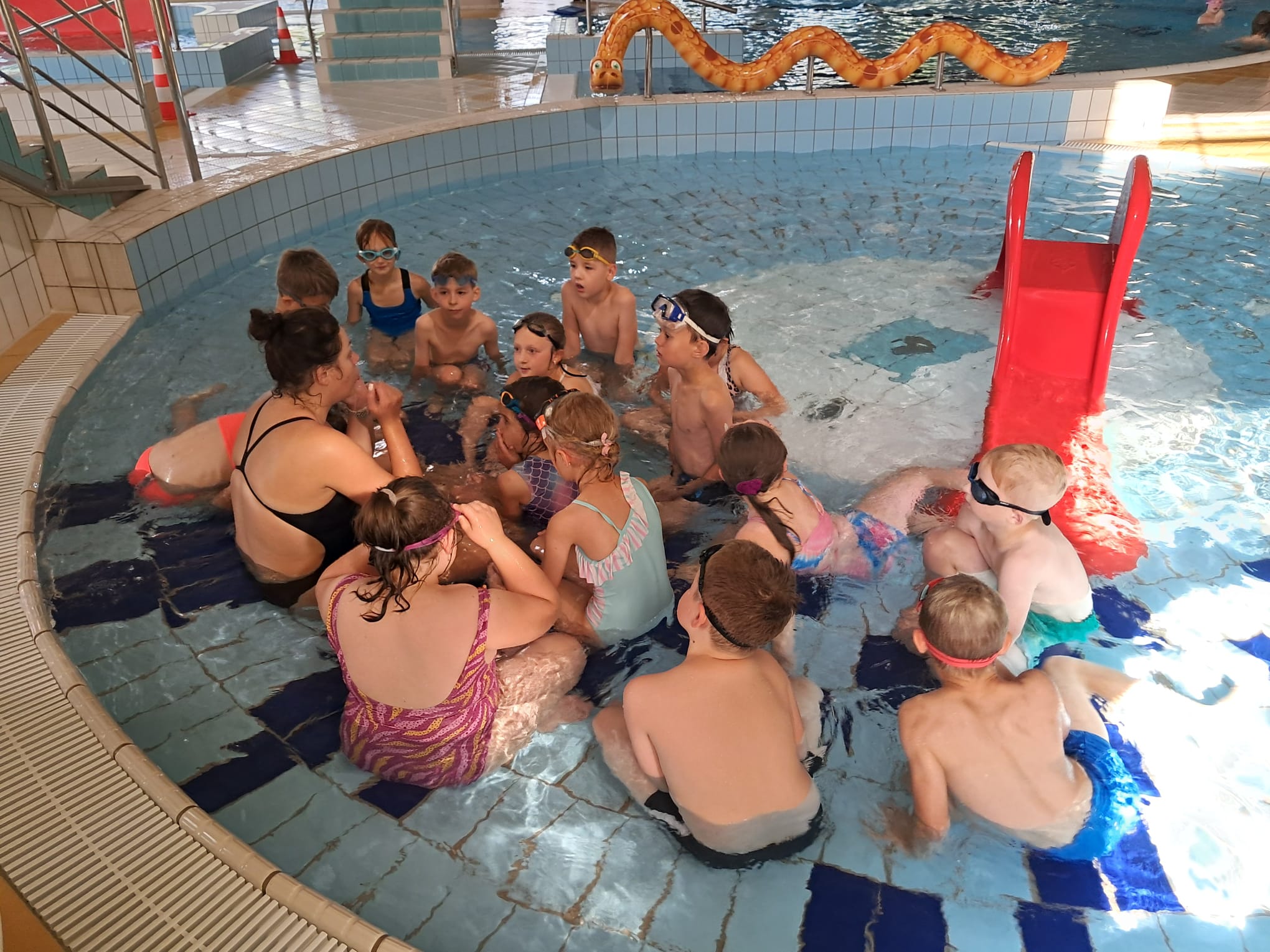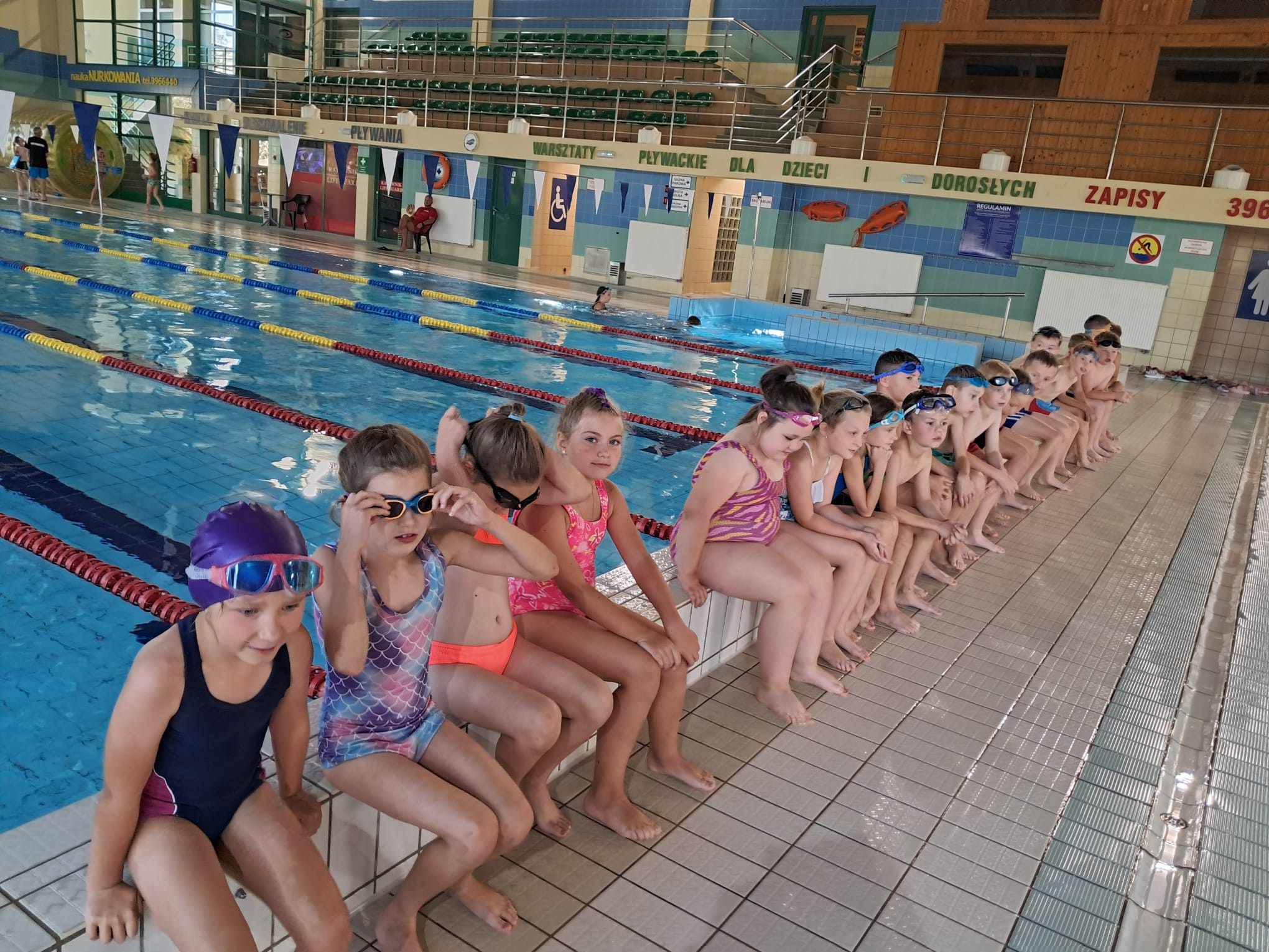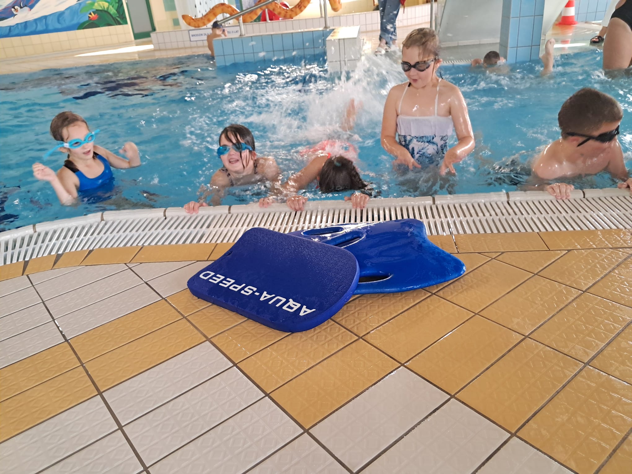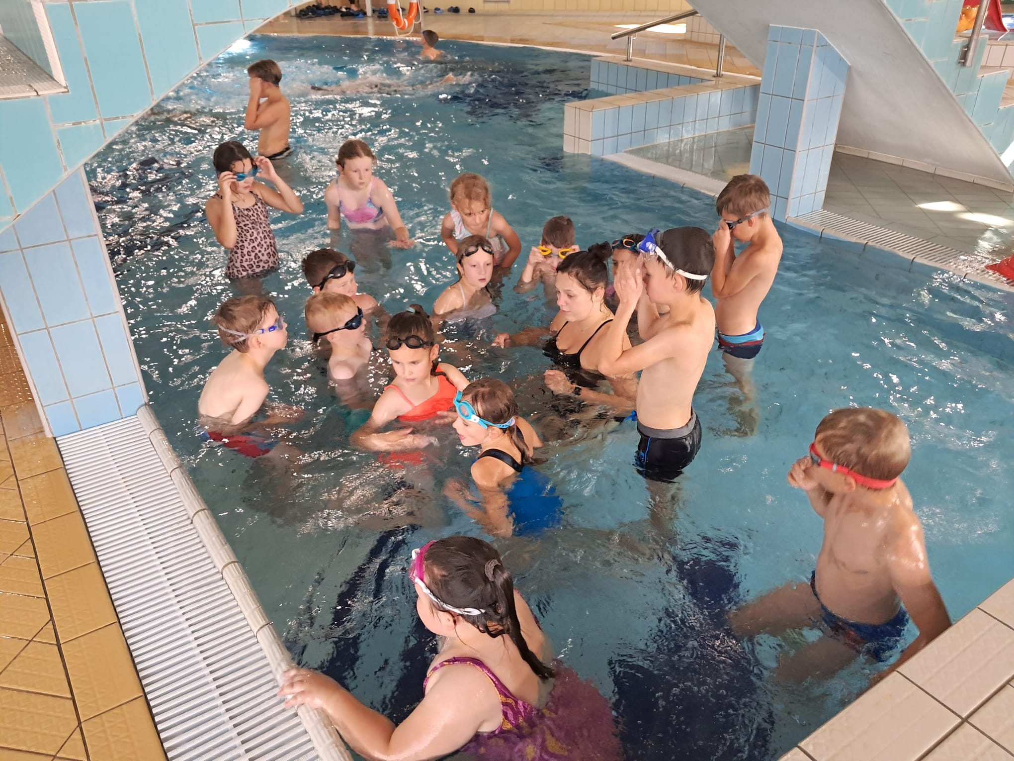 Dnia 01.10.2025r. uczniowie klas II i III rozpoczęli cykliczne wyjazdy na basen do Chojnic. Przez 10 tyg.pod czujnym okiem instruktorów będą uczyły się i doskonaliły technikę pływania. Zajęcia w wodzie bardzo cieszą naszych uczniów. Mają one na celu nauczyć dzieci pływać, ale również rozwijają psychomotorykę, korygują wady postawy, a także ukazują możliwości aktywnego spędzania wolnego czasu jak również uczą bezpiecznego zachowania w wodzie.