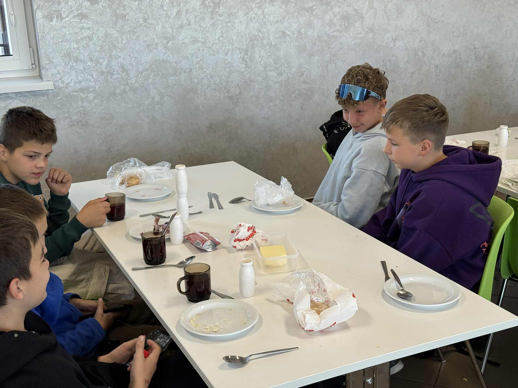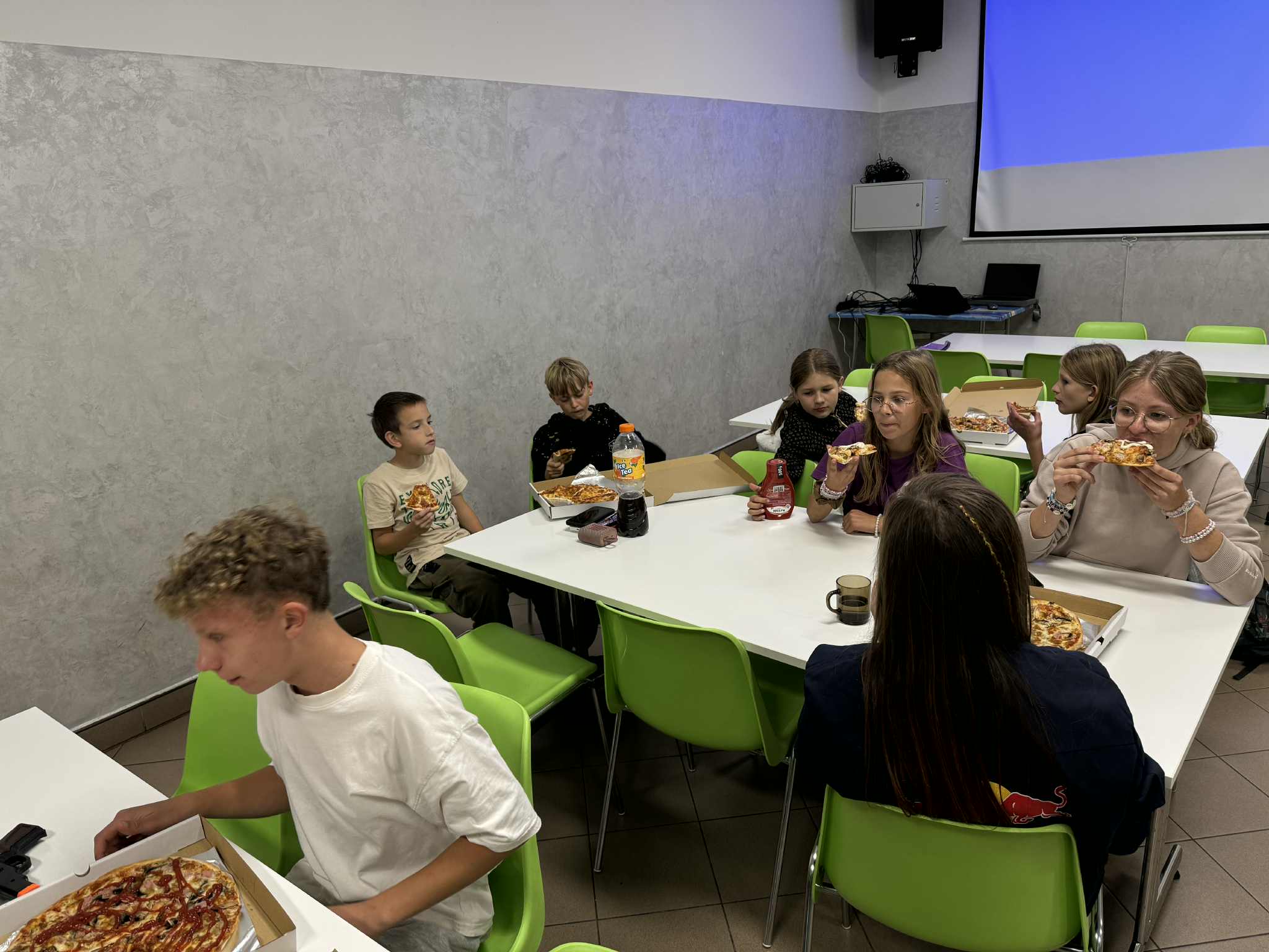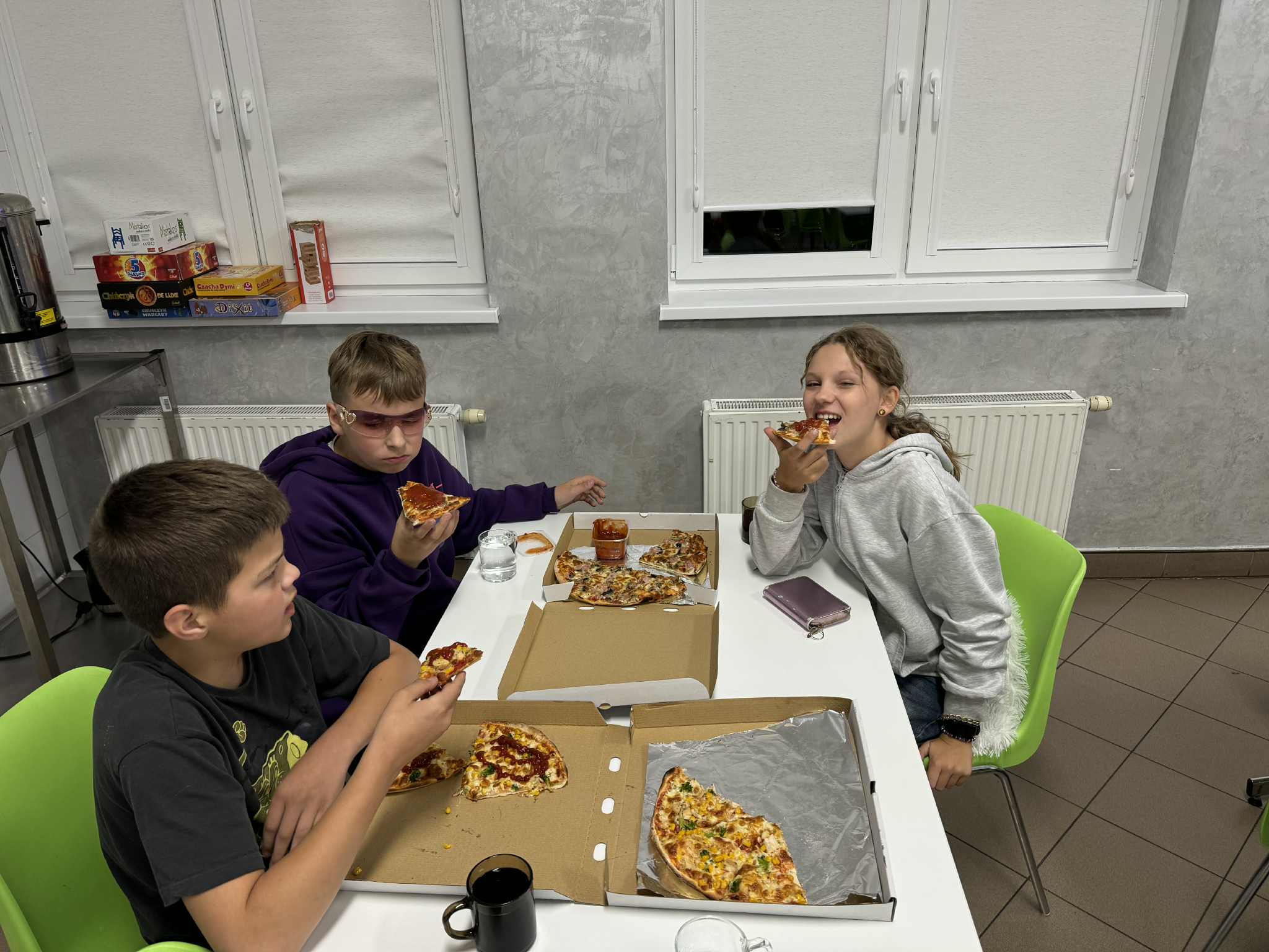 Spotkanie rozpoczęliśmy o godzinie 17.00. Już pół godziny później ruszyliśmy na podchody, które dostarczyły nam sporo emocji. Po powrocie do szkoły czekały nas kolejne atrakcje – najpierw klasyczna zabawa w chowanego, a potem wspólna kolacja przy pizzy. Kolejnym punktem było krótkie wyjście do sklepu, podczas którego zaopatrzyliśmy się w przekąski i produkty potrzebne do przygotowania śniadania.