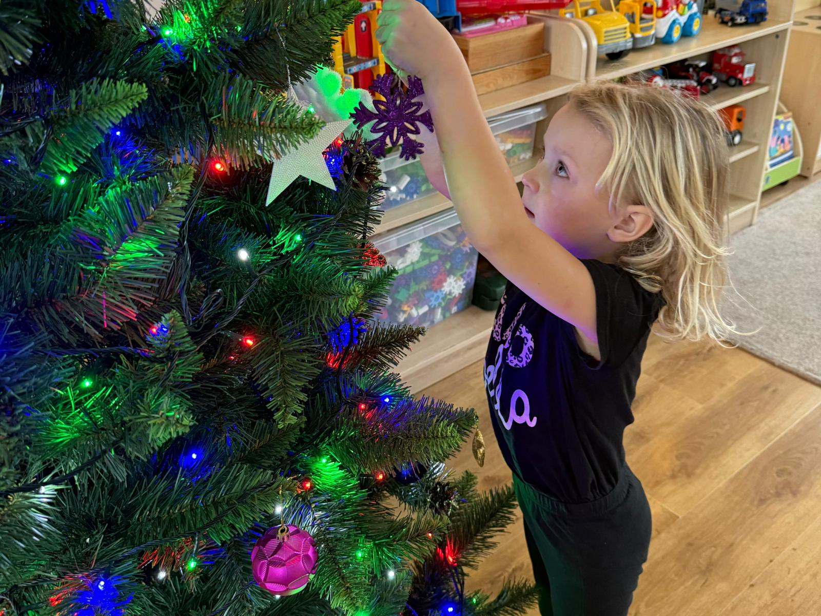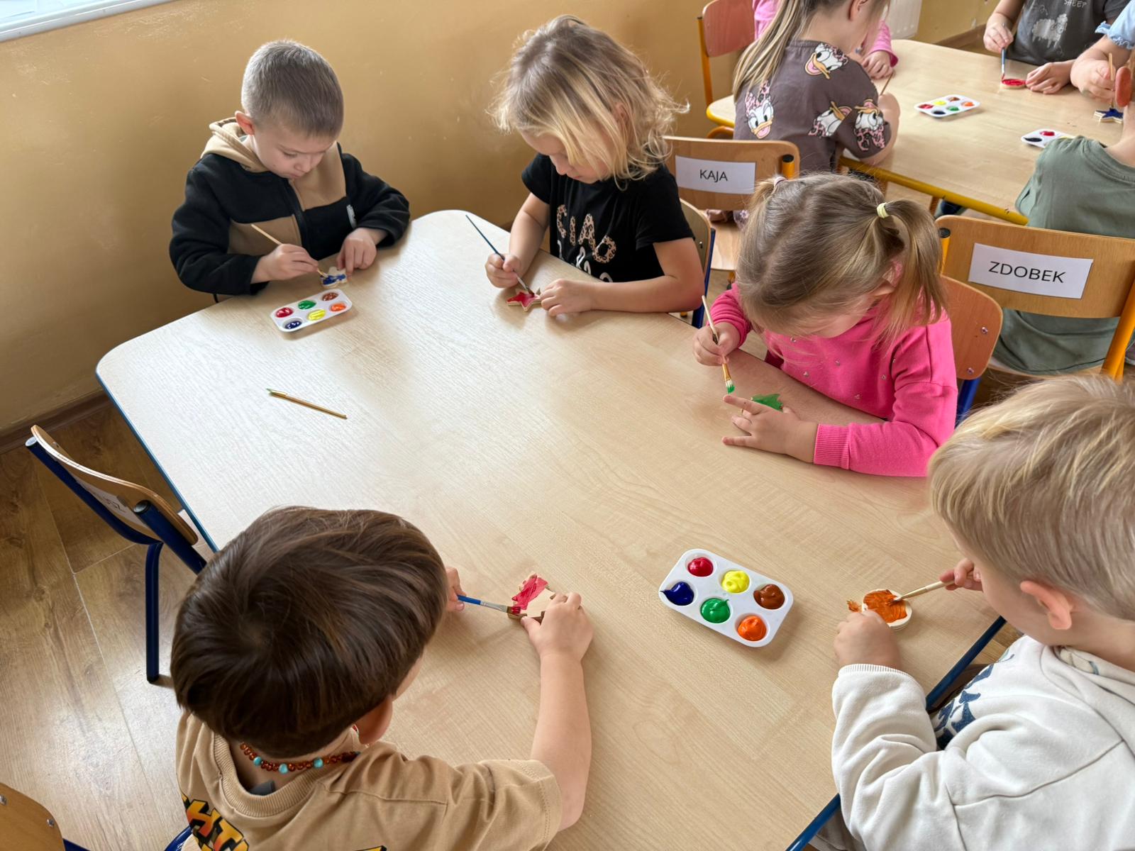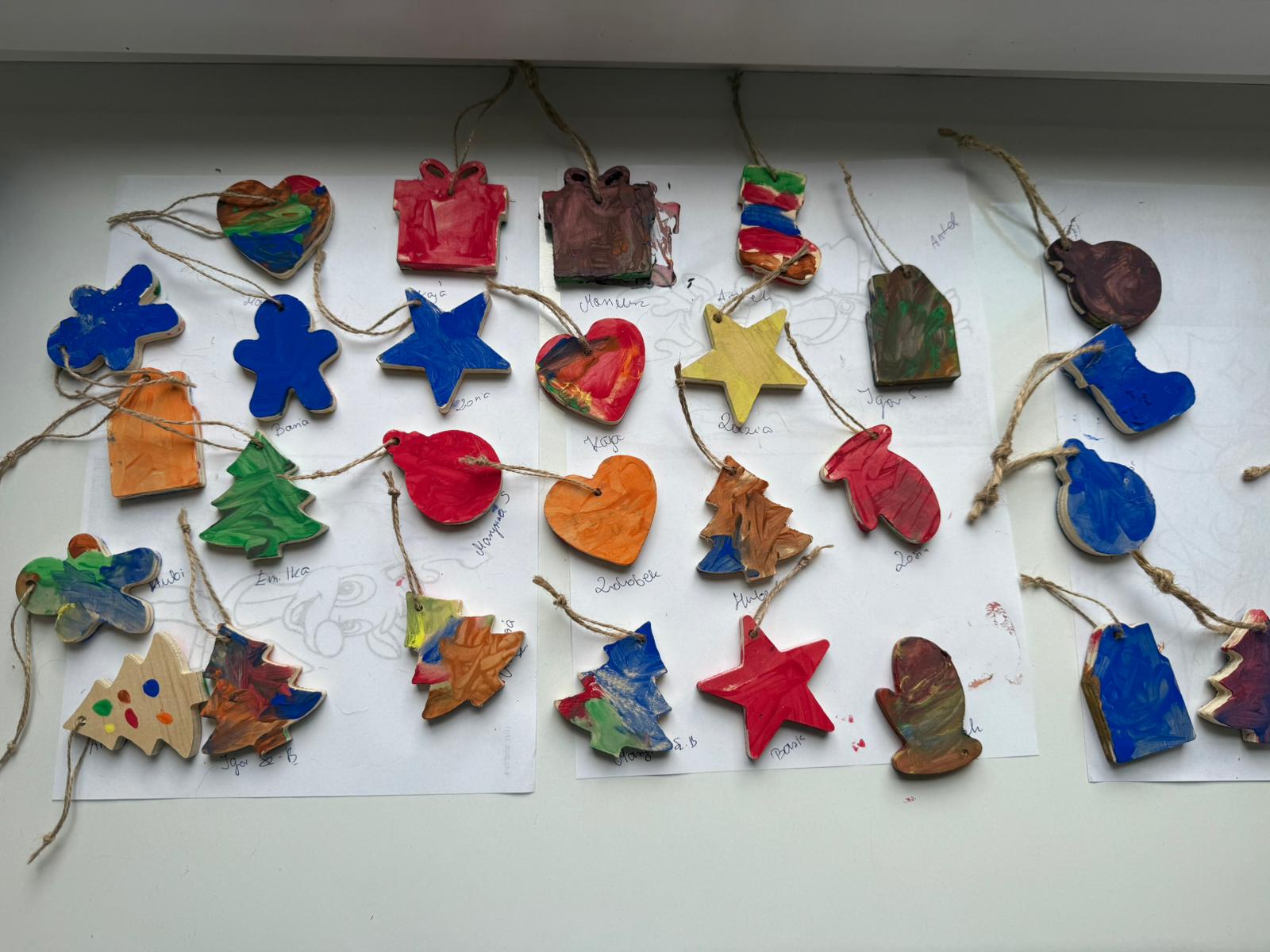 W okresie przedświątecznym w naszym przedszkolu nie mogło zabraknąć choinki. To wyjątkowy czas pełen radości, zapachu świąt i wspólnego tworzenia. Nasze maluchy z ogromnym zaangażowaniem samodzielnie przygotowały ozdoby, którymi udekorowały swoje drzewko. Dzieci wykonały kolorowe bombki, malując drewniane zawieszki, aby następnie z dumą zawiesić je na choince. Wspólne ubieranie choinki było wspaniałą okazją do rozwijania kreatywności, zdolności manualnych oraz budowania świątecznej atmosfery pełnej uśmiechów i ciepła.