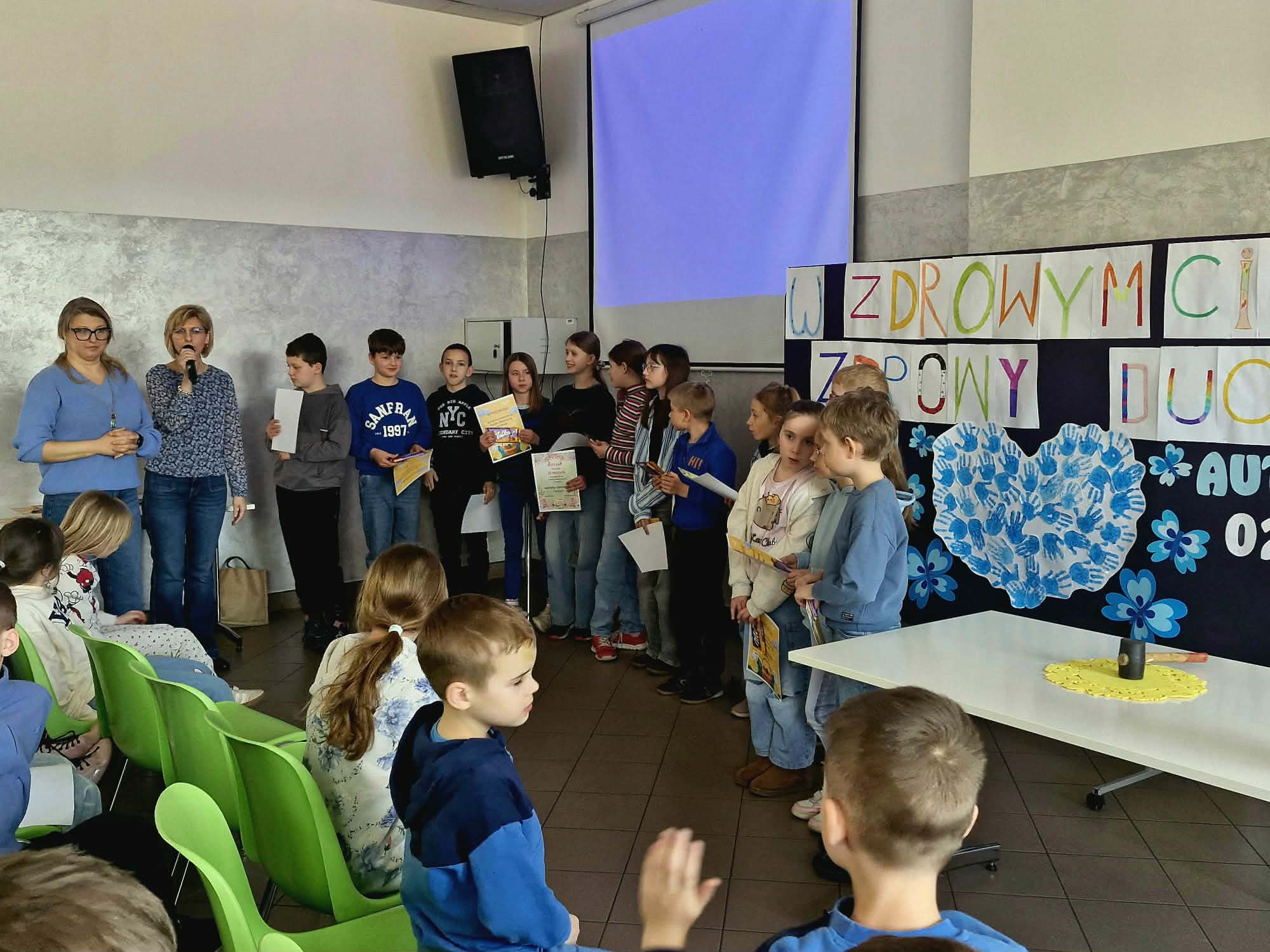 Apel rozpoczął się krótkim wprowadzeniem, podczas którego wyjaśniono, czym jest autyzm oraz z jakimi trudnościami mogą mierzyć się osoby nim dotknięte. Następnie pani Pedagog zaprezentowała prezentację multimedialną dotyczącą problemów i trudności osób z autyzmem. Po prezentacji uczniowie mogli doświadczyć pewnych trudności przygotowanych przez Pedagoga i przekonać się, że osoby z autyzmem nie są wstanie wykonać prostych czynności. W trakcie spotkania podkreślono, jak ważne są życzliwość, cierpliwość i otwartość wobec innych. Pod koniec spotkania pani Psycholog wraz z klasą 6 przedstawiła scenki dotyczące zdrowego odżywiania i aktywności fizycznej. Apel był wartościową lekcją dla całej społeczności szkolnej i skłonił do refleksji nad tym, jak ważna jest akceptacja, wzajemny szacunek i dbałość o własne zdrowie.