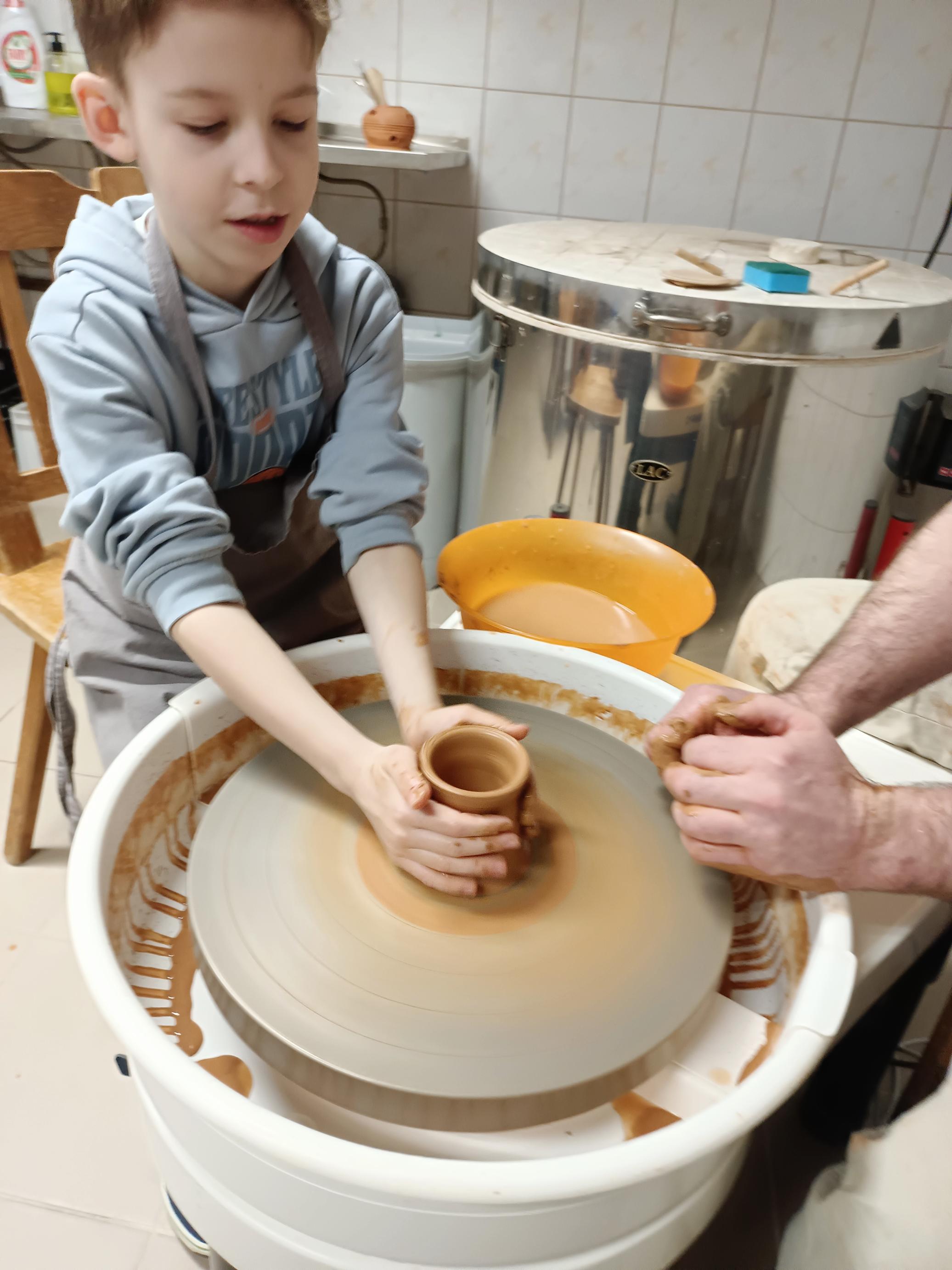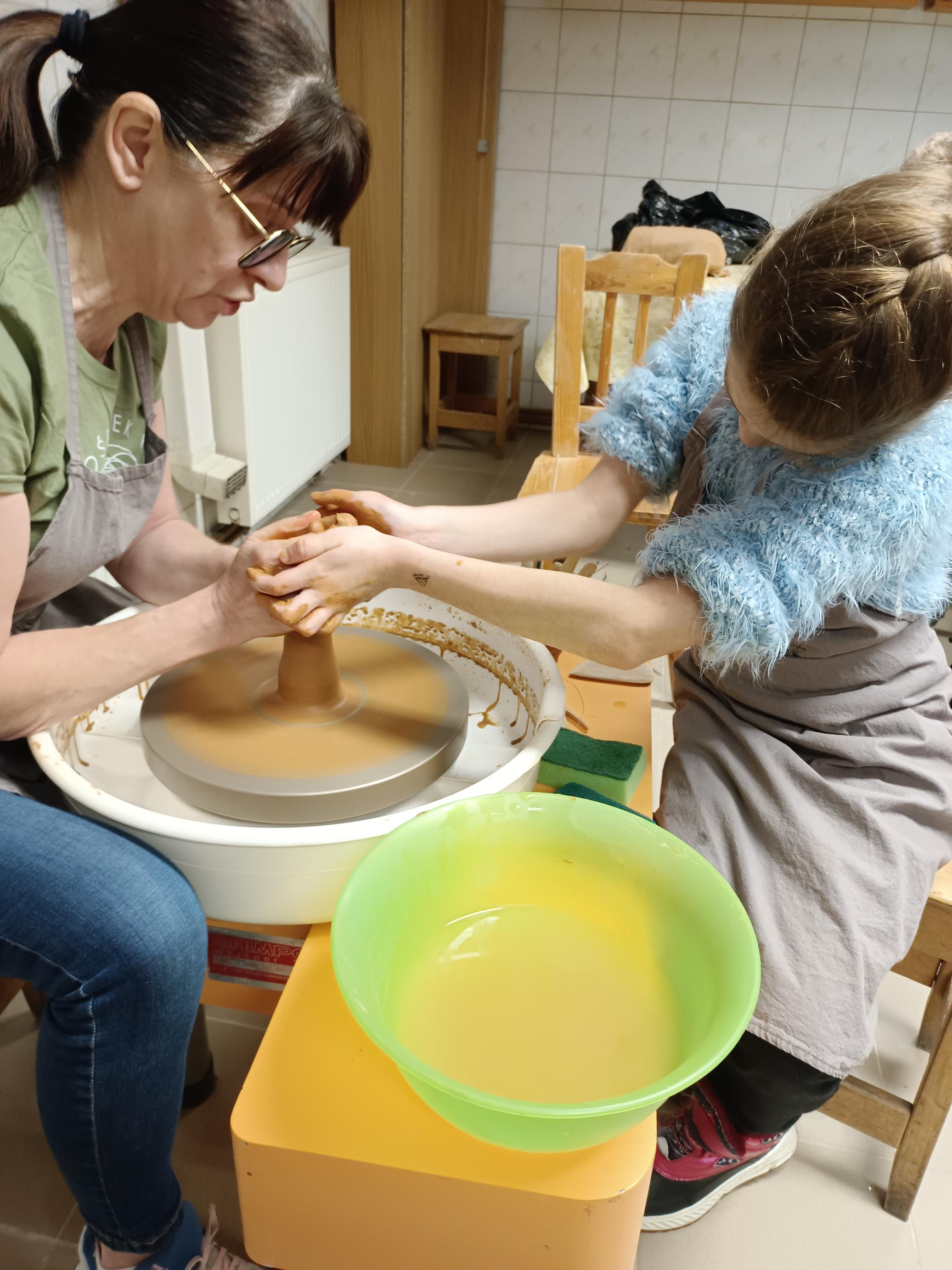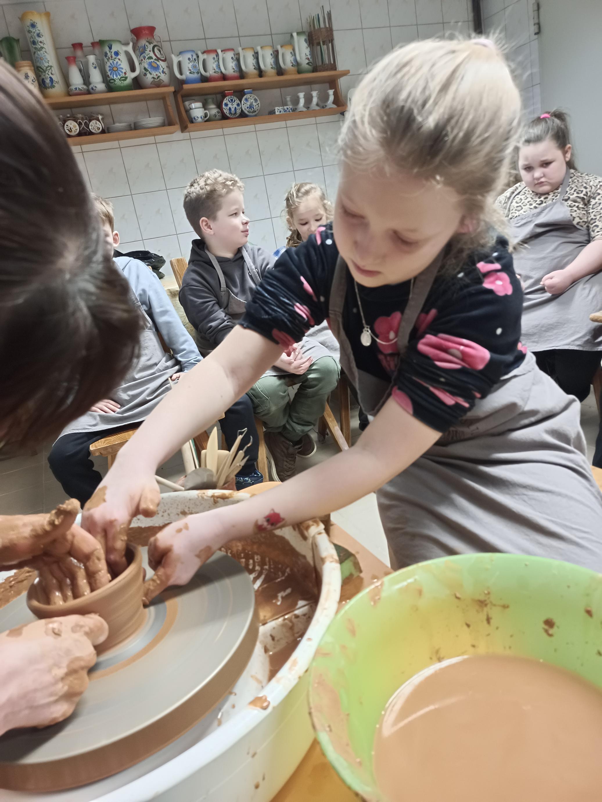 Najważniejszą częścią warsztatów była praktyczna praca z gliną. Pod czujnym okiem prowadzących uczniowie z dużym zaangażowaniem tworzyli własne naczynia. Dodatkowo podczas zajęć utrwalali słownictwo kaszubskie związane z garncarstwem, co pozwoliło połączyć naukę języka z działaniem.