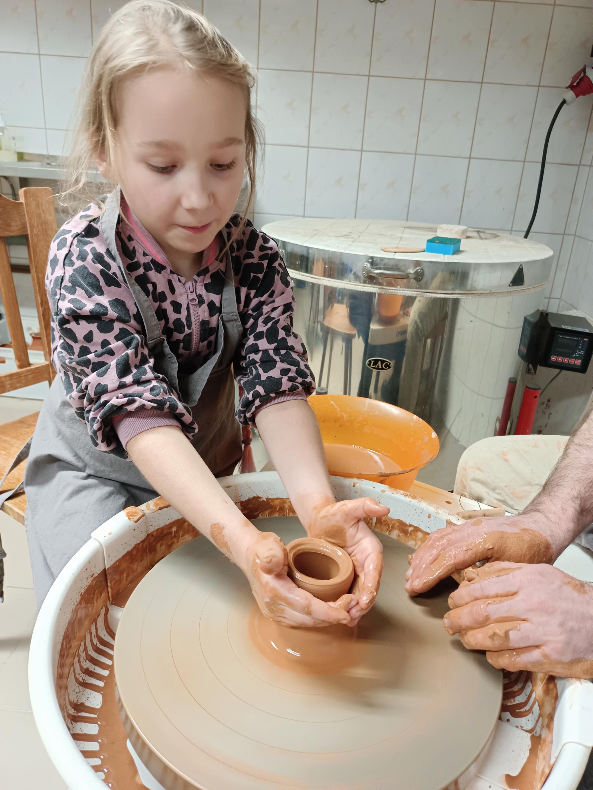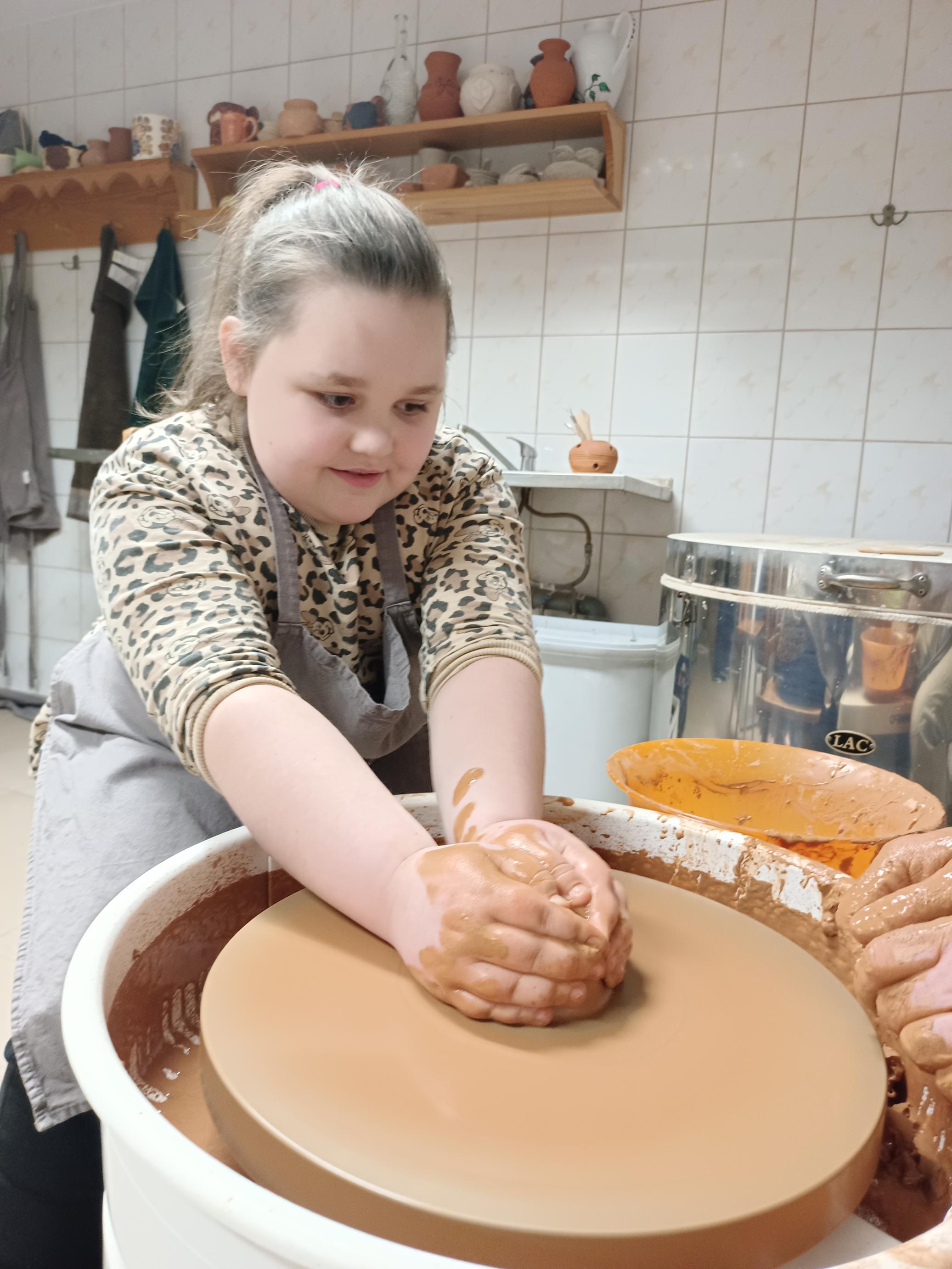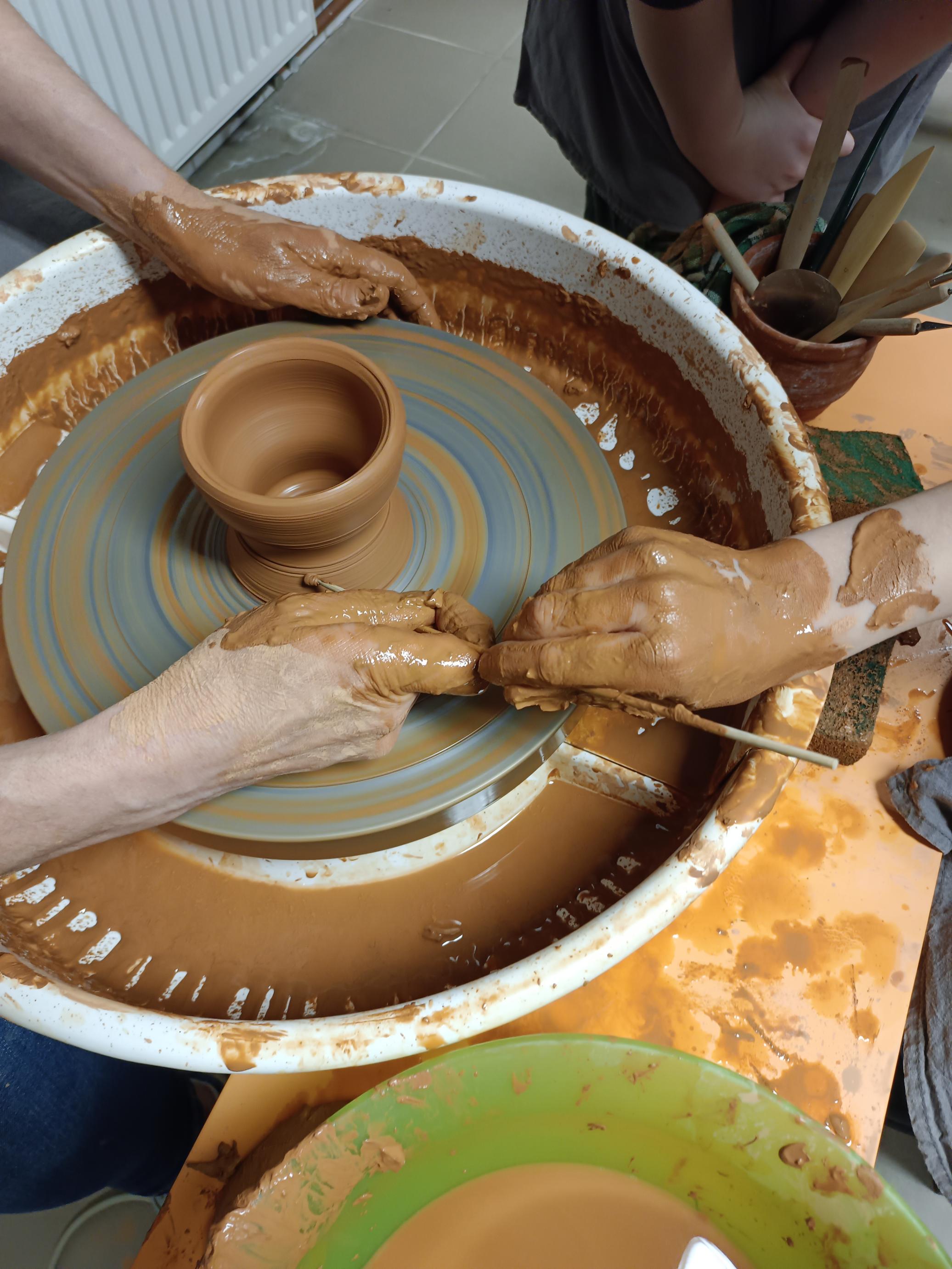 Najważniejszą częścią warsztatów była praktyczna praca z gliną. Pod czujnym okiem prowadzących uczniowie z dużym zaangażowaniem tworzyli własne naczynia. Dodatkowo podczas zajęć utrwalali słownictwo kaszubskie związane z garncarstwem, co pozwoliło połączyć naukę języka z działaniem.