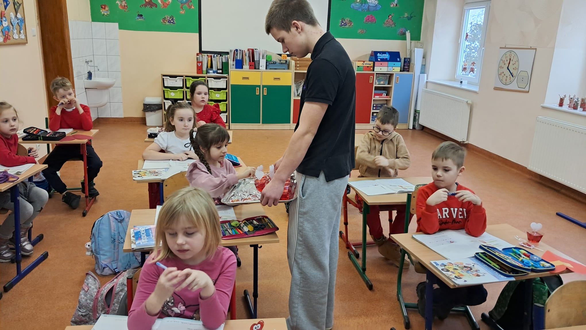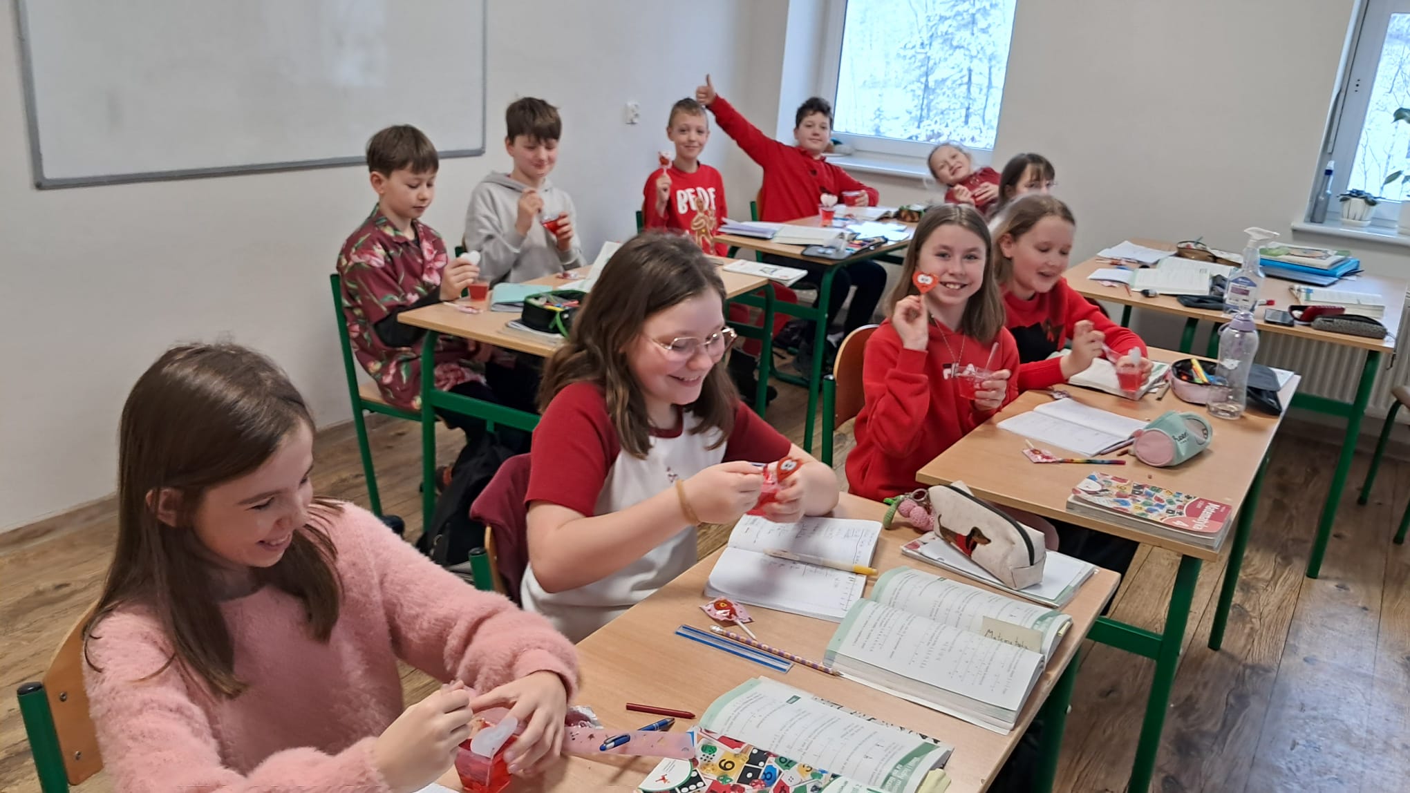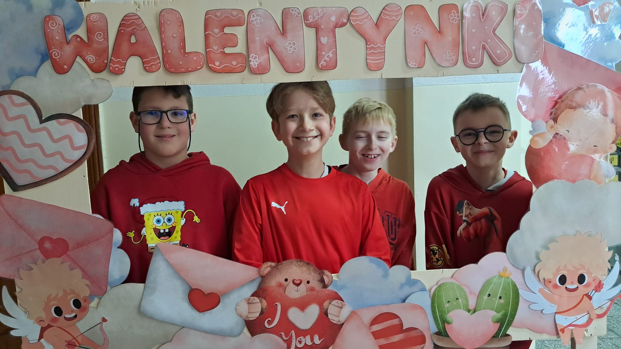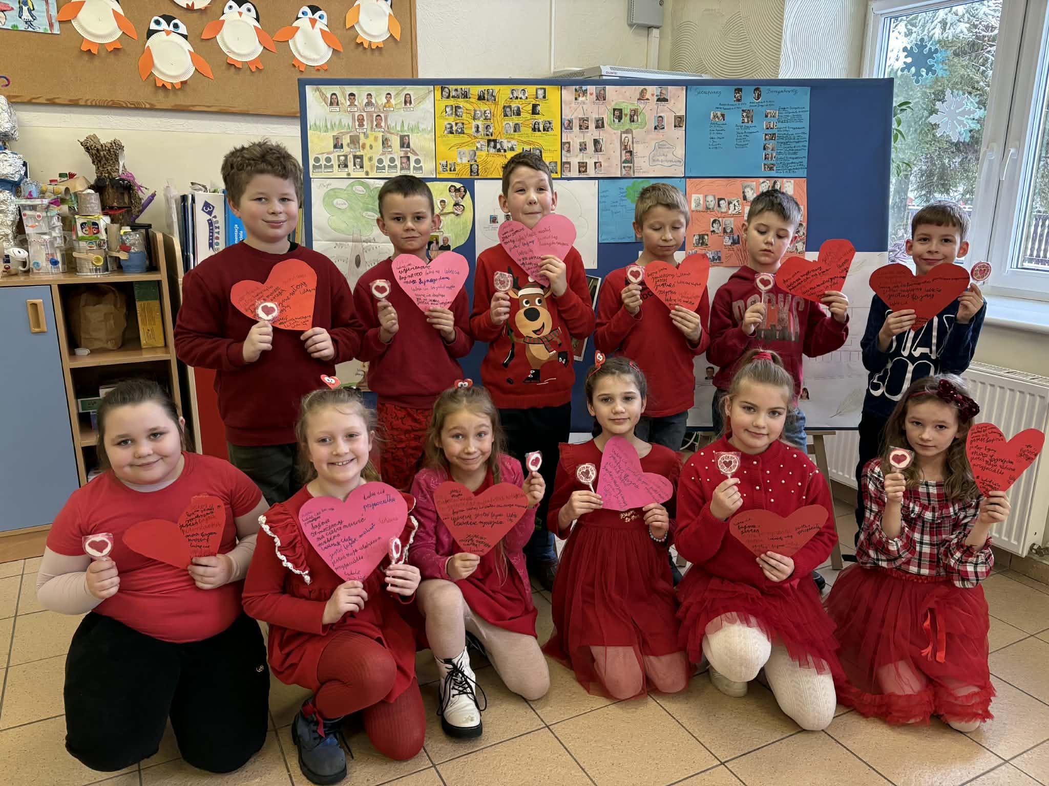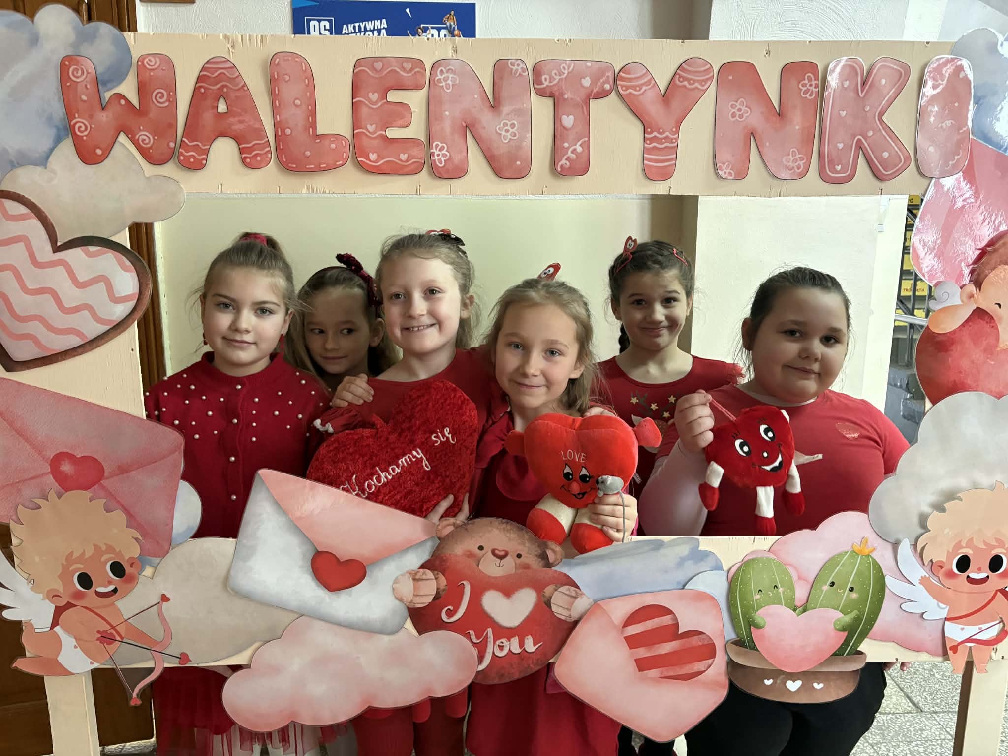 Walentynki to dzień miłości i przyjaźni. Dla uczniów naszej szkoły ten dzień stał się okazją do wspólnej zabawy i pokazania jak dobrze i wesoło jest nam razem. Tego dnia wśród całej społeczności szkolnej królował kolor czerwony, od samego rana była czynna walentynkowa poczta. Również każdy uczeń oraz pracownik szkoły został obdarowany walentynkową galaretką, które przygotowali Samorząd Uczniowski wraz z Wolontariatem Szkolnym. Uczniowie mieli także okazję napisać sobie jakieś miłe słowo na sercach, które każy miał przyklejone na plecach. Ta zabawa była świetną okazją do integracji wszystkich uczniów tych młodszych, ale także tych starszych. Zabawa była wyśmienita, a dowodem na to były uśmiechy i rozchodzący się śmiech na korytarzu szkolnym. Dziękujemy Radzie Rodziców, która również osłodziła nam ten dzień poprzez ufundowanie lizaków-oczywiście w kształcie serca.