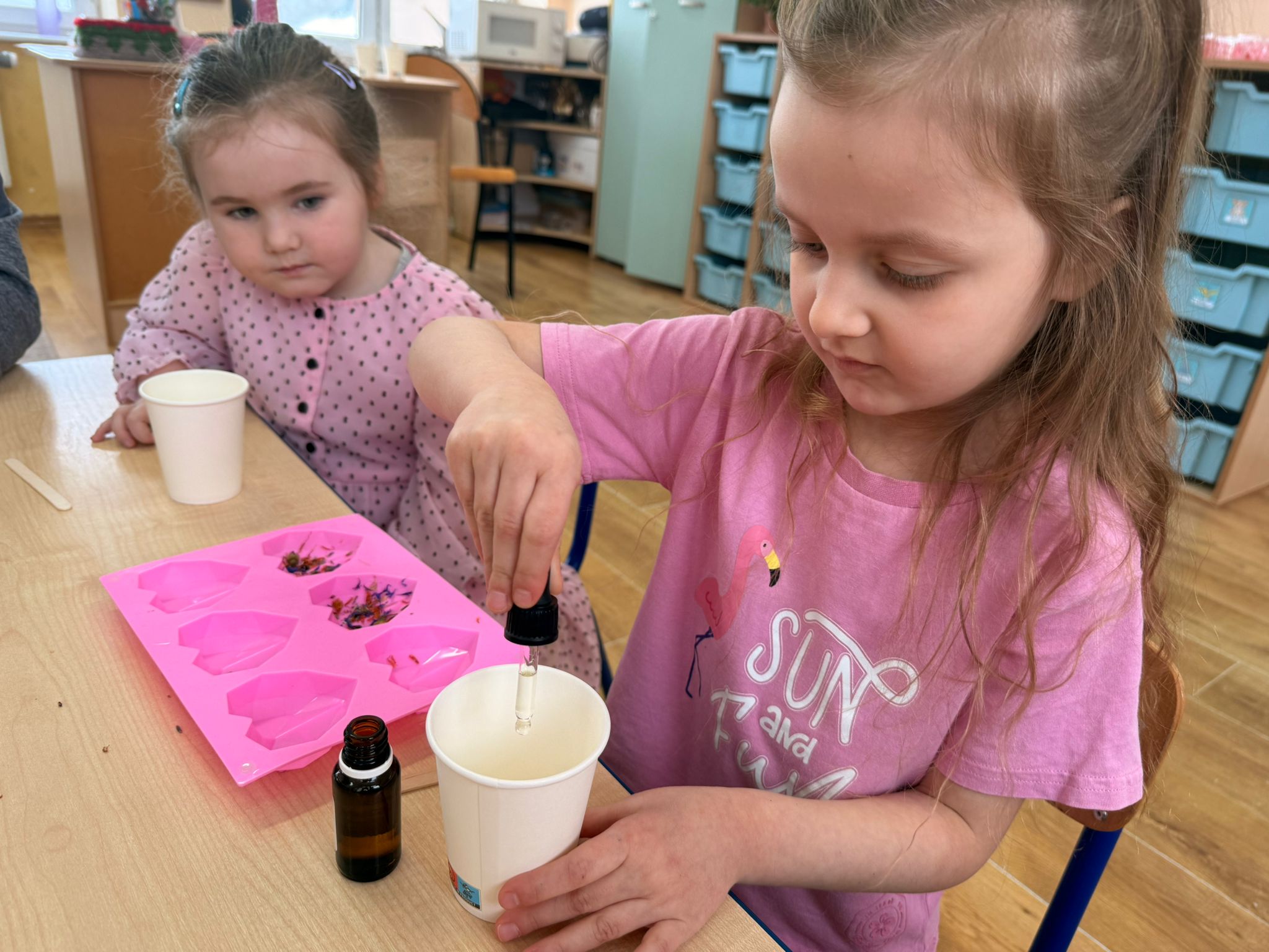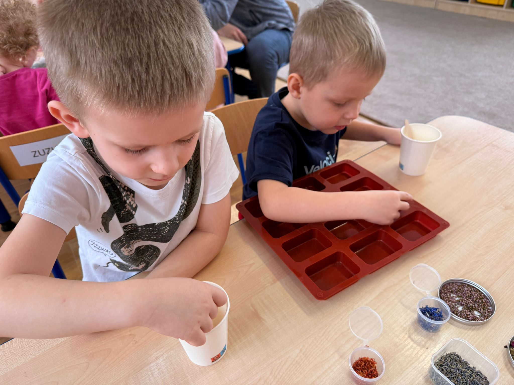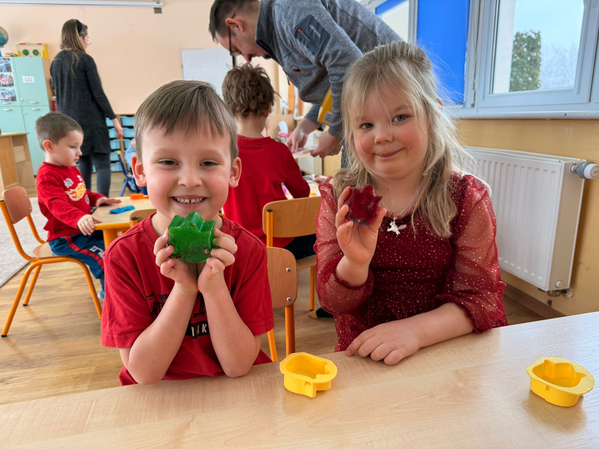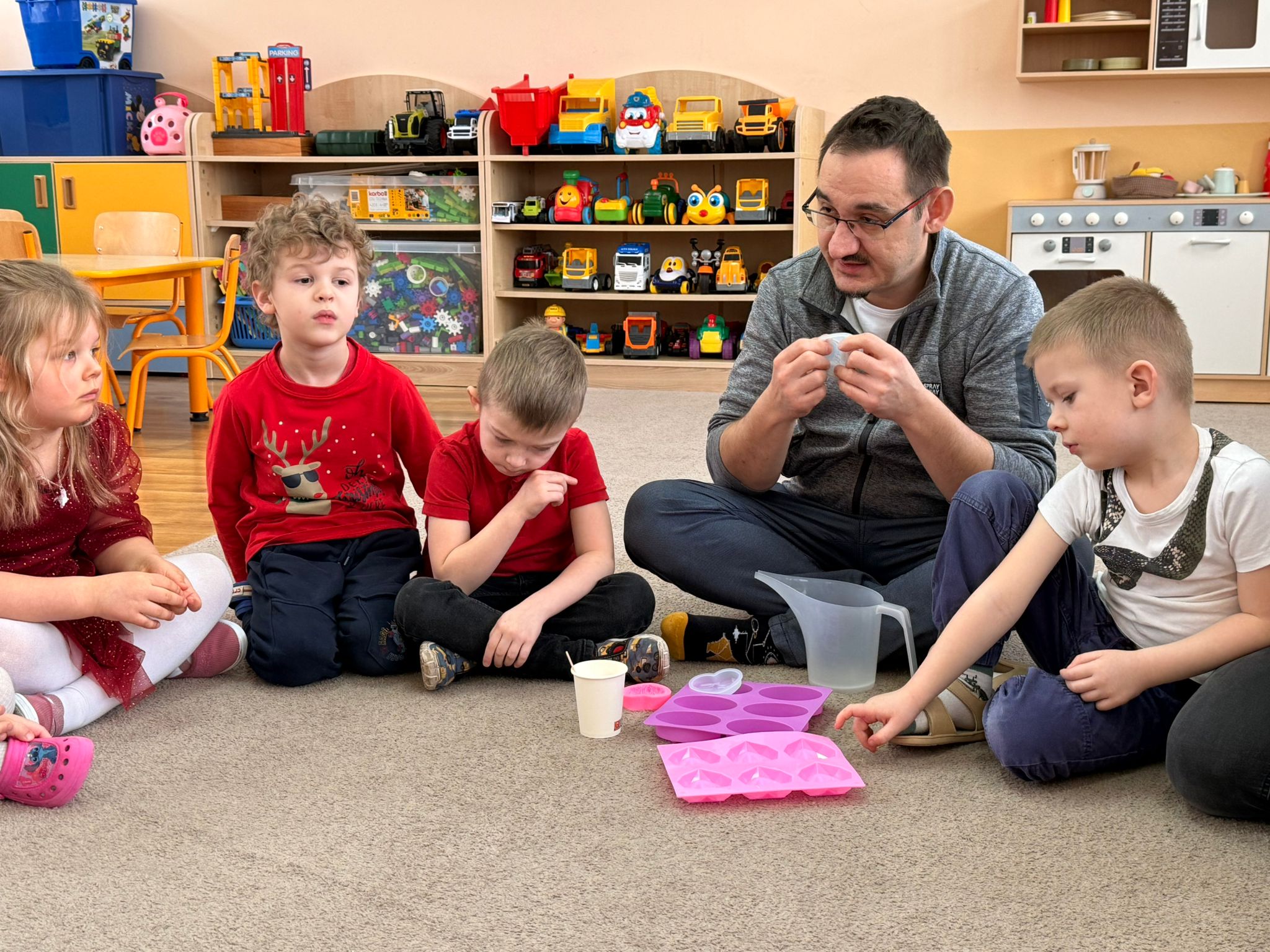Największą atrakcją tego dnia były jednak warsztaty robienia mydełek, które poprowadzili rodzice Antka - pani Honorata i pan Tomek Jakusz. Dzięki nim dzieci mogły przenieść się w świat zapachów, kolorów i twórczej zabawy.