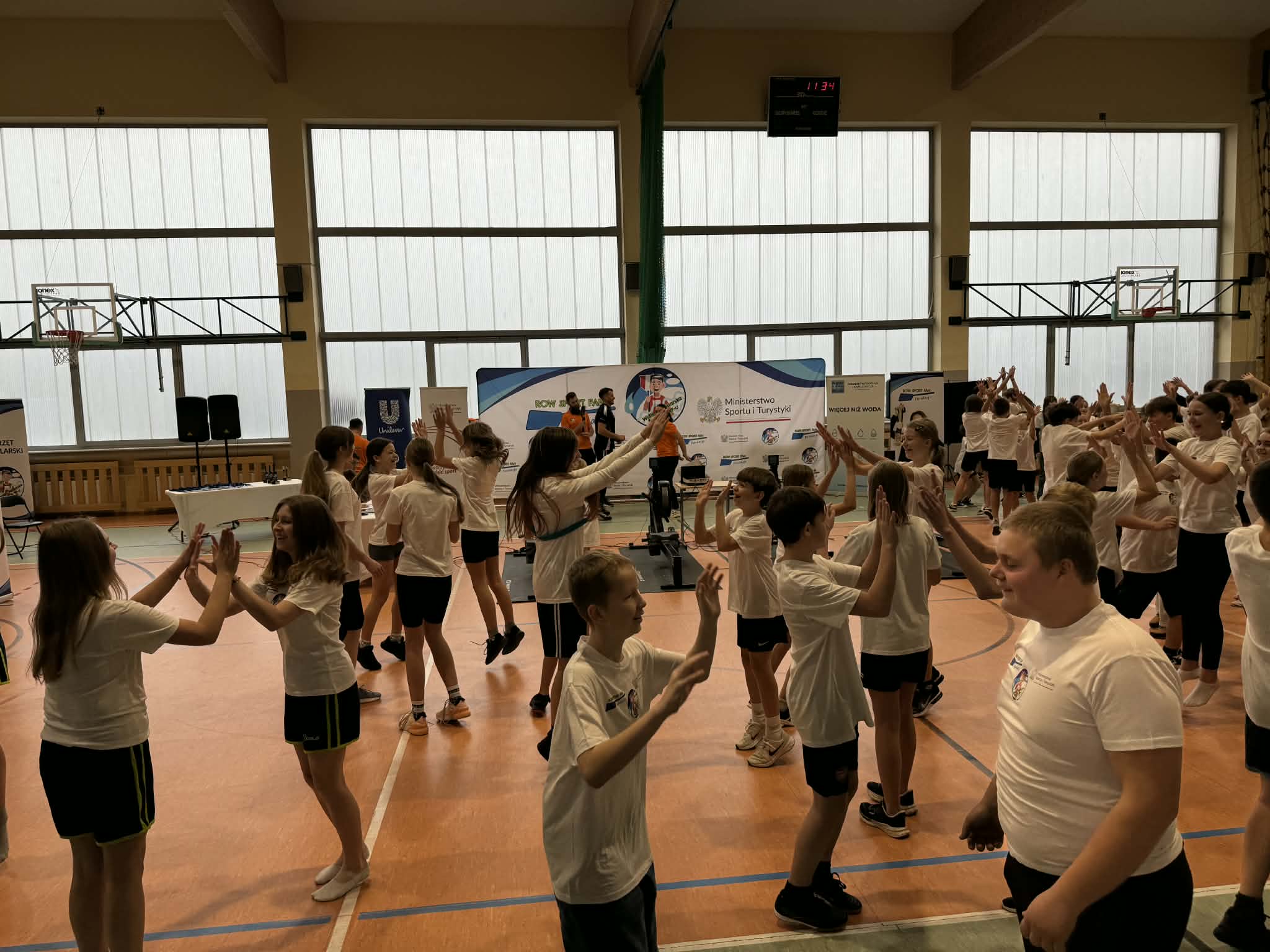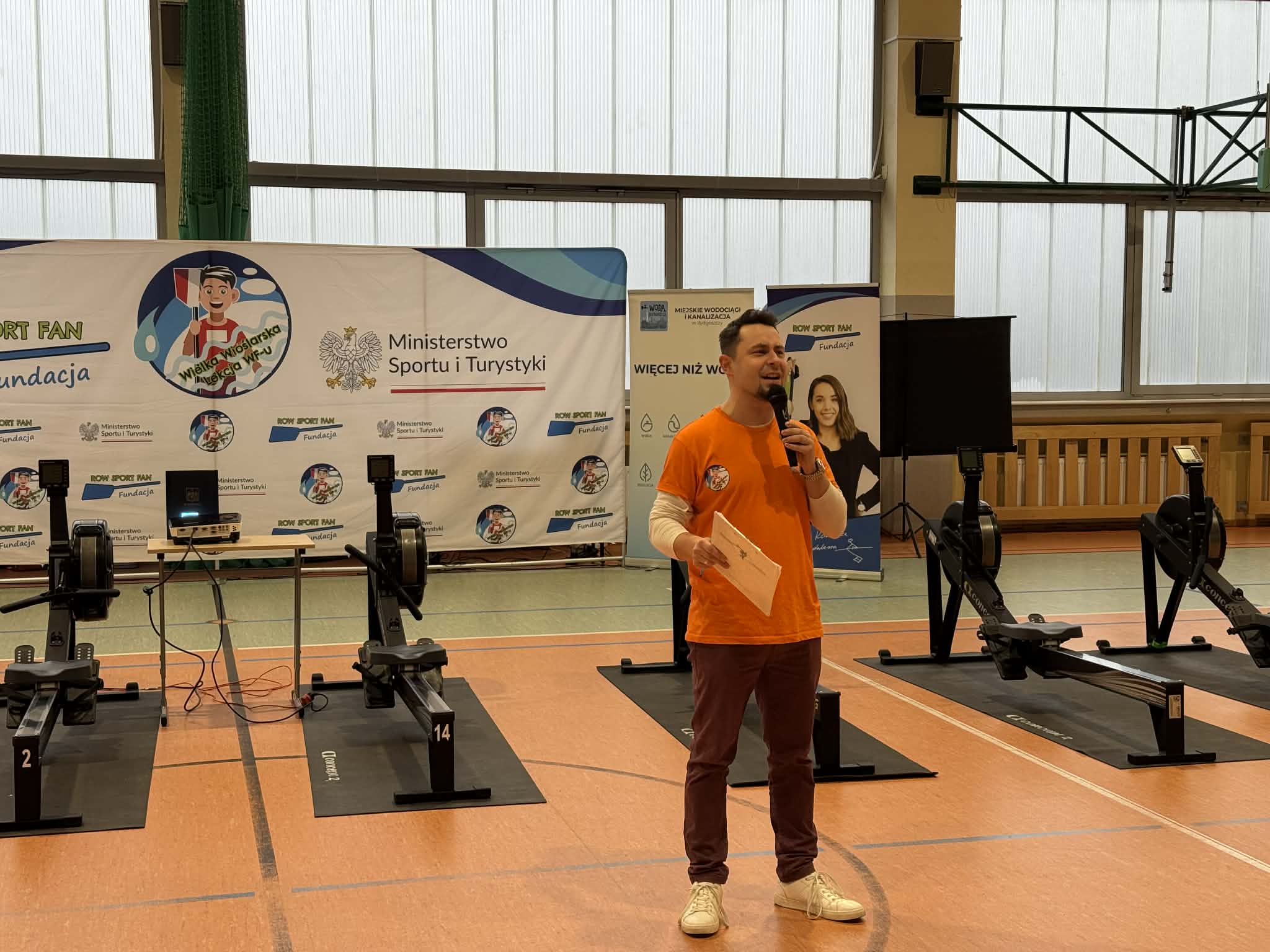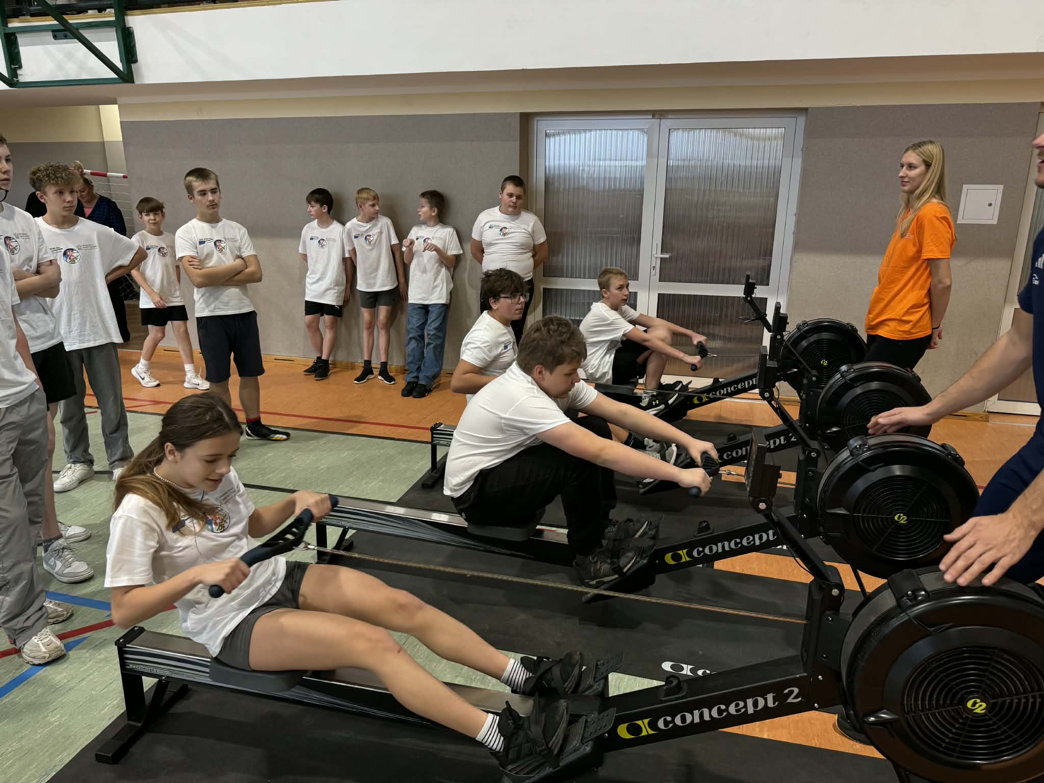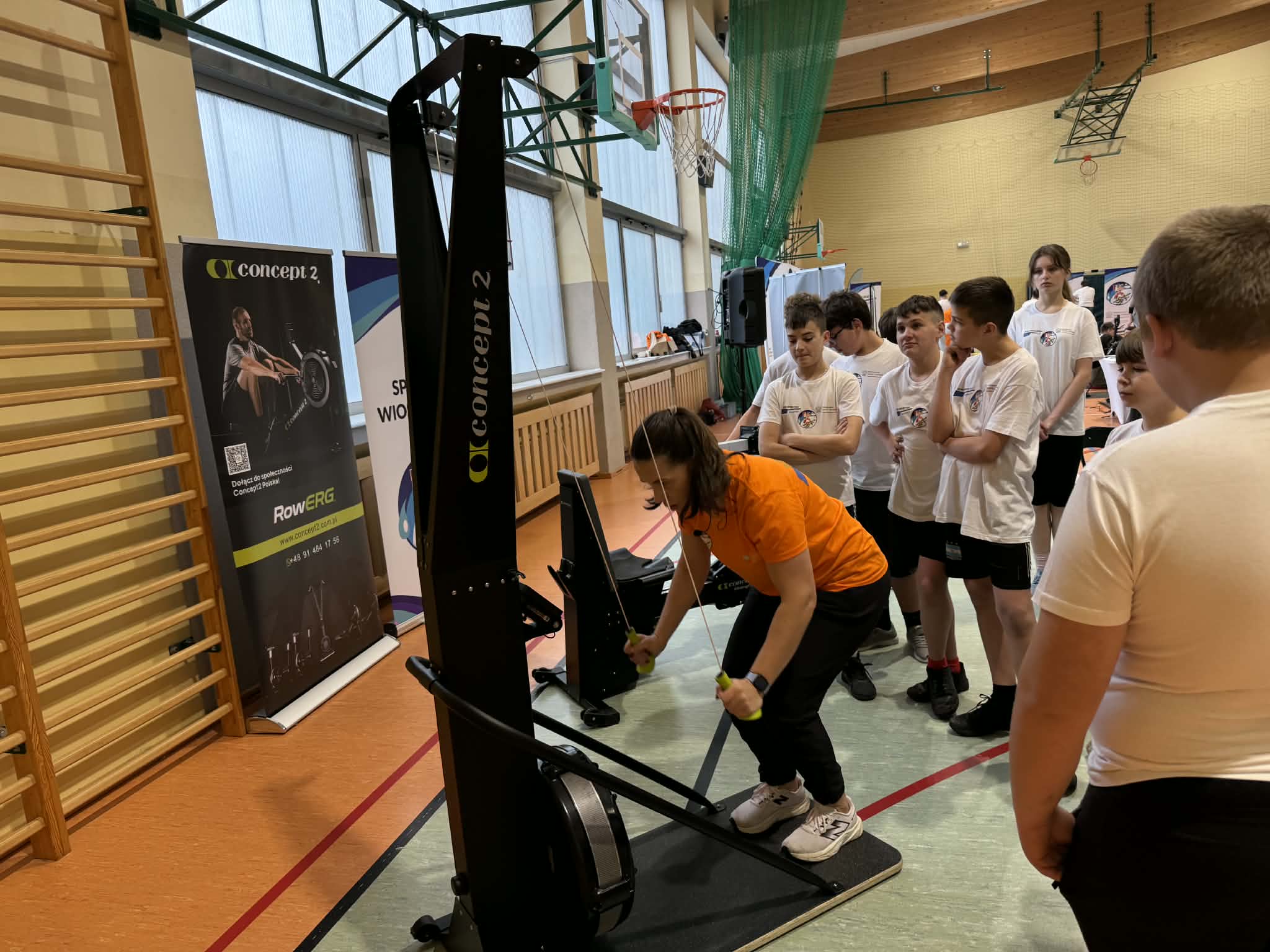 Zajęcia zorganizowano w formie pięciu stacji tematycznych, obejmujących m.in. ćwiczenia na rowerach stacjonarnych, stację ogólnorozwojową, prezentację łodzi wioślarskiej, naukę techniki wiosłowania oraz zagadnienia związane z edukacją żywieniową. Uczniowie chętnie i aktywnie uczestniczyli w zajęciach, wykazując się dużym zaangażowaniem.