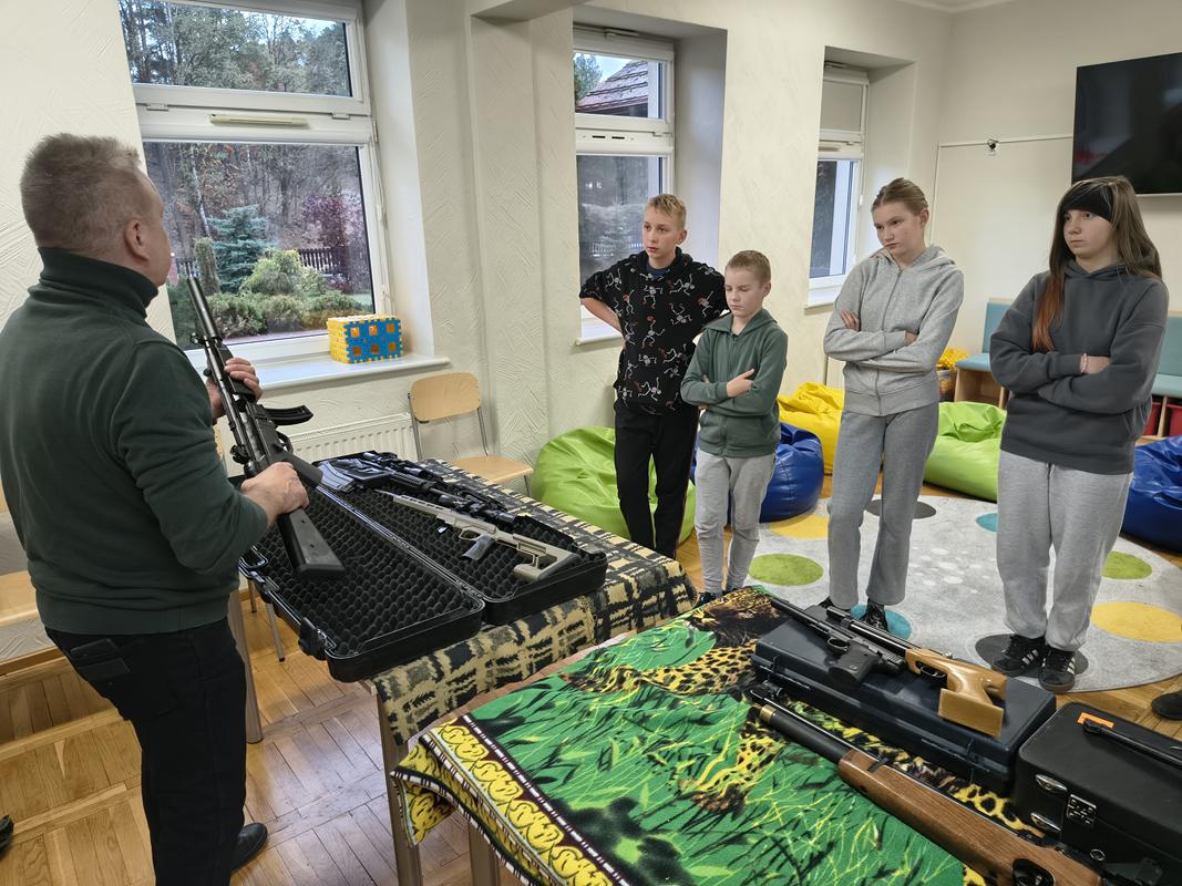 Podczas spotkania Pan Frączek opowiedział o działalności LOK, która obejmuje m.in. szkolenia strzeleckie, zawody sportowe oraz działania promujące postawy proobronne. Uczniowie mieli okazję poznać różne rodzaje broni treningowej oraz dowiedzieć się, jak ważna jest odpowiedzialność, dyscyplina i znajomość zasad bezpieczeństwa podczas korzystania z broni.