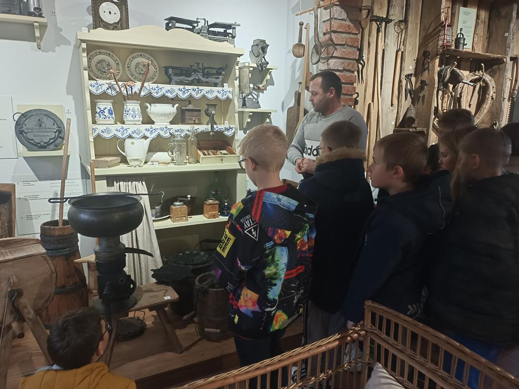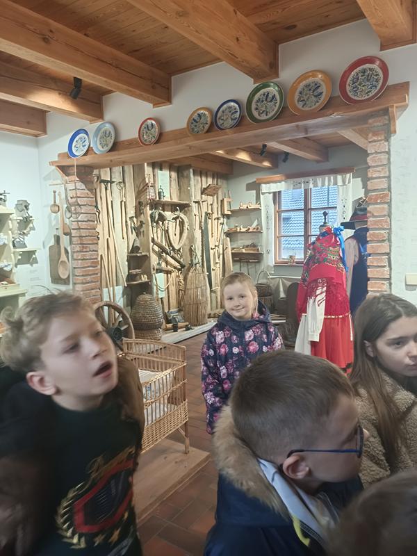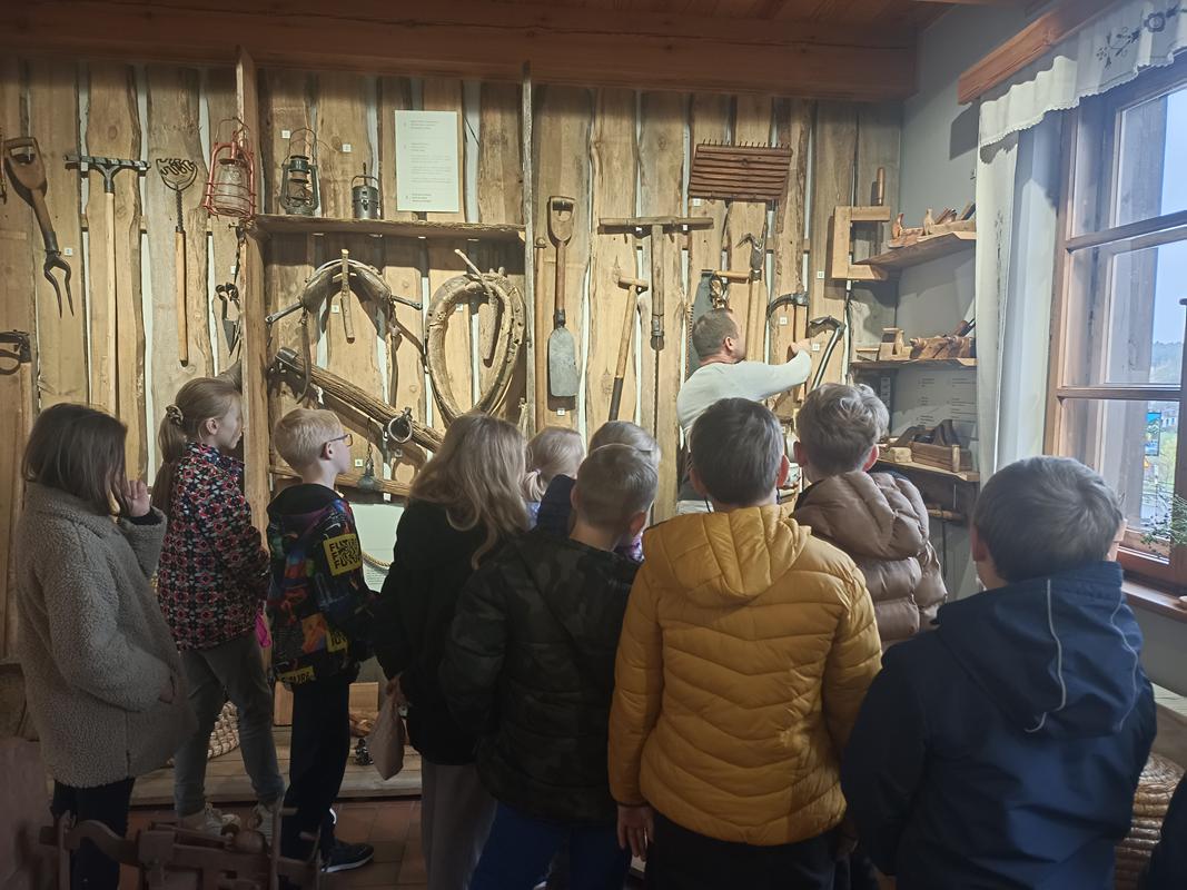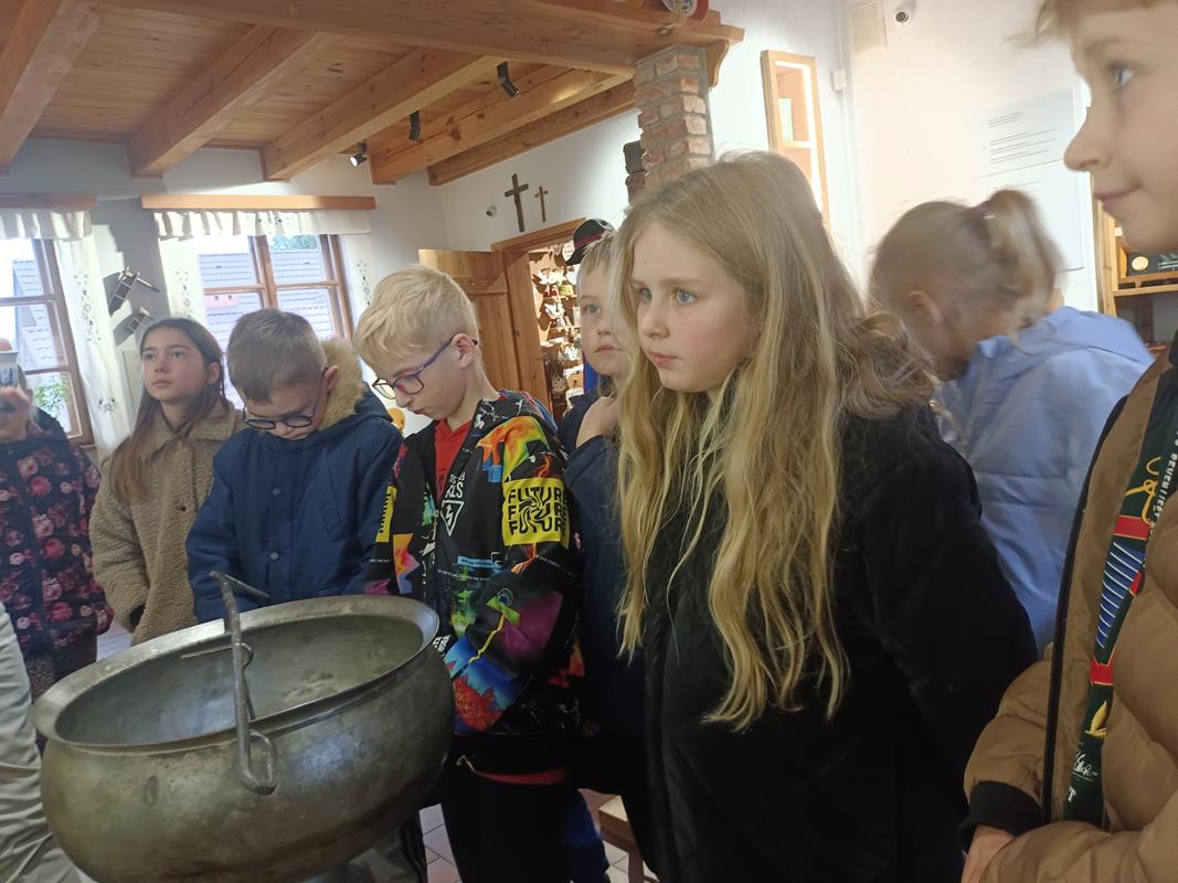 Podczas zwiedzania dzieci rozpoznawały przedmioty, o których niedawno uczyły się na lekcji, przypominając sobie ich kaszubskie nazwy. Z zaciekawieniem oglądały stare naczynia, narzędzia rolnicze i sprzęty codziennego użytku, które opowiadały historię życia dawnych Kaszubów. To niezwykłe doświadczenie pozwoliło im w praktyczny sposób zetknąć się z kulturą i tradycją regionu. Taka forma nauki okazała się bardzo angażująca – uczniowie mogli „na żywo” zobaczyć przedmioty, które wcześniej znali jedynie z książek czy opowieści.