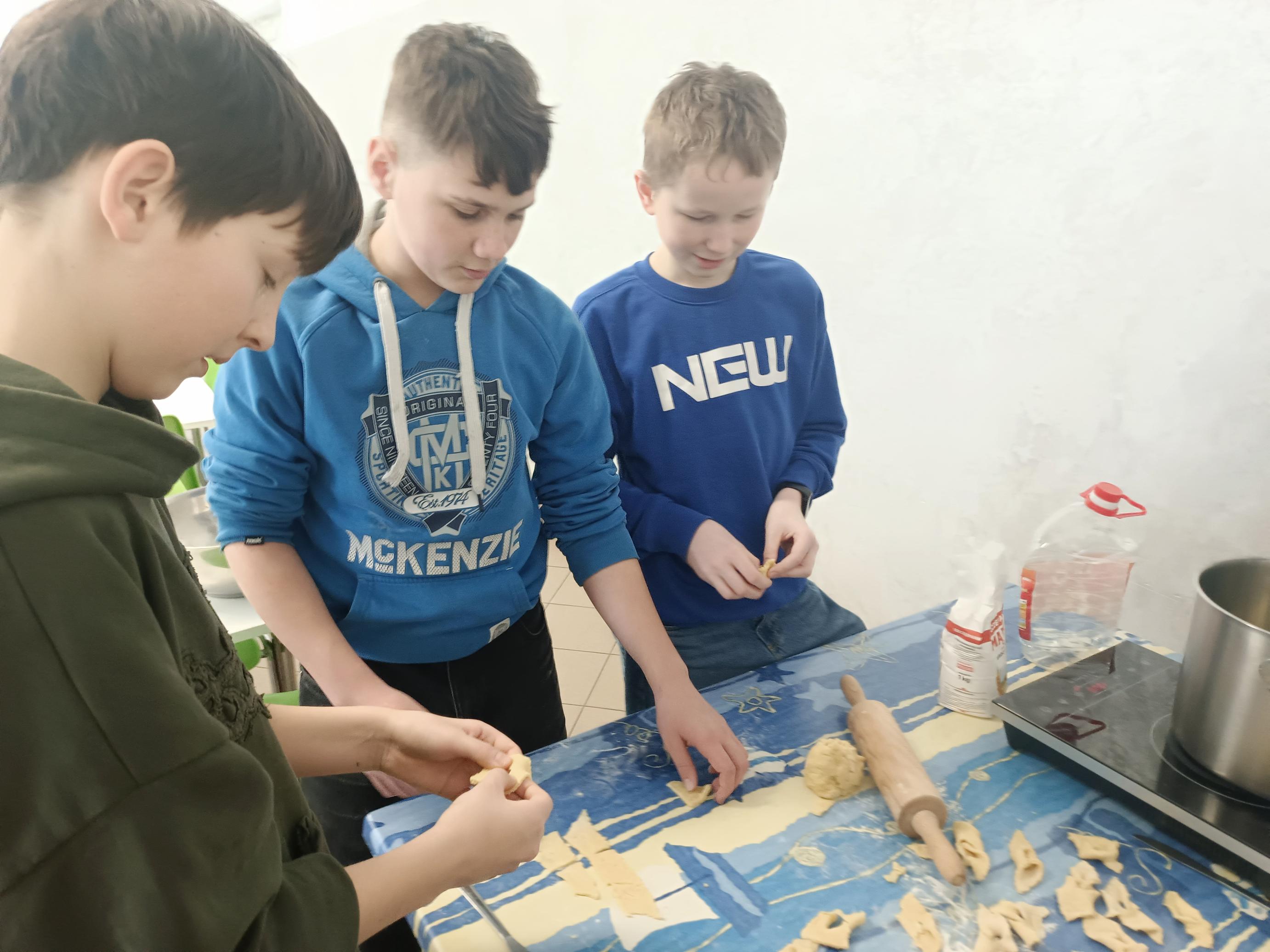 Chrusty to cienkie, chrupiące paski ciasta, które w dawnych czasach symbolizowały radość i ostatki przed Wielkim Postem. Podczas lekcji uczniowie poznali kaszubskie nazwy słodkości, samodzielnie przygotowywali ciasto i formowali chrupiące wstążki, a przy tym odkryli smak tradycji i poczuli magiczny klimat Zapustów.