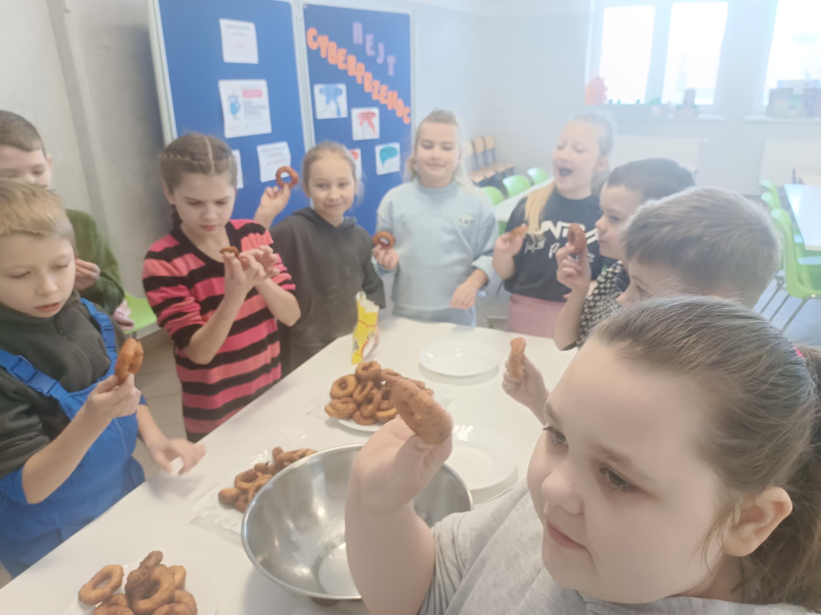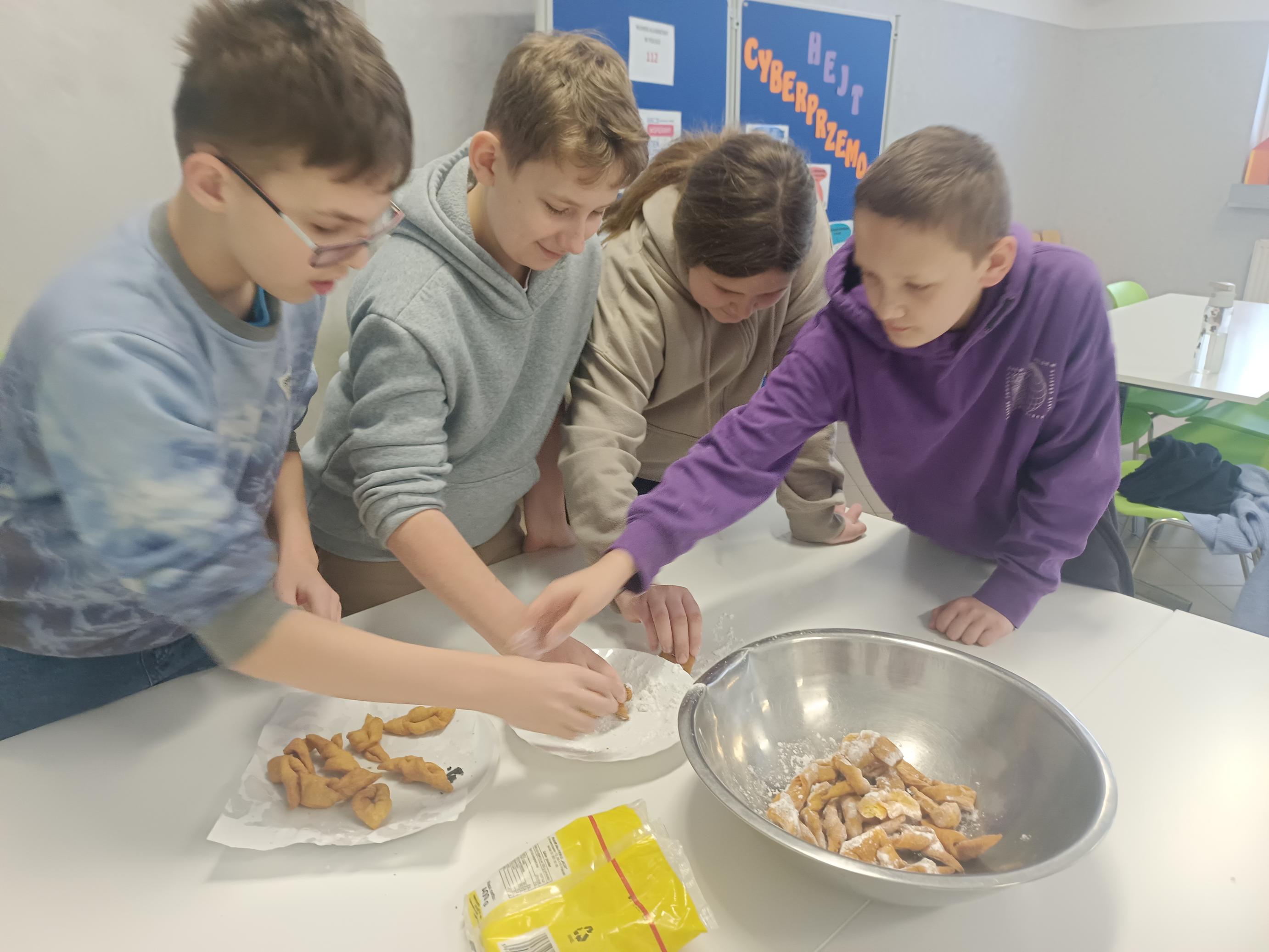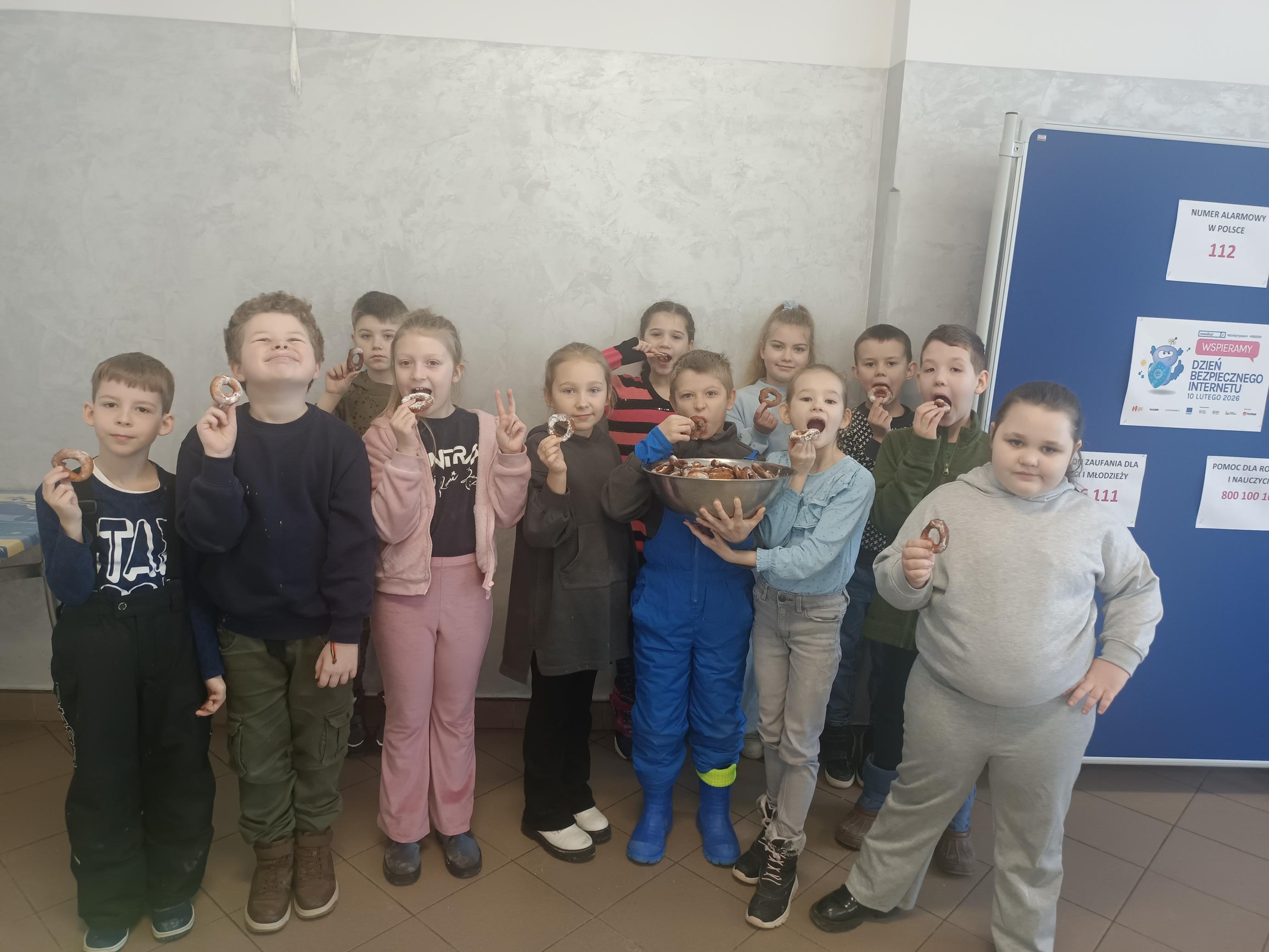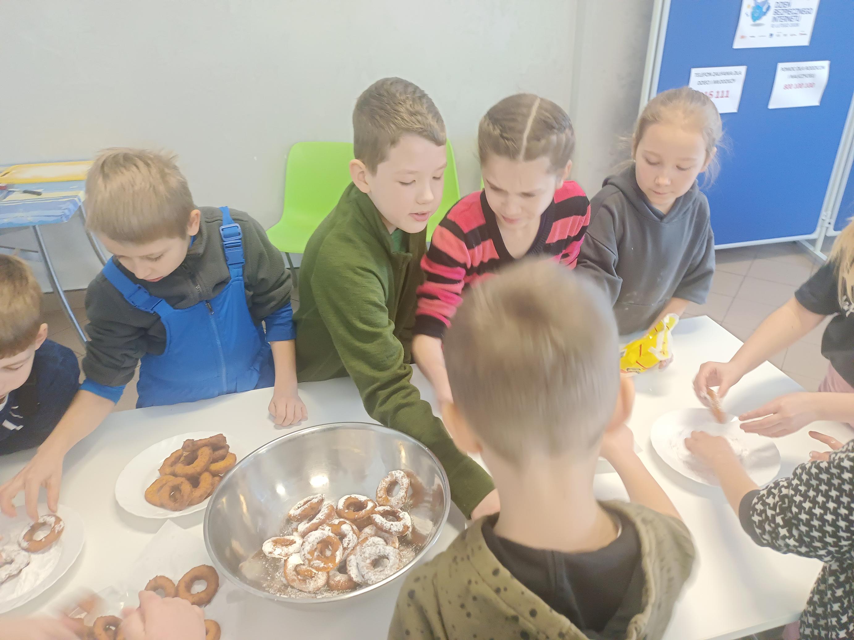 Zajęcia stały się piękną lekcją tradycji, która połączyła naukę z działaniem i radością wspólnego tworzenia. Zapach świeżych wypieków, uśmiechy uczniów i atmosfera zapustnej zabawy sprawiły, że ta lekcja języka kaszubskiego na długo pozostanie w pamięci dzieci.