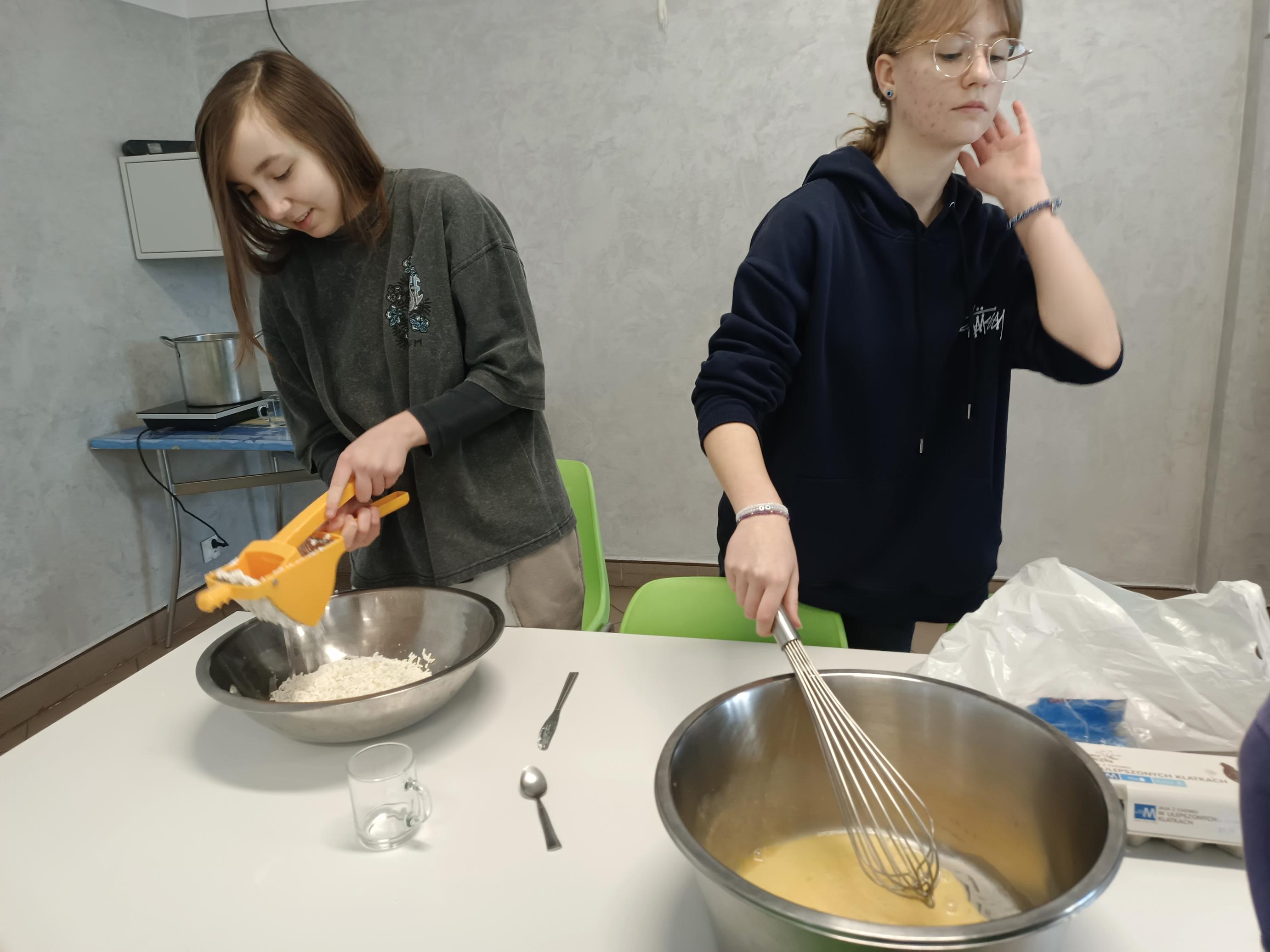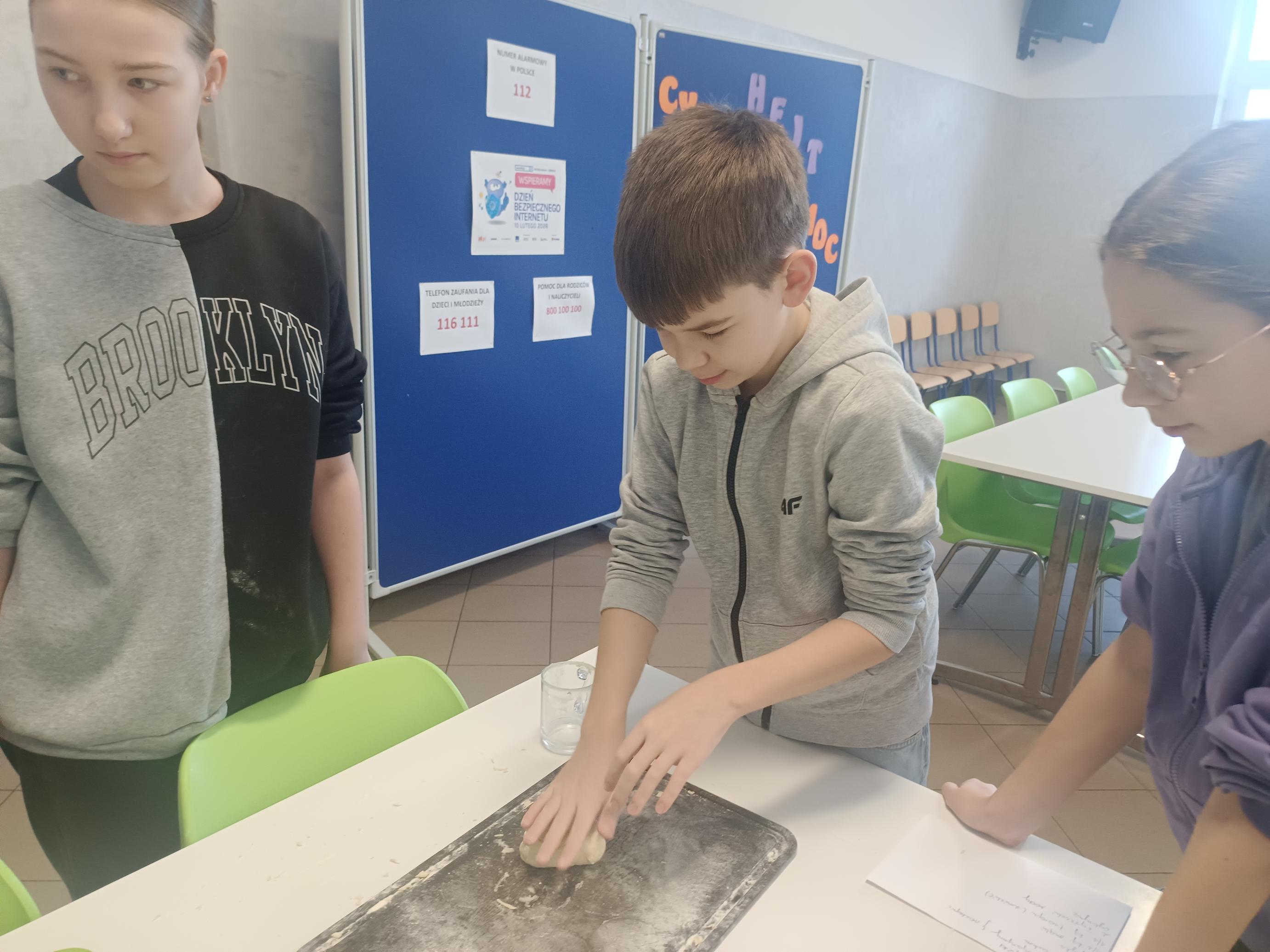 Podczas lekcji języka kaszubskiego uczniowie klas II, V i VI spotkali się z tradycją zapustów – barwnego i radosnego czasu w kaszubskim kalendarzu. To właśnie wtedy, zgodnie z dawnym zwyczajem, w domach królowały słodkie wypieki i wspólne świętowanie. Szkolna stołówka na chwilę zamieniła się w pachnącą zapustną kuchnię. Uczniowie z zaangażowaniem przygotowywali krążki oraz chrusty (faworki), poznając przy tym znaczenie dawnych obrzędów i zwyczajów przekazywanych z pokolenia na pokolenie. Każdy etap pracy – od wałkowania ciasta po formowanie i smażenie – był okazją do odkrywania kaszubskiego dziedzictwa w praktyce.