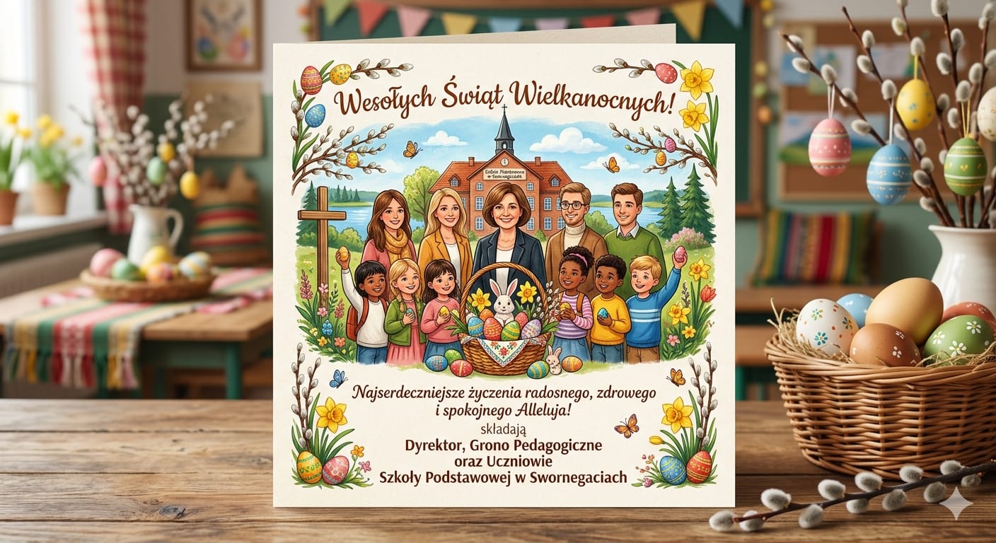 Z okazji Świąt Wielkanocnych życzymy Wam, aby ten czas pozwolił na chwilę wytchnienia od codziennych obowiązków, napełnił serca optymizmem i wiarą w lepsze jutro. Niech spotkania w gronie rodziny i przyjaciół przyniosą wiele ciepła i wzajemnego zrozumienia. Życzymy również zdrowia oraz sukcesów w nauce i realizacji osobistych pasji.